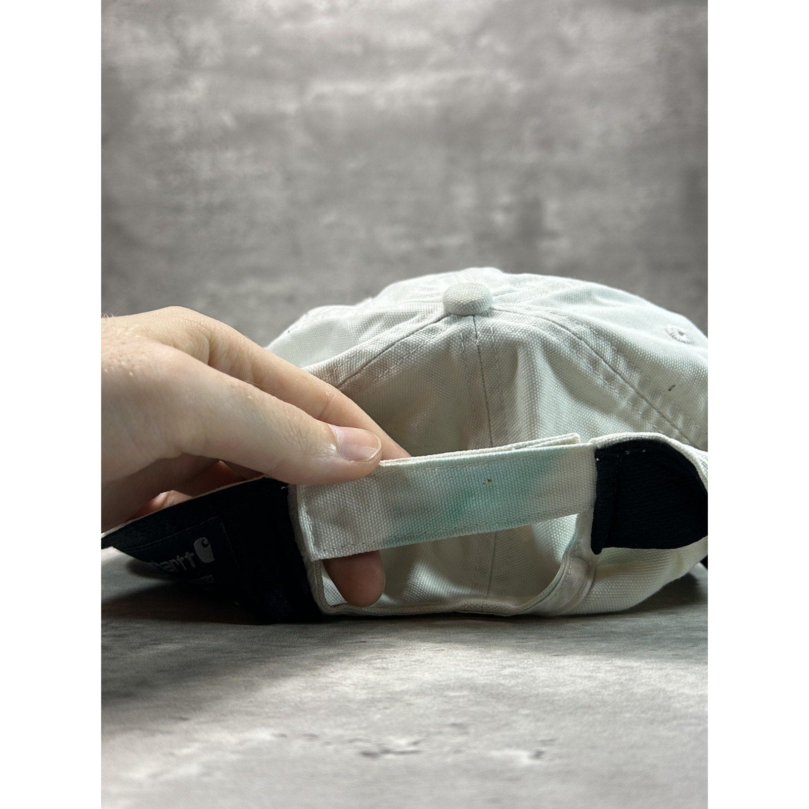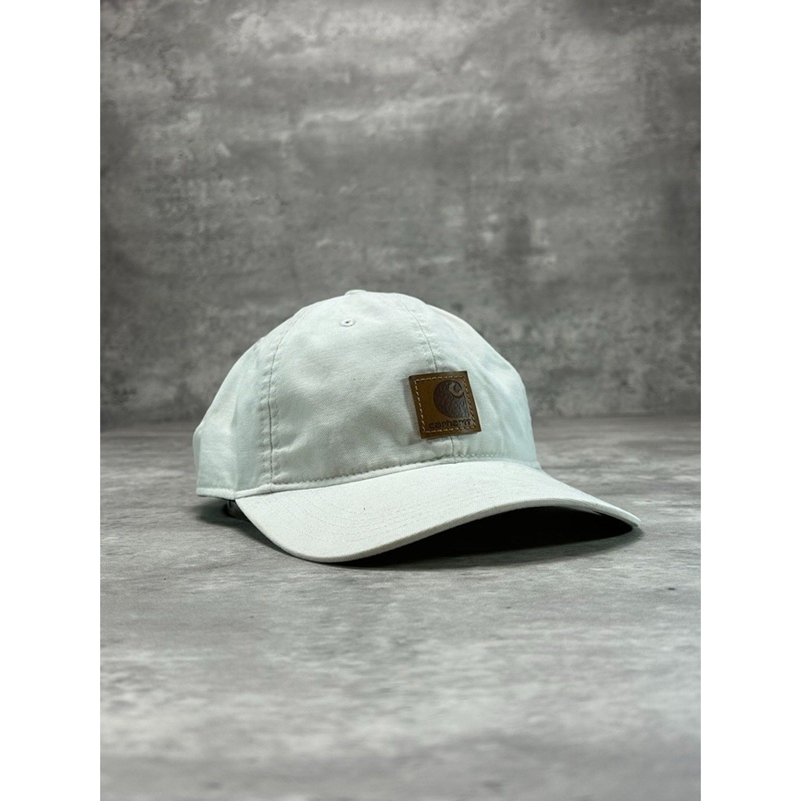 Vintage Carhartt Canvas Workwear Embroidered Leather Patch Strapback Hat OSFA