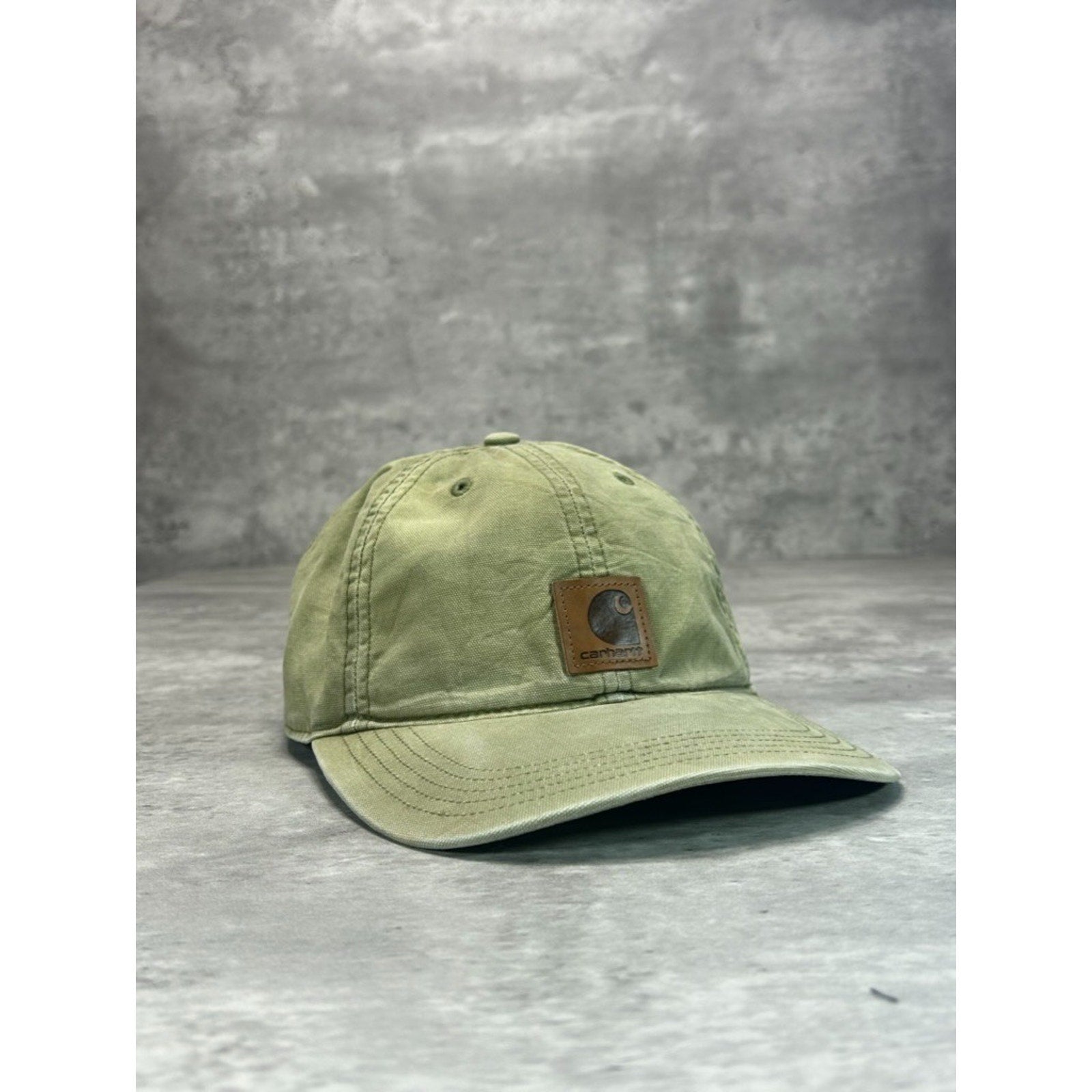Vintage Carhartt Leather Embroidered Patch Canvas Workwear Strapback Hat OSFA