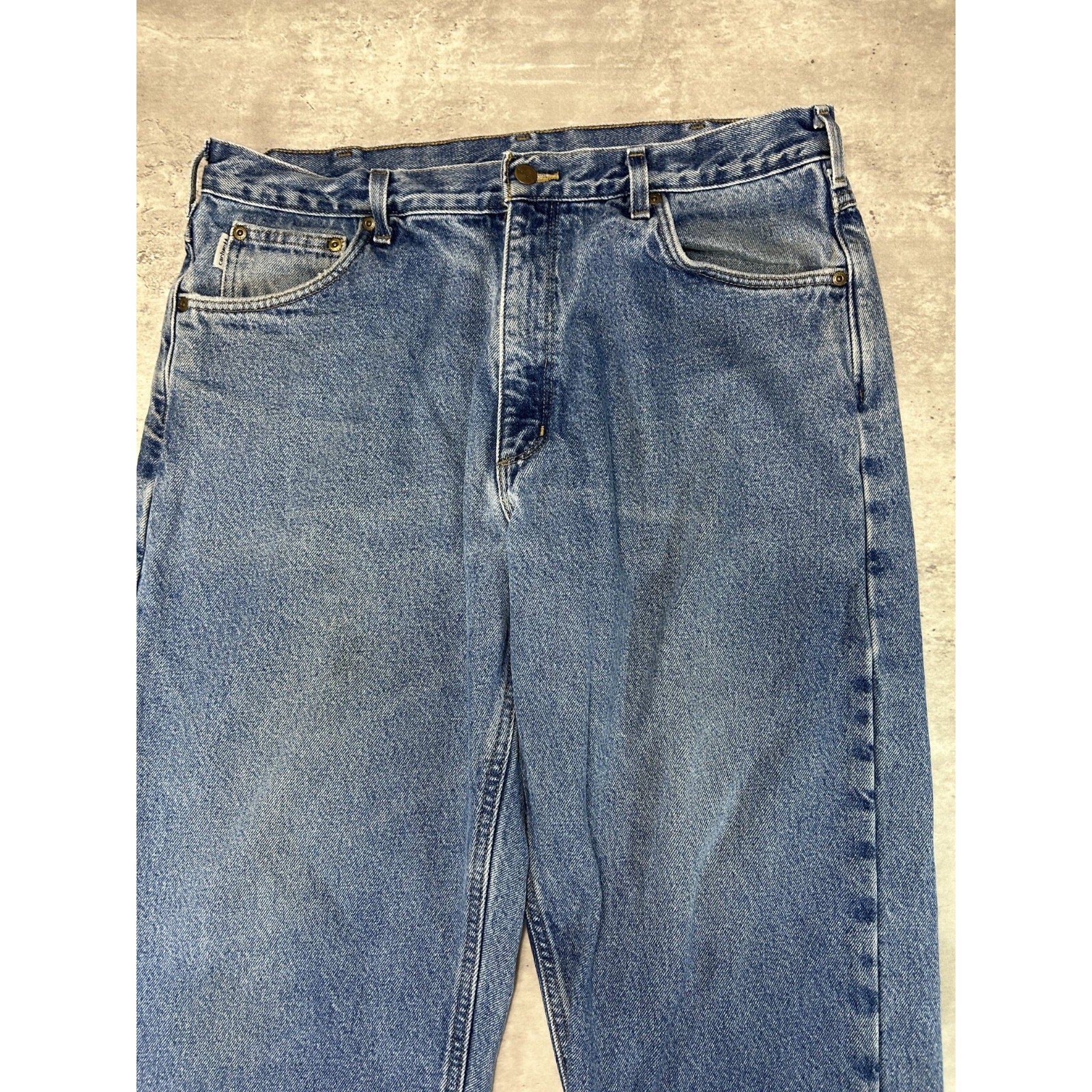 Vintage Carhartt Relaxed Fit Plaid Lined Medium Wash Workwear Denim Pants Sz 37W