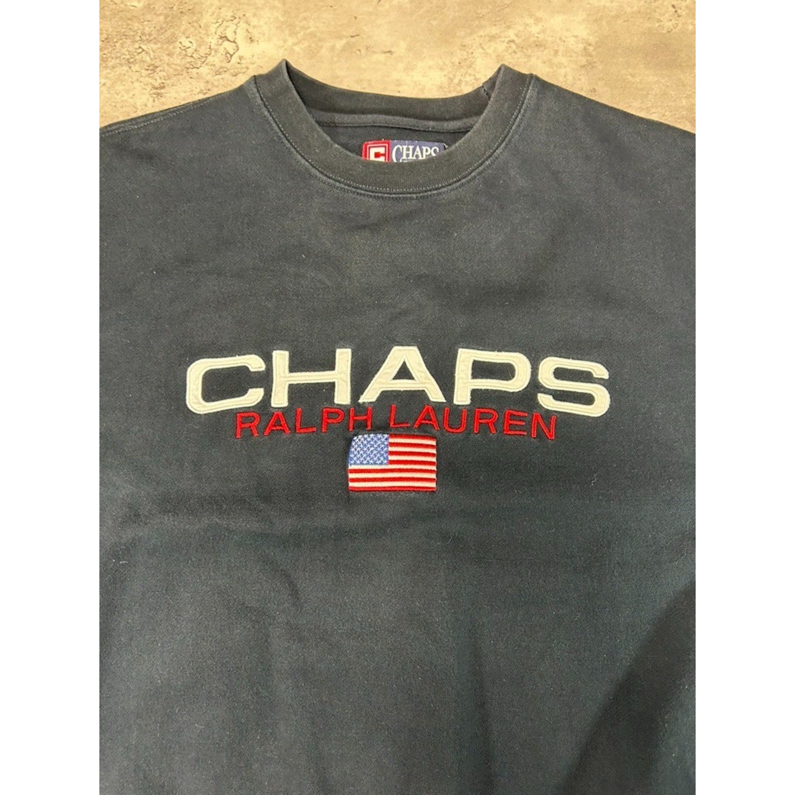 Vintage Chaps Ralph Lauren Embroidered Flag Spellout Sweatshirt Size Large