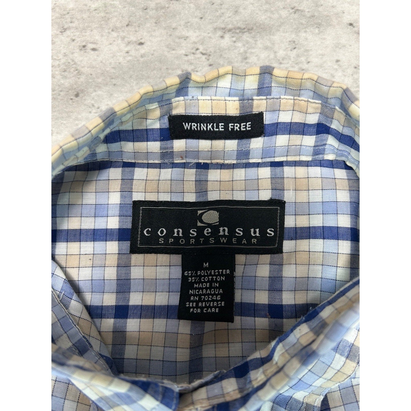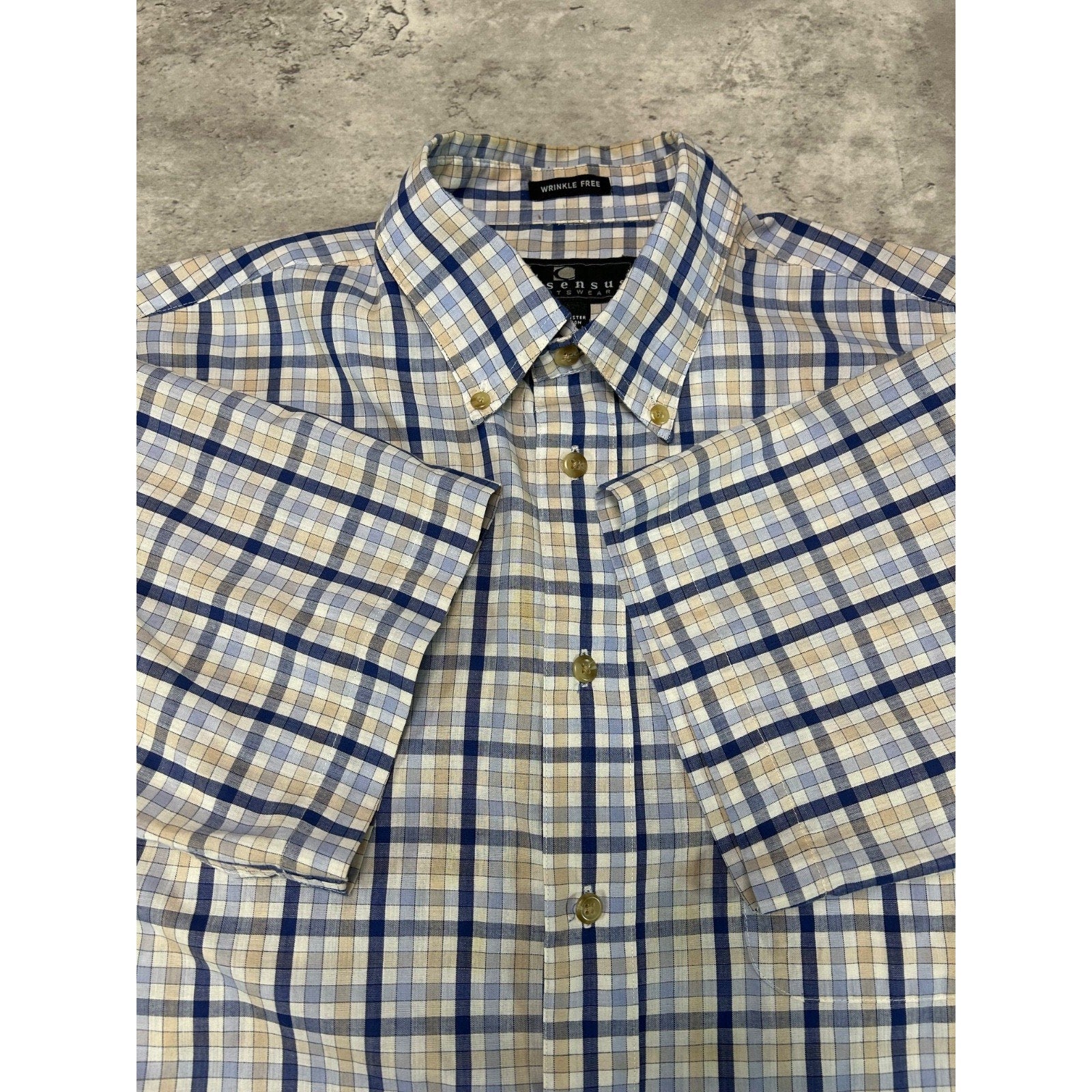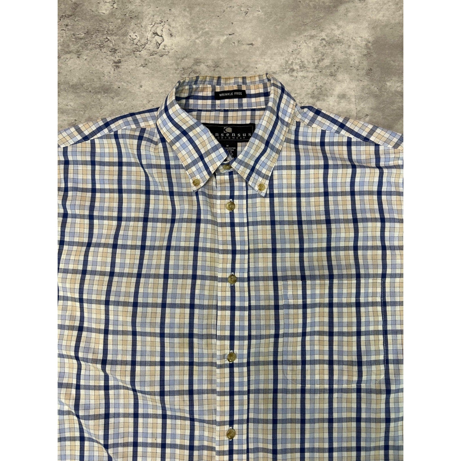 Vintage Consensus Plaid Short Sleeve Reworked Cropped Button Up Shirt Sz Medium