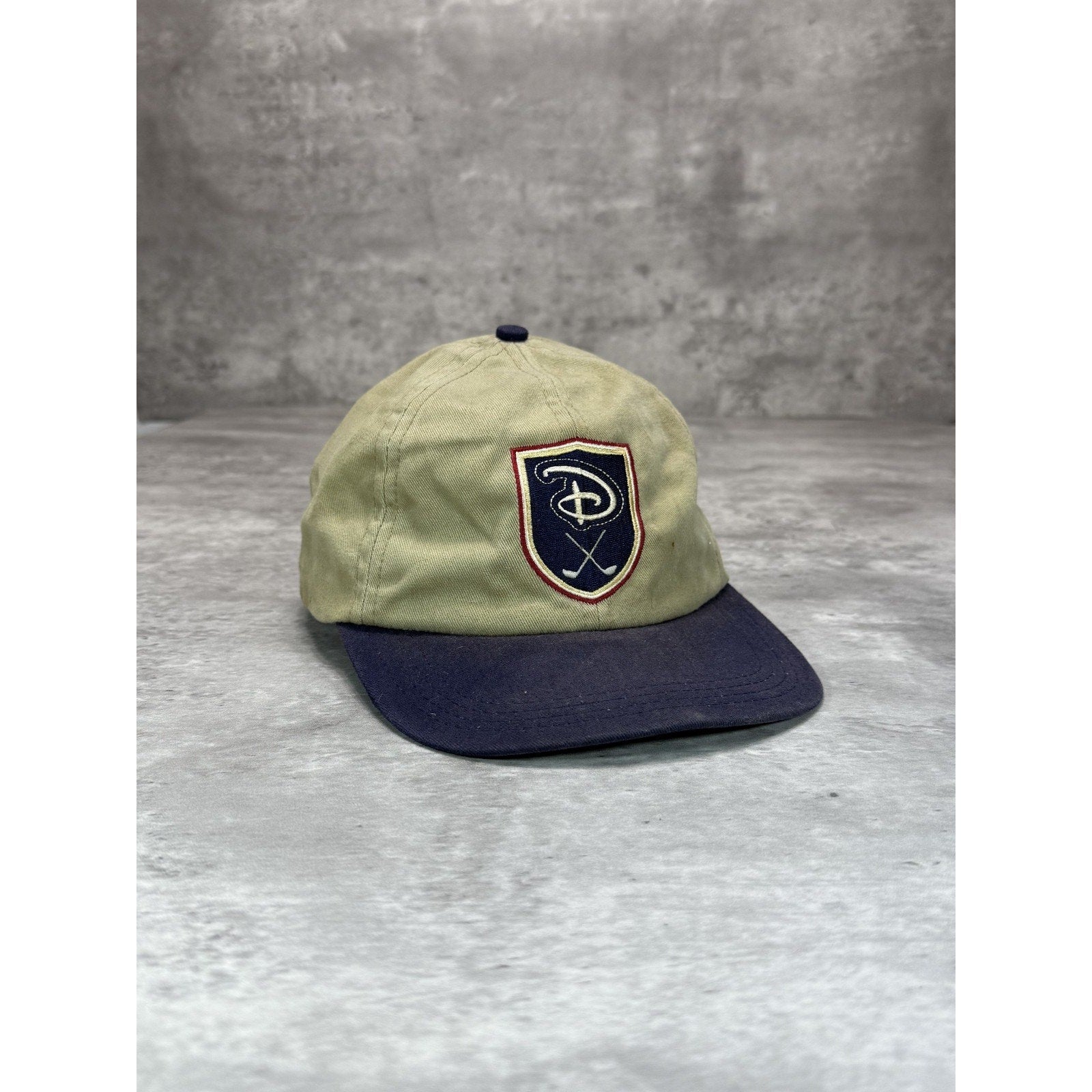 Vintage Disney Golf Embroidered Crest Logo Strapback Hat OSFA Beige