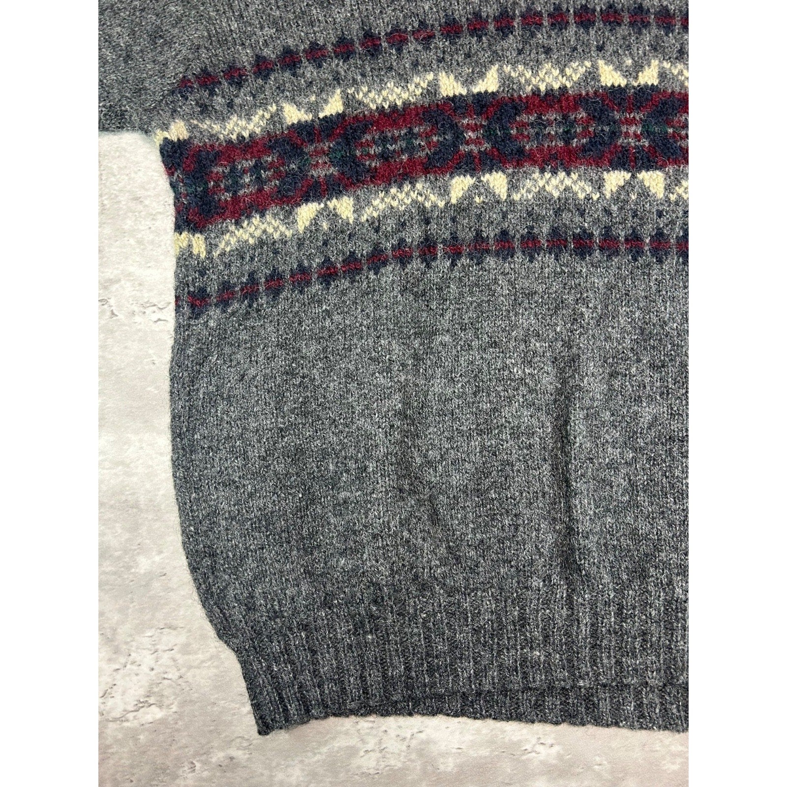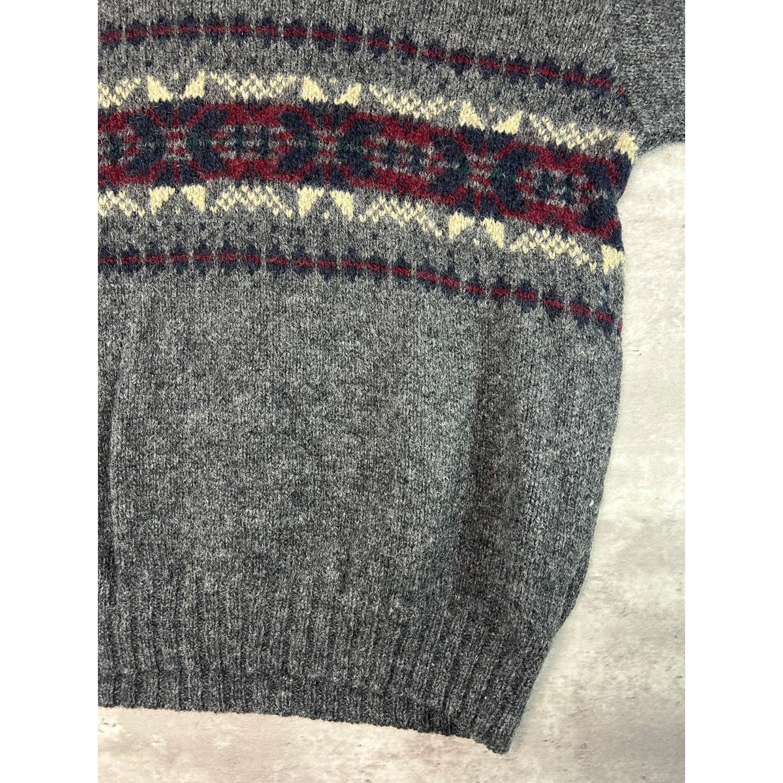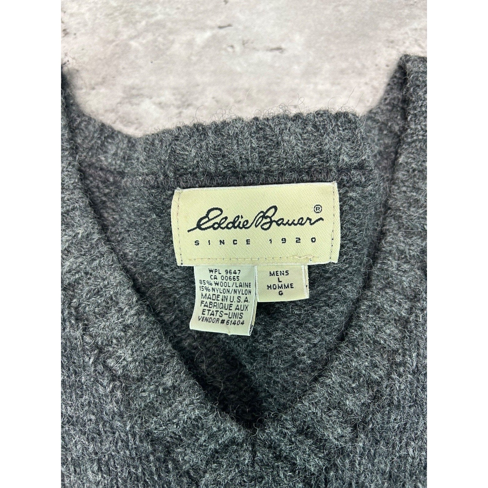 Vintage Eddie Bauer Abstract Striped Pullover V Neck Knit Sweater Size Large