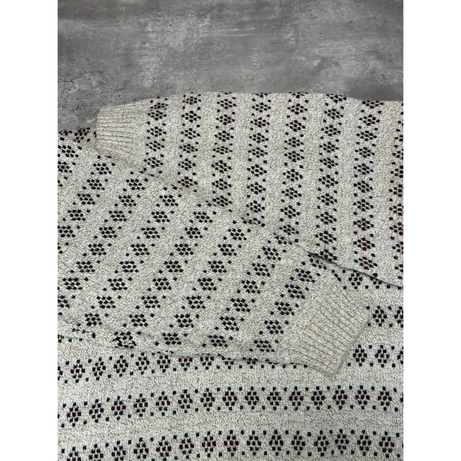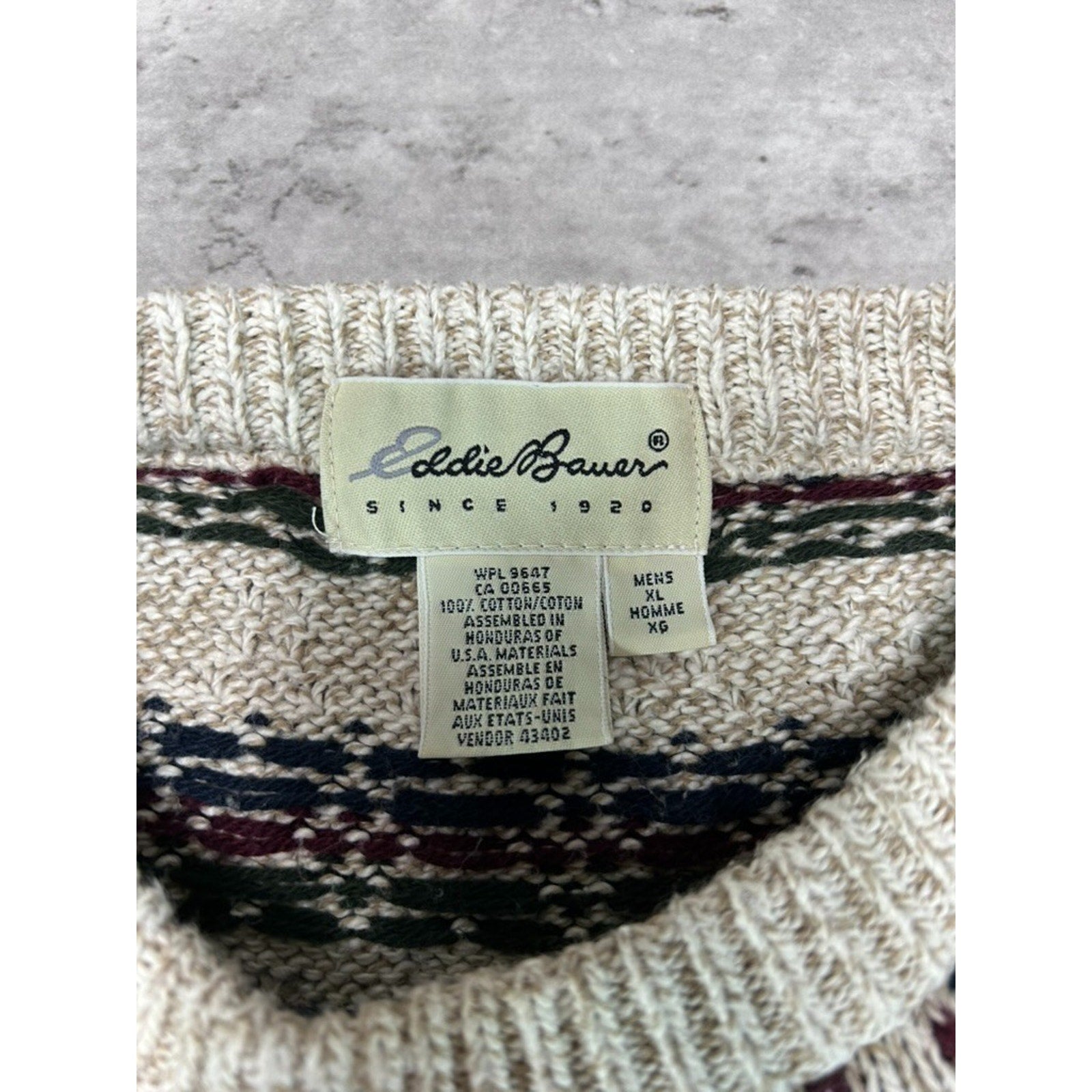 Vintage Eddie Bauer Diamond Striped Print Pullover Knit Sweater Size XL