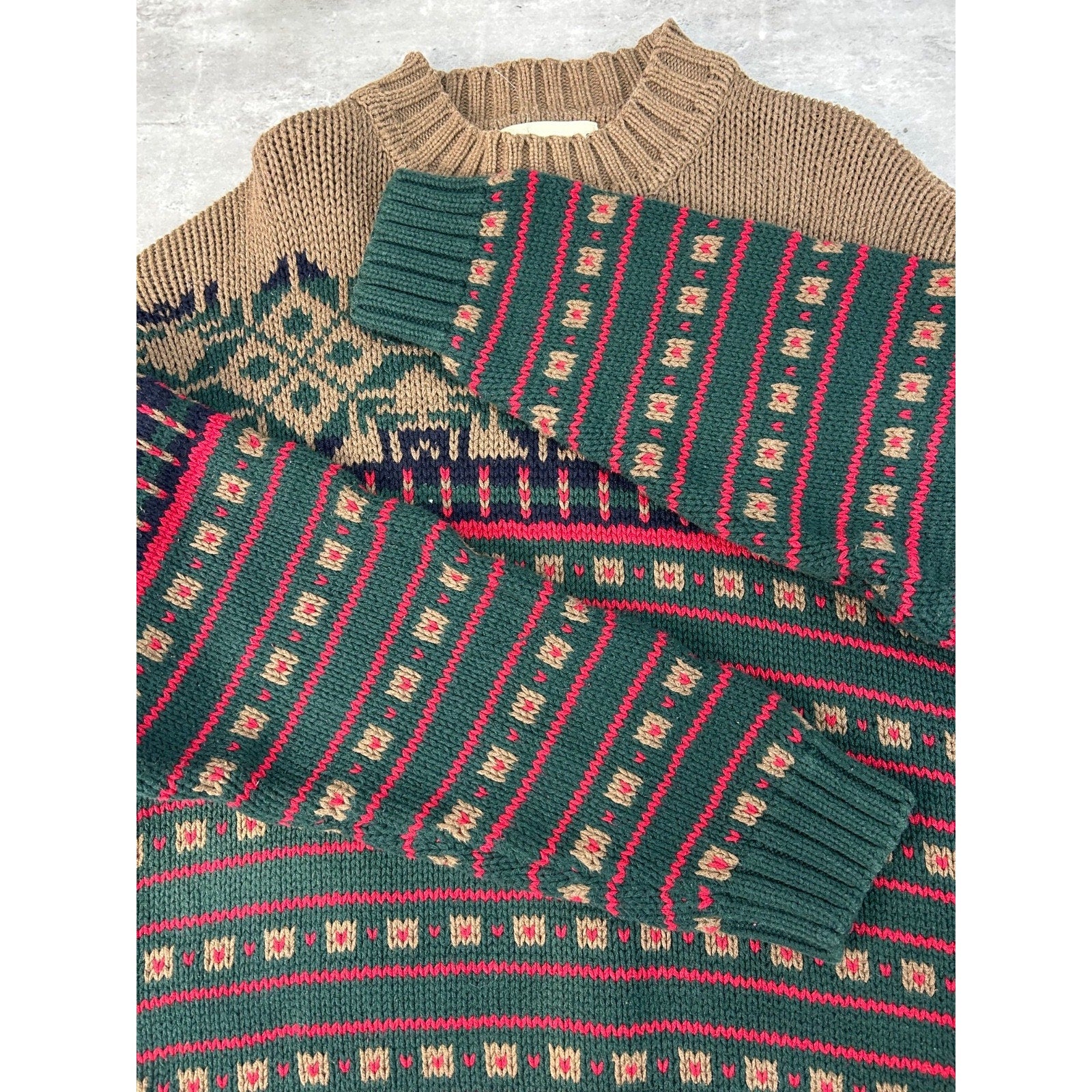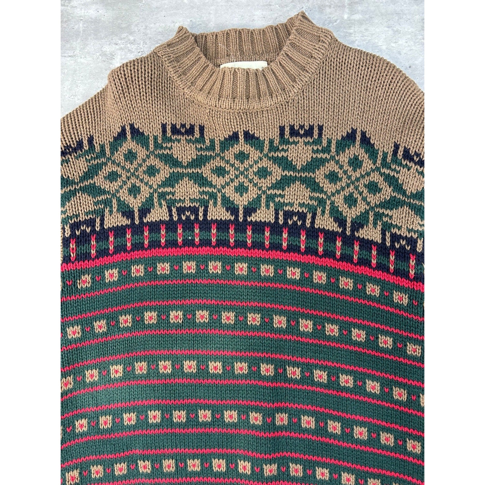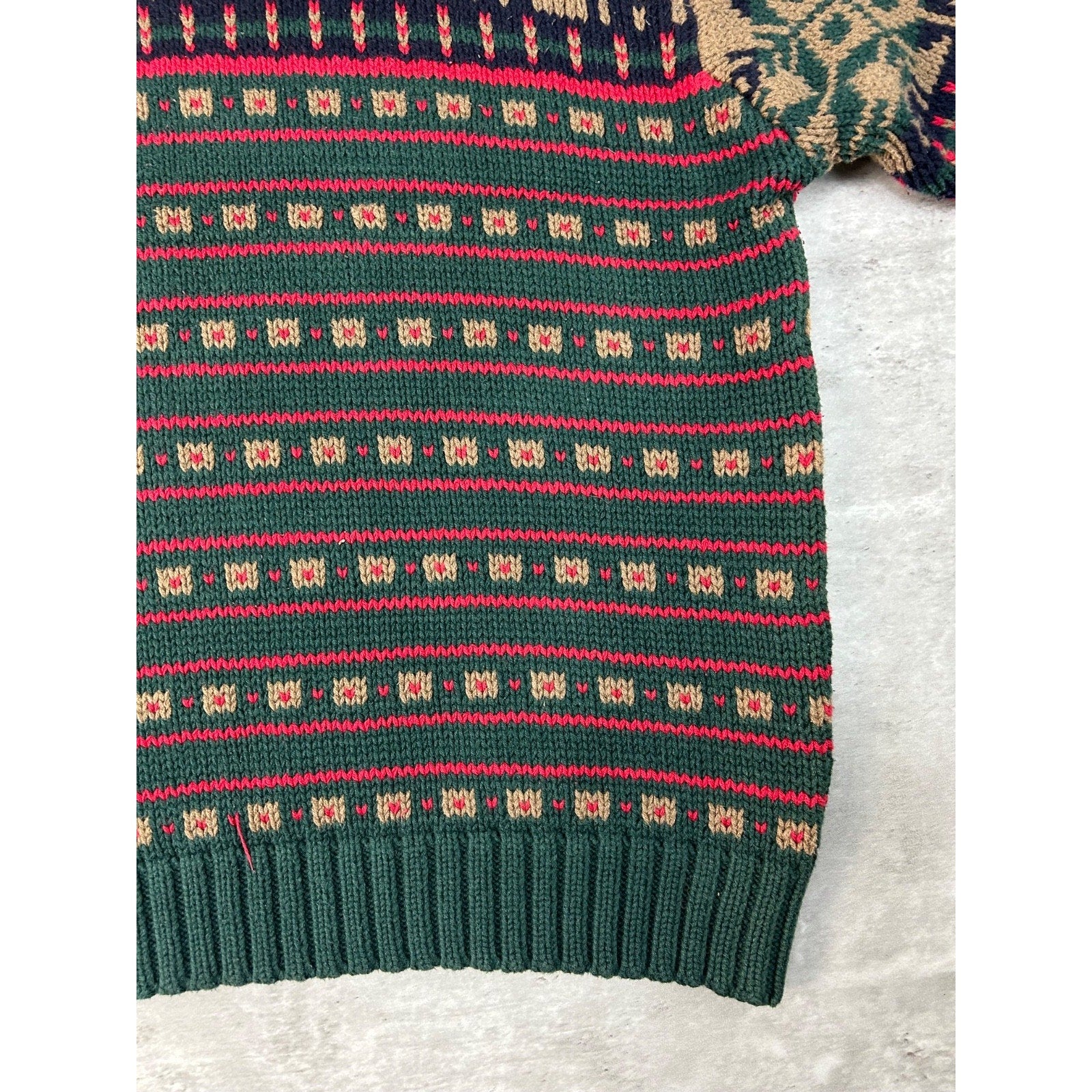 Vintage Eddie Bauer Snowflake Striped Print Pullover Knit Sweater Size Large