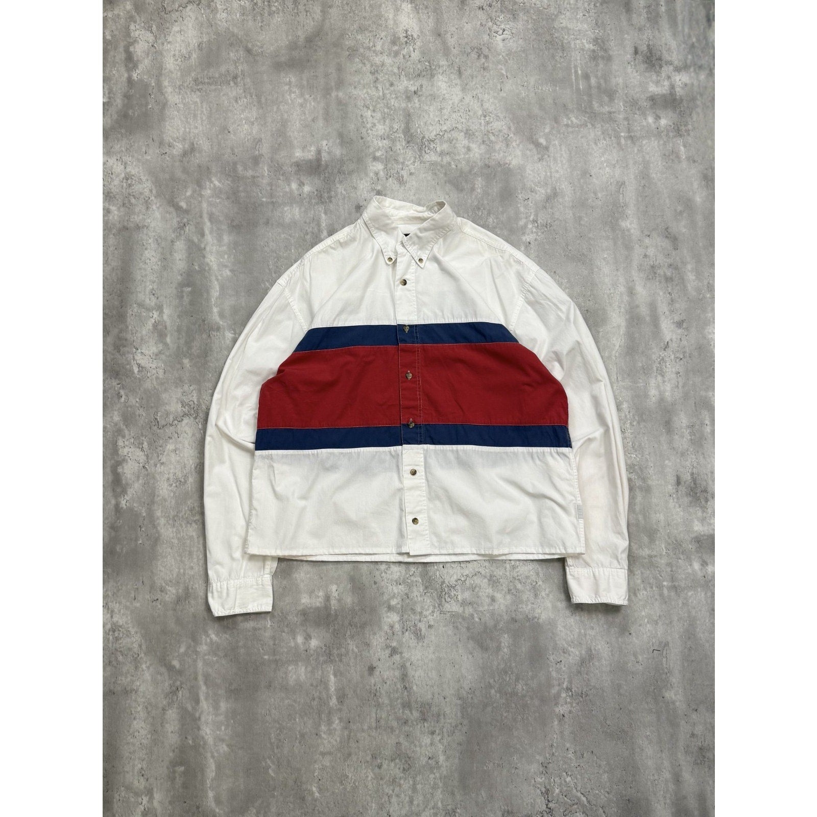 Vintage Eddie Bauer Striped Reworked Cropped Long Sleeve Button Up Shirt Large