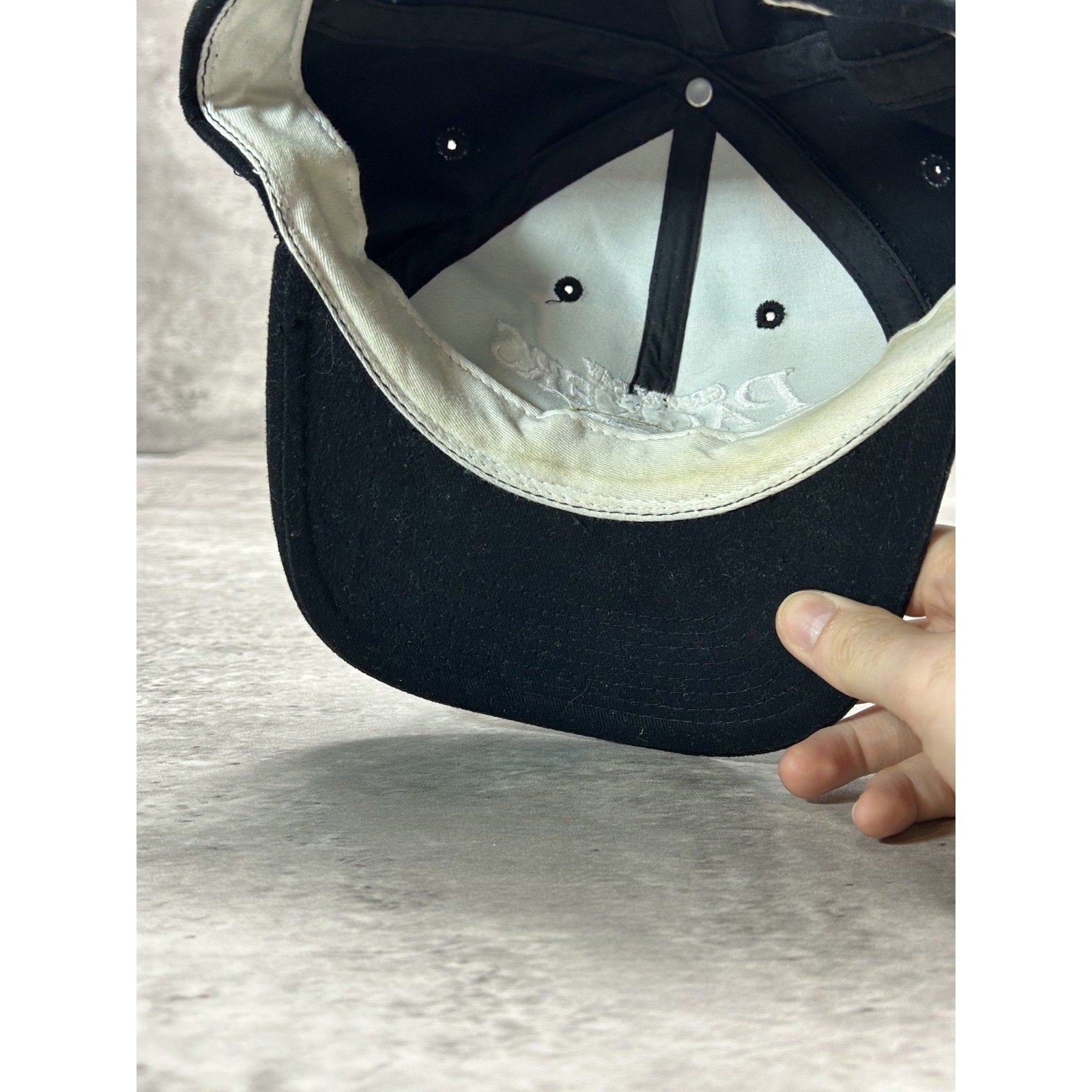 General wear due to age. Thread pulls found around. Creasing on dome. Yellowing on sweatband.