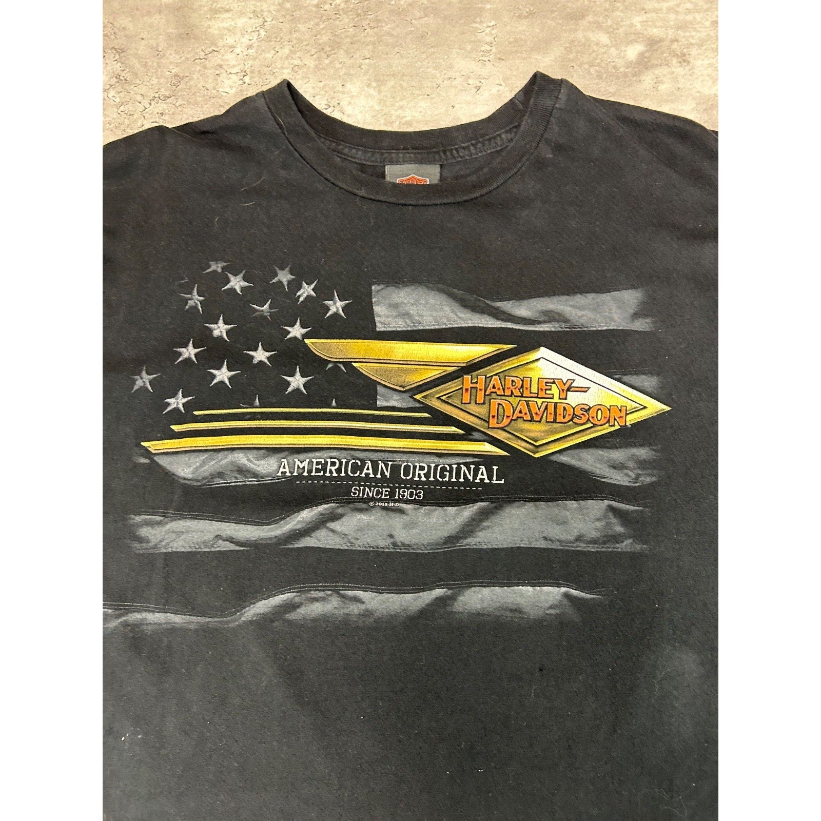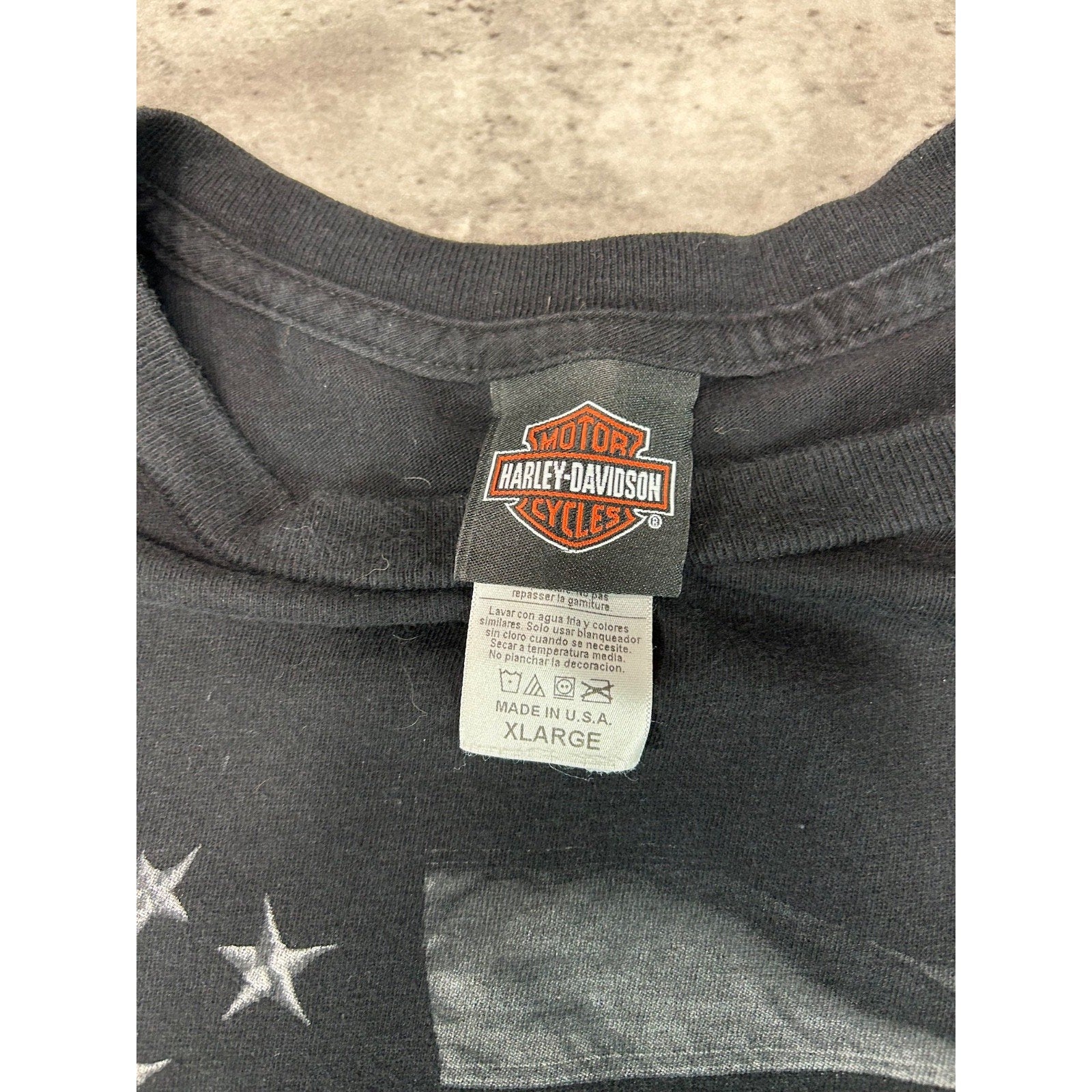 Vintage Harley Davidson American Flag Spellout Graphic Motorcycle T-Shirt Sz XL