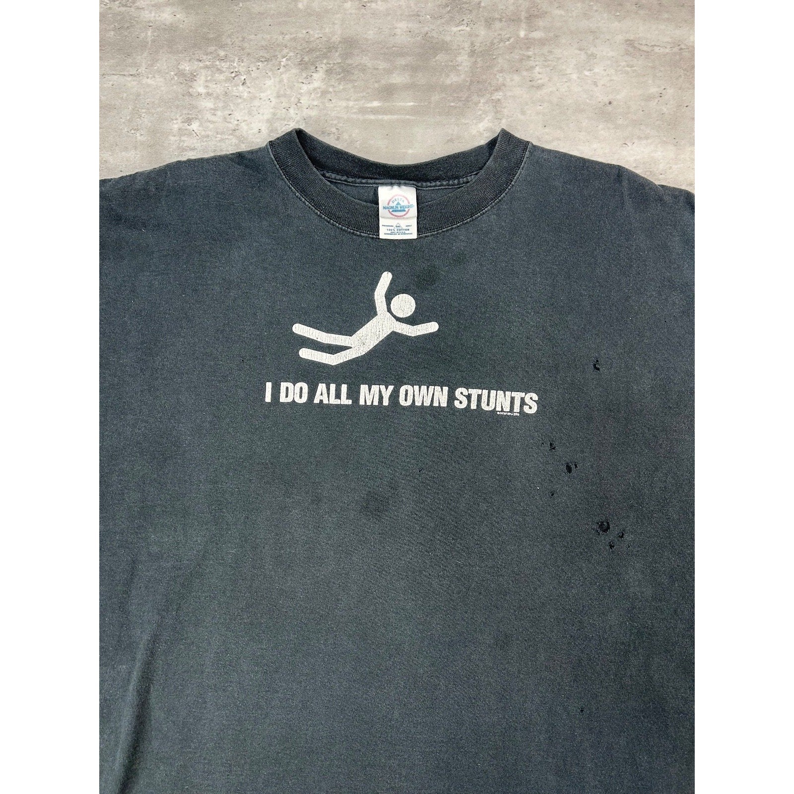 Vintage I Do All My Own Stunts Stick Figure Comedy Graphic T-Shirt Size 2XL