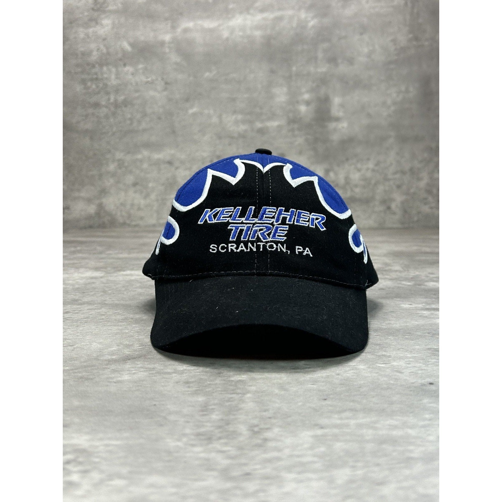 Vintage Kelleher Tire Flame Embroidered Racing Strapback Hat OSFA