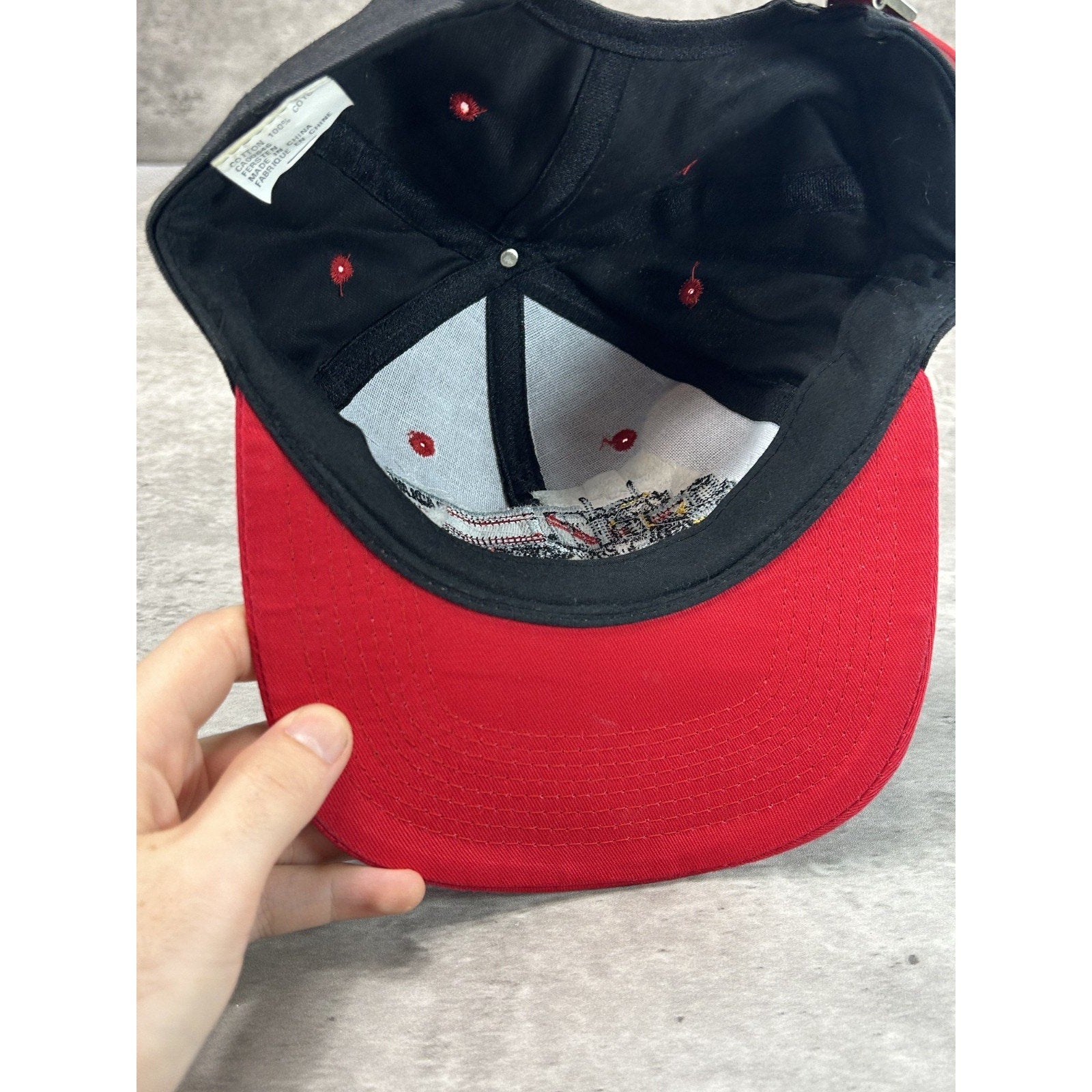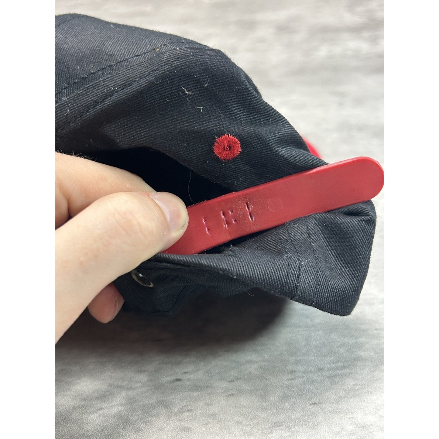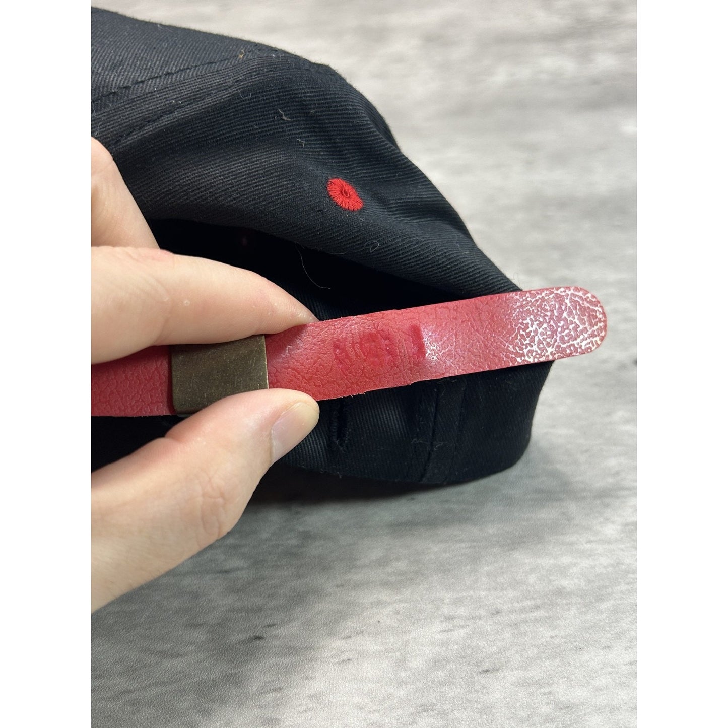 General wear due to age. Minor creasing on dome. Wear on strap. Stiff buckle. Light marks under brim.