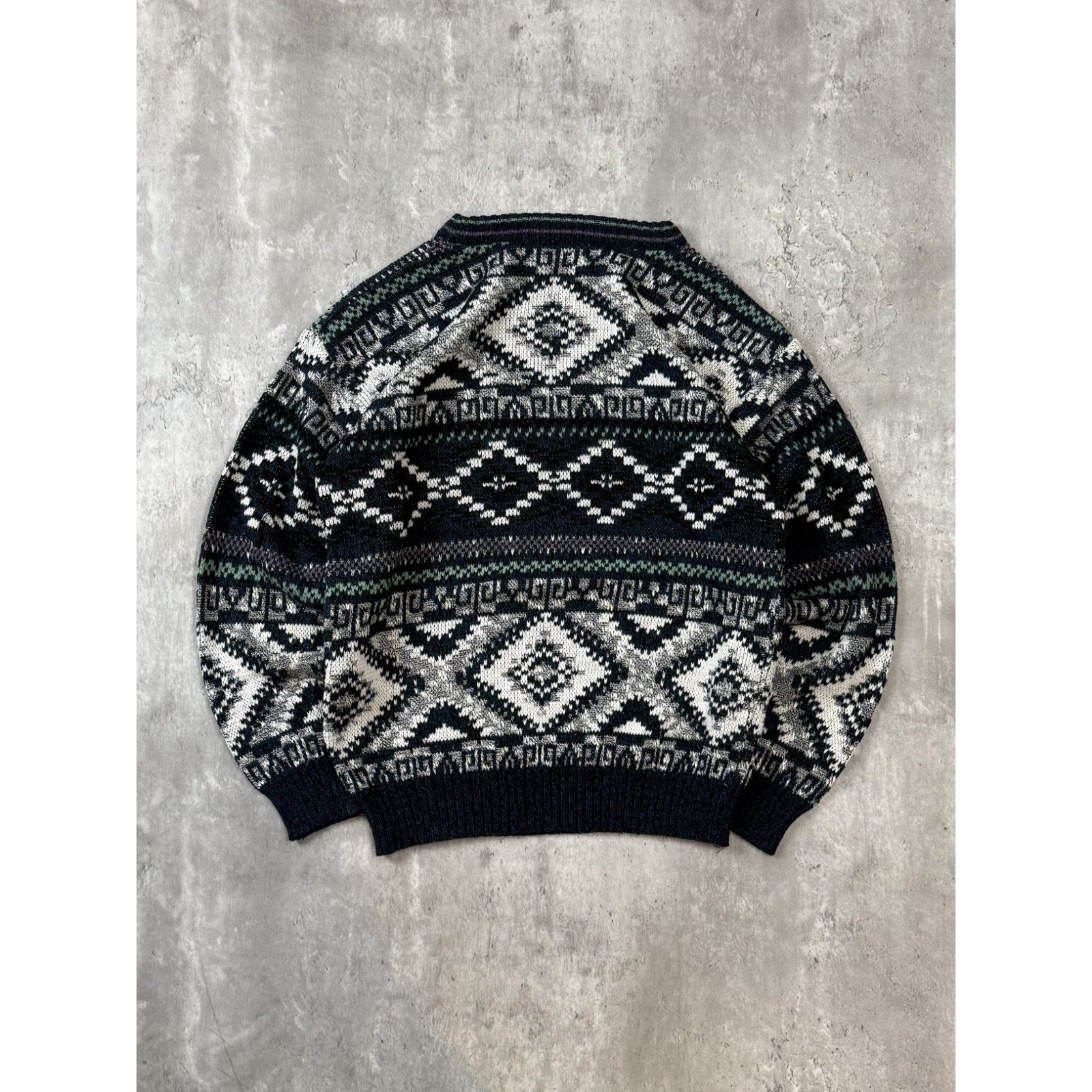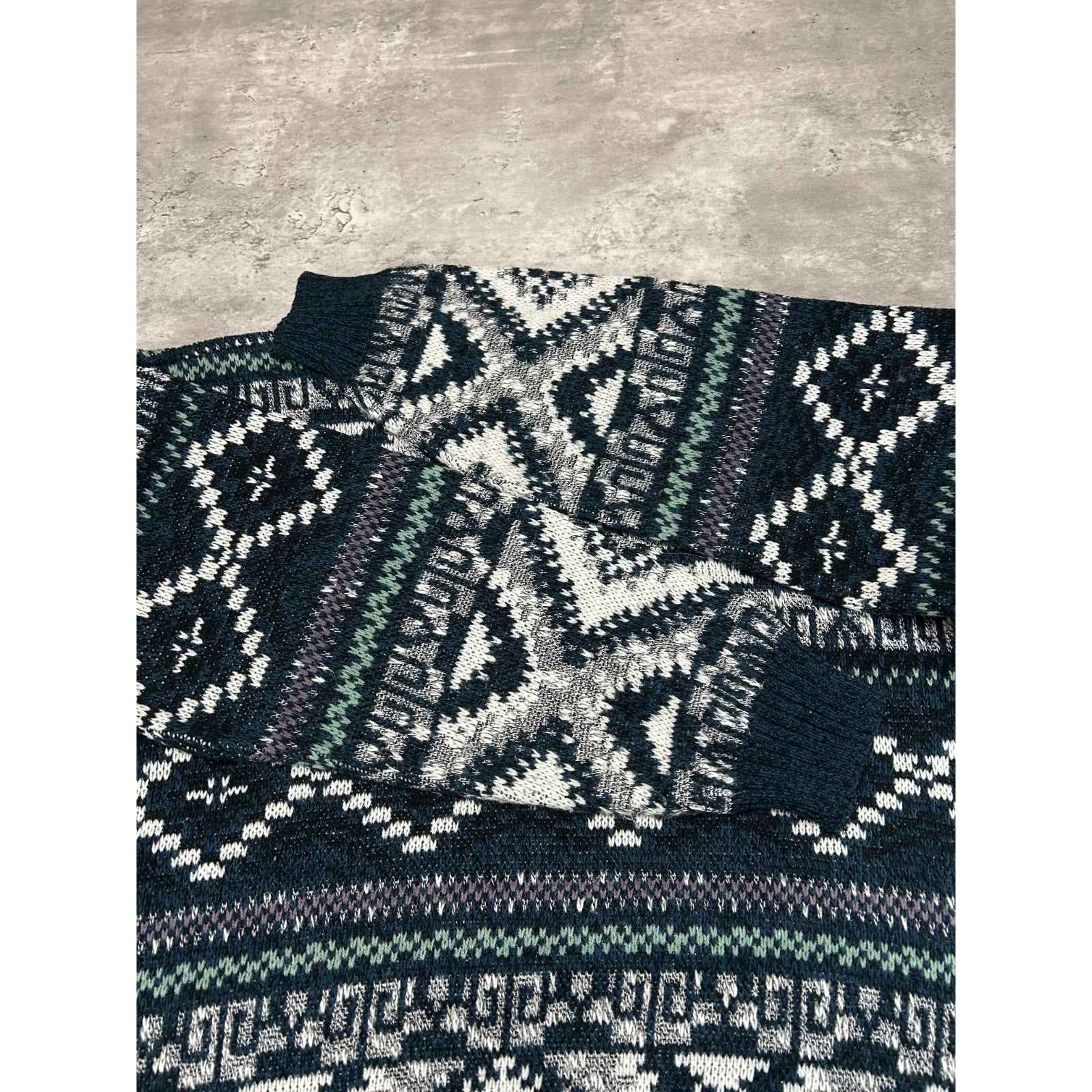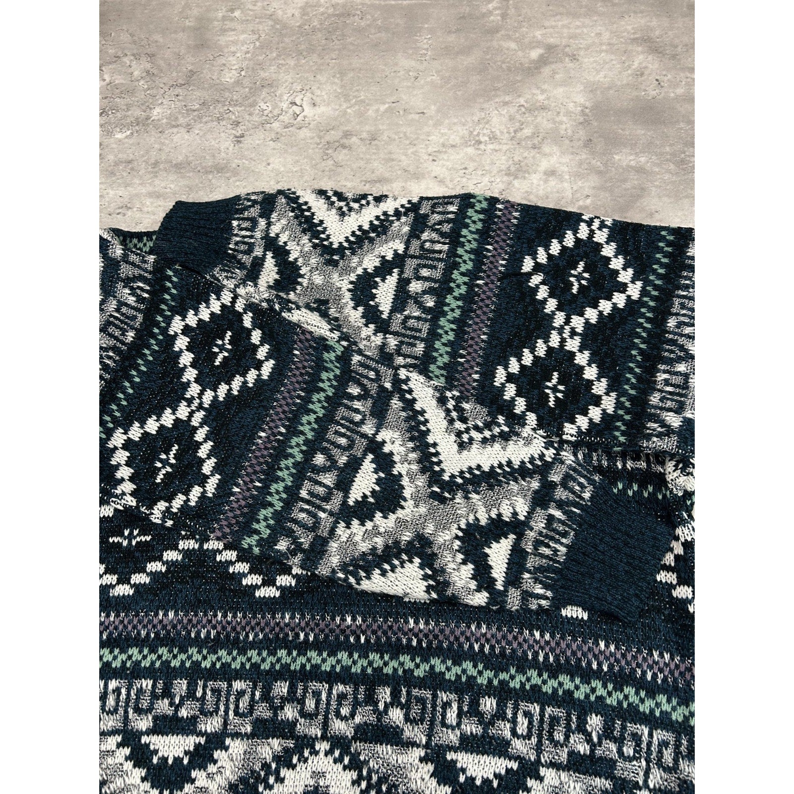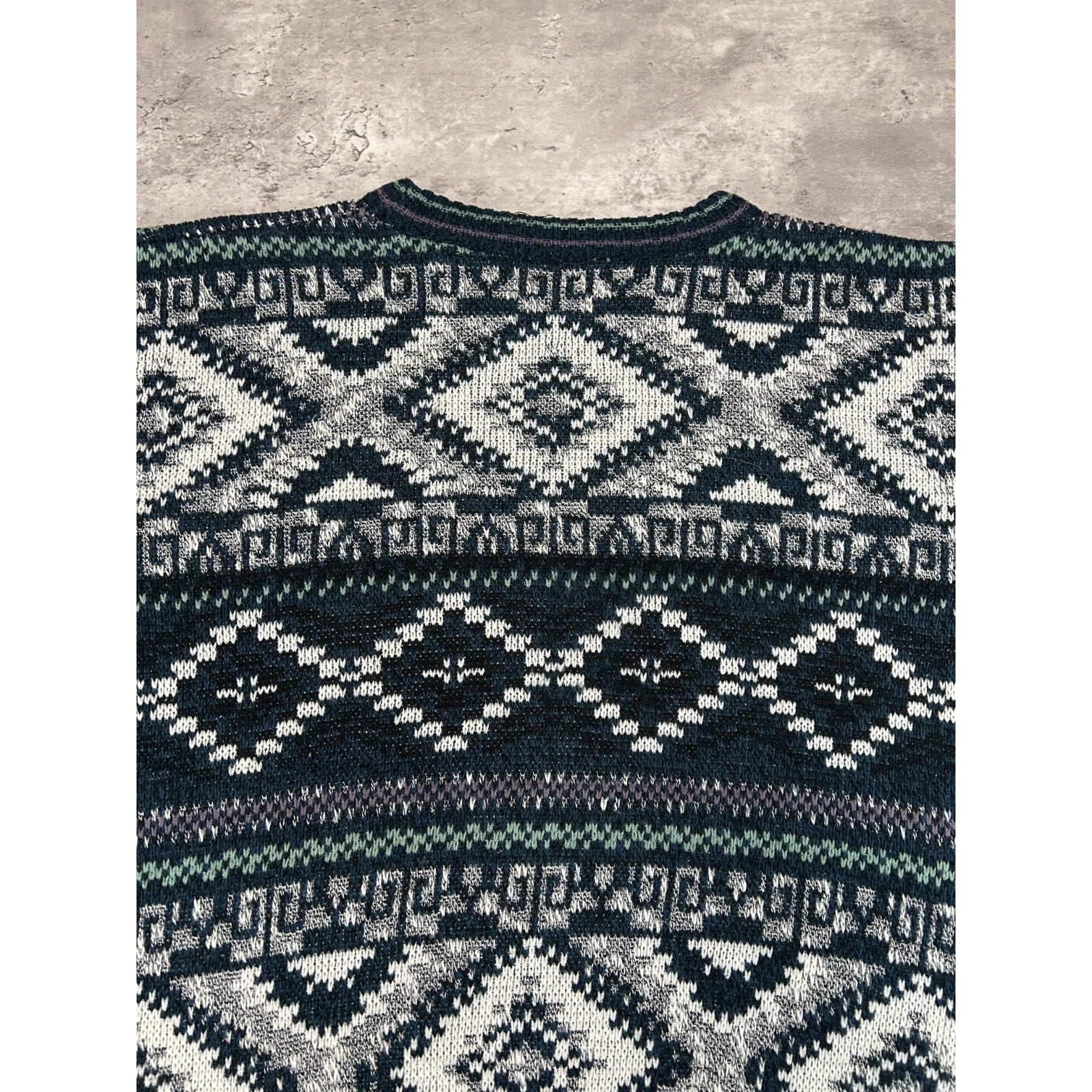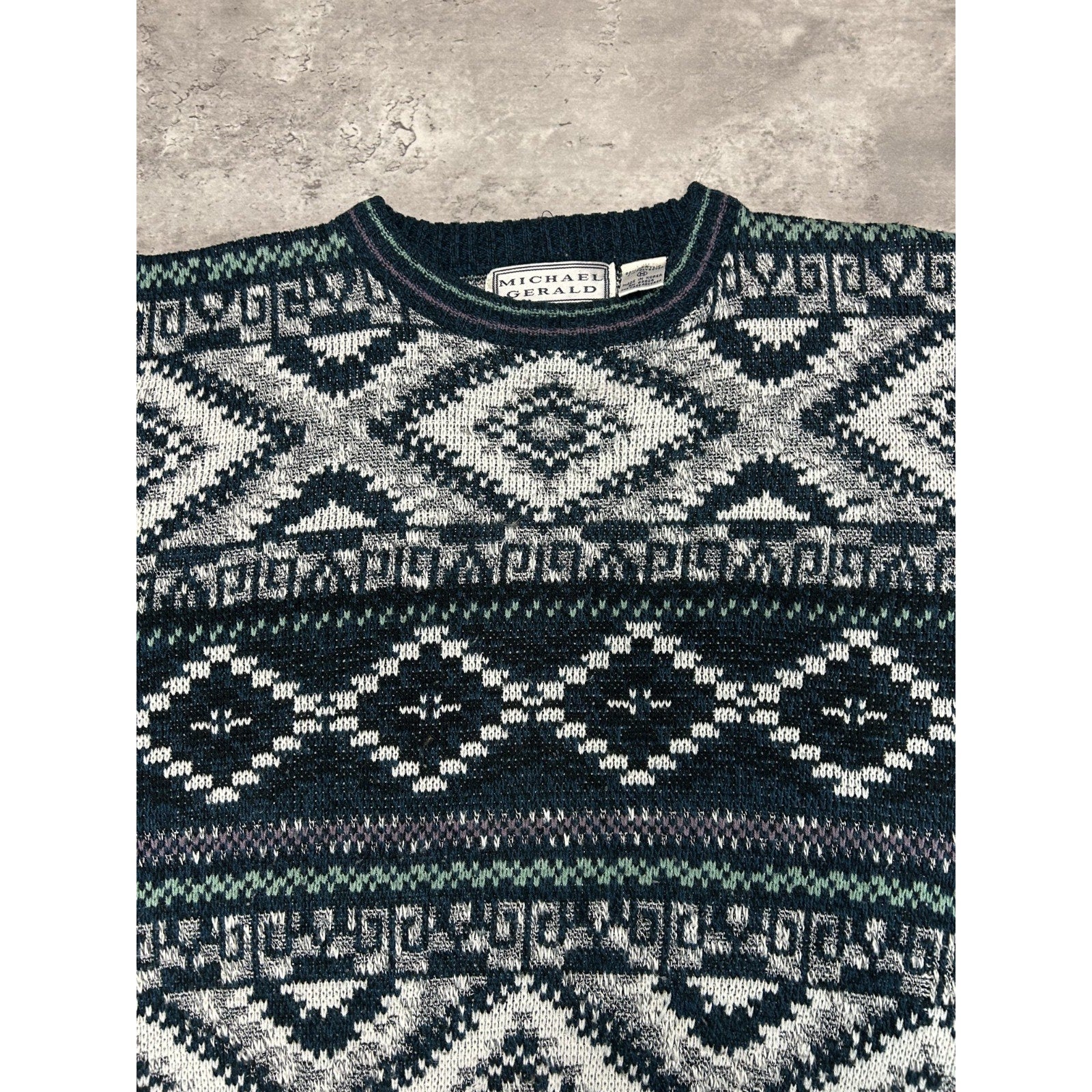 Vintage Michael Gerard Geometric Stripe Print Knit Sweater Size Medium