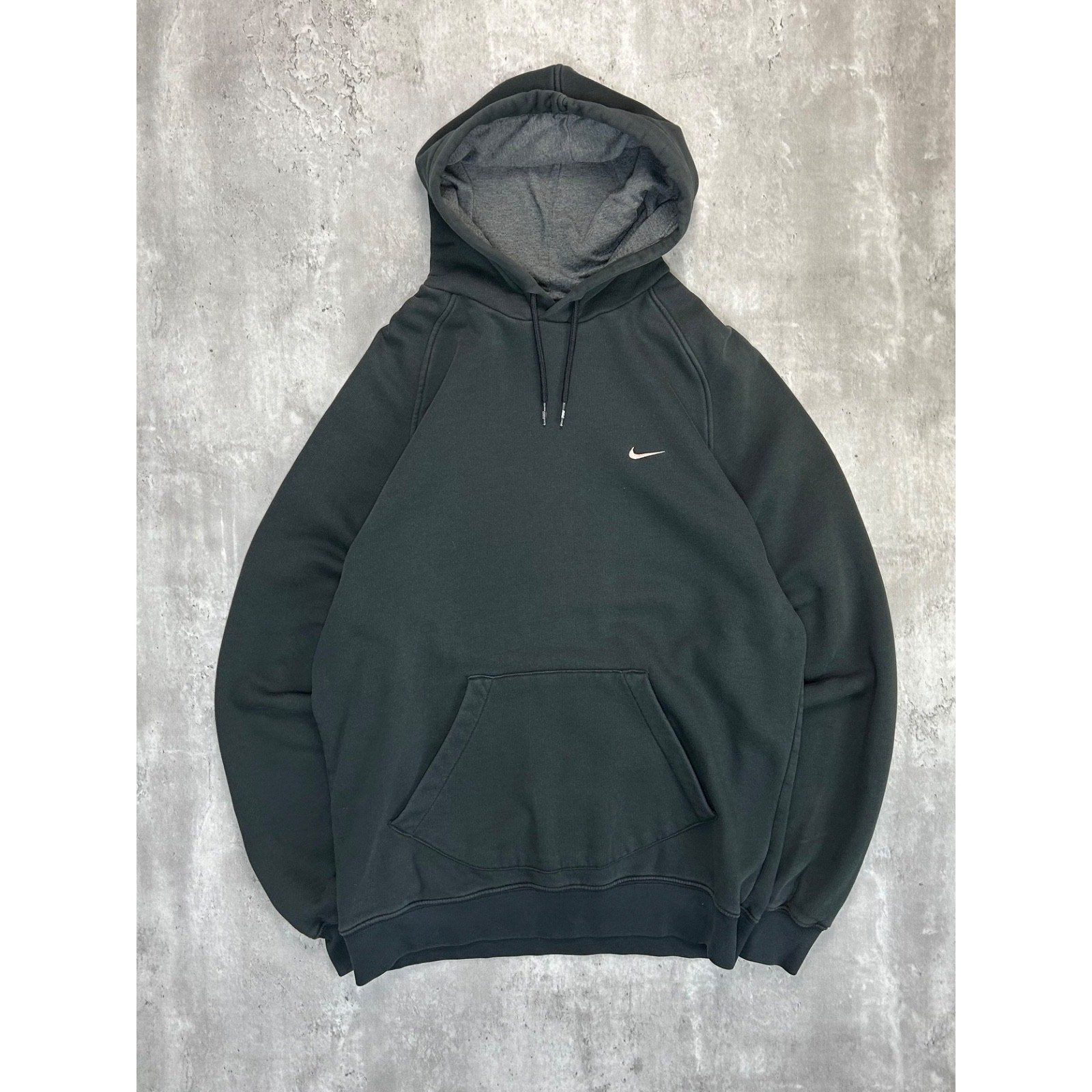 Vintage Nike Embroidered Mini Swoosh Hooded Sweatshirt Size Large Black