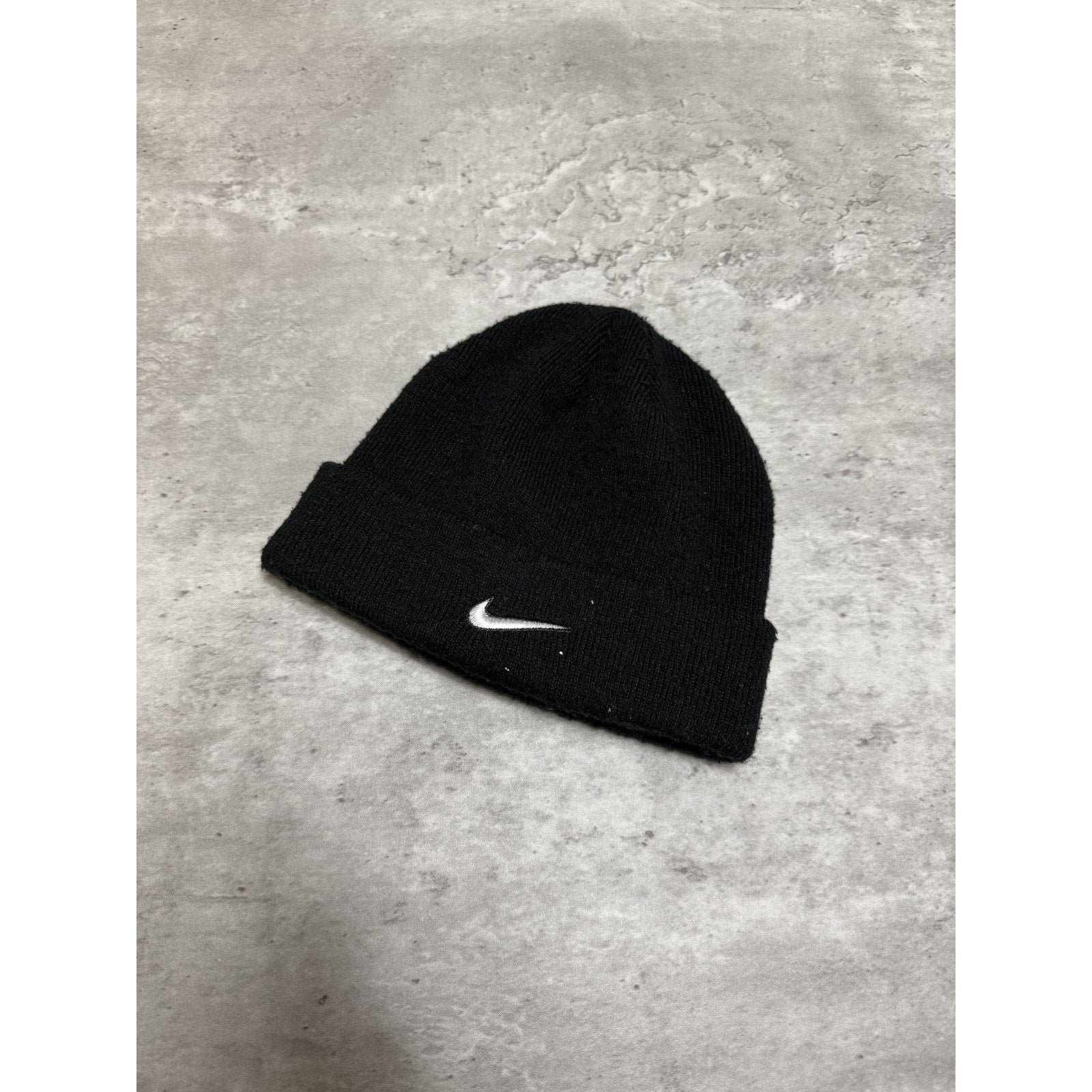 Vintage Nike Embroidered Swoosh Black Beanie Hat YOUTH
