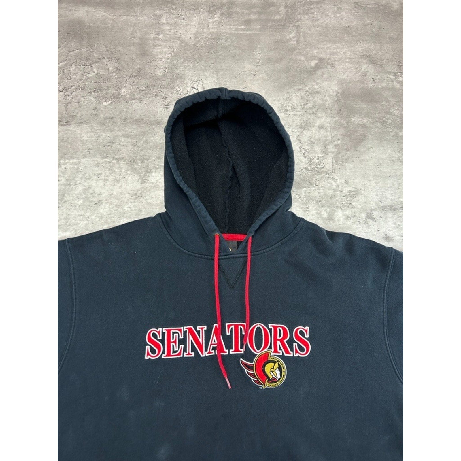 Vintage Ottawa Senators NHL Embroidered Logo Hooded Sweatshirt Size Large Black