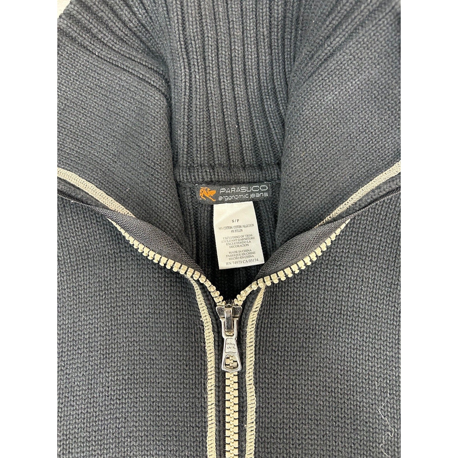 Vintage Parasuco Contrast Stitch Full Zip Collared Knit Sweater Size Small
