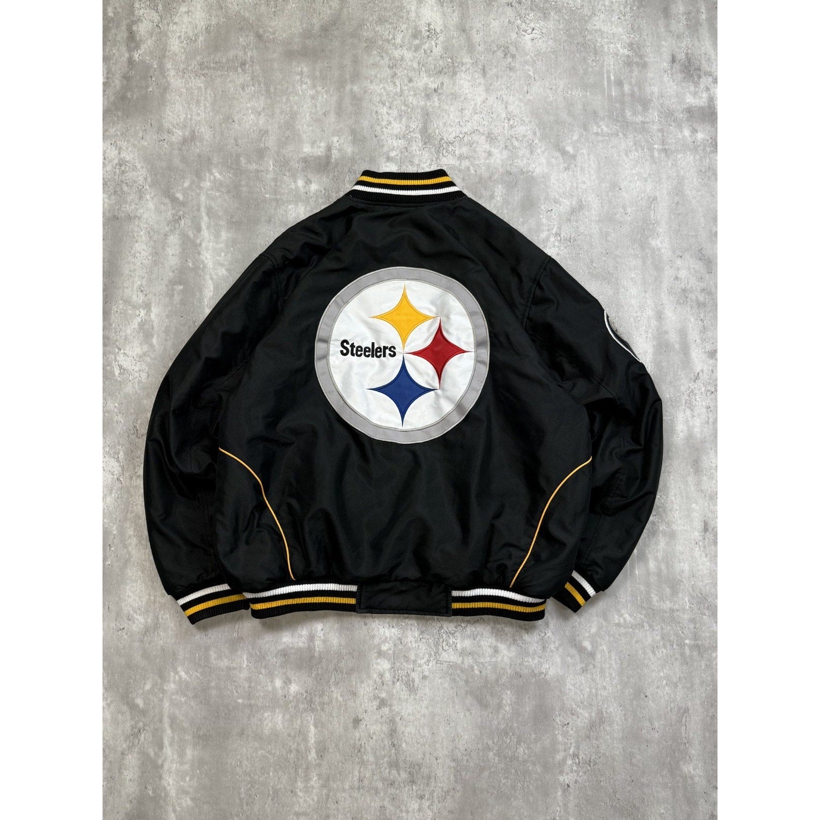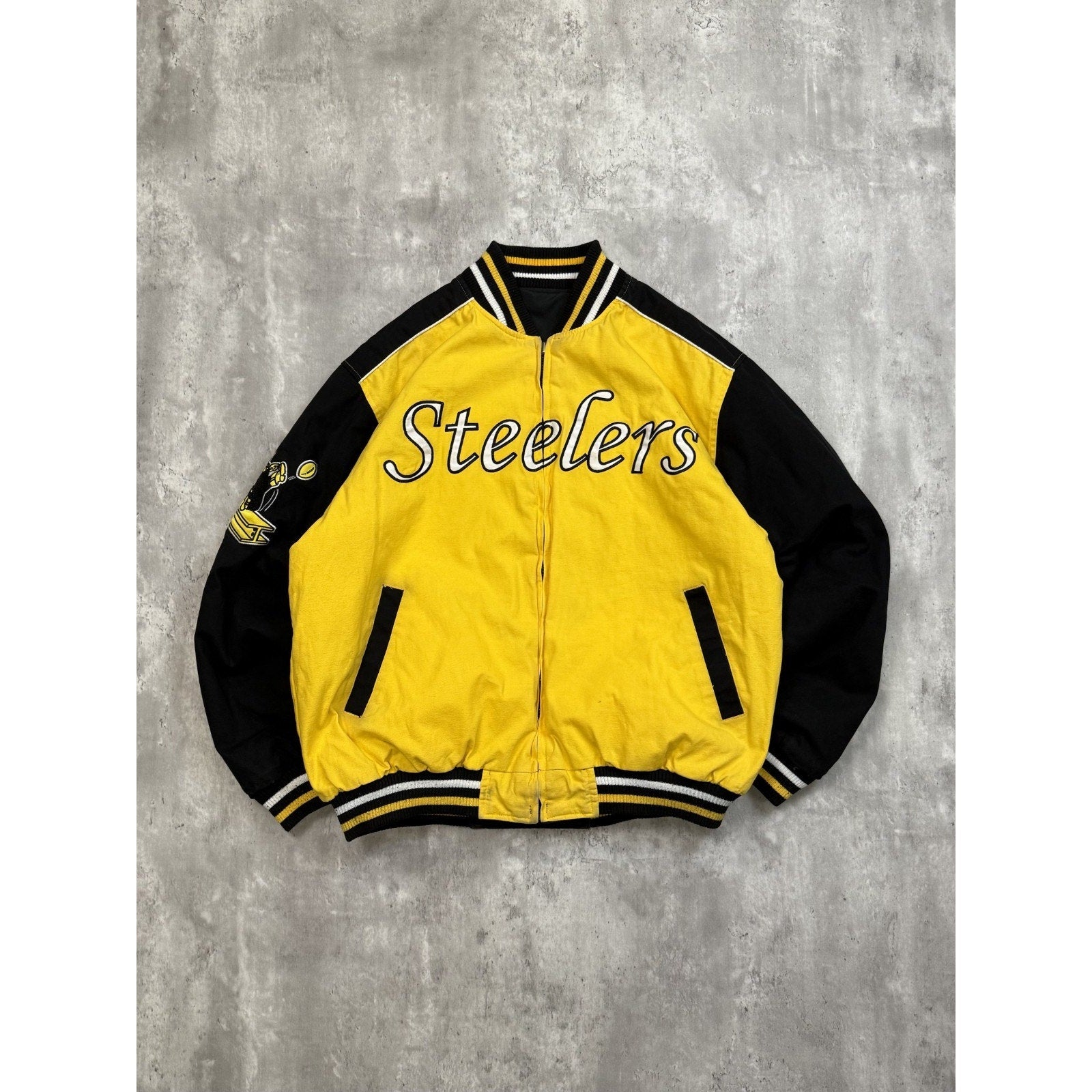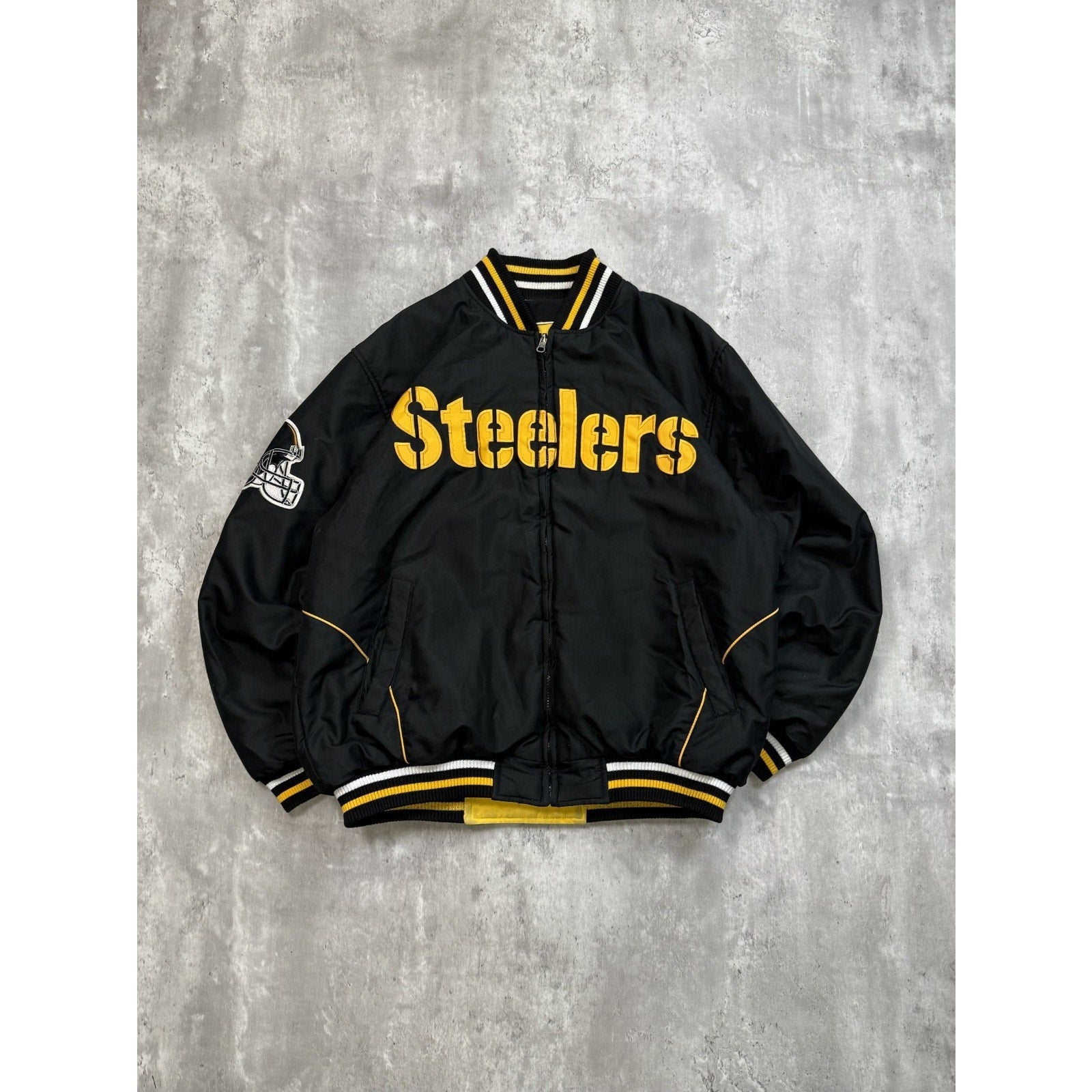 Vintage Pittsburgh Steelers NFL Spellout Reversible Bomber Jacket Size Large