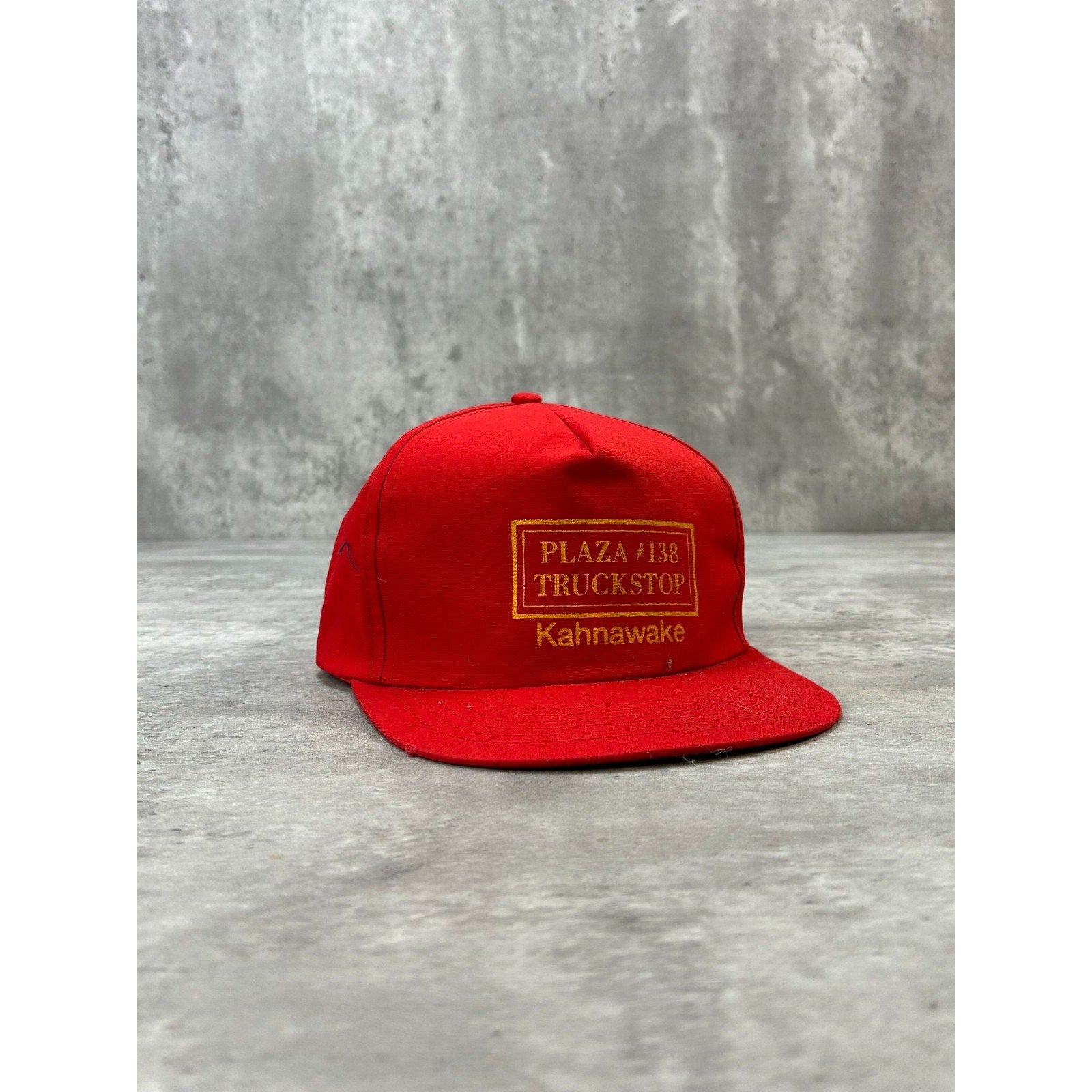 Vintage Plaza 138 Truck Stop Graphic Spellout Trucker Snapback Hat OSFA