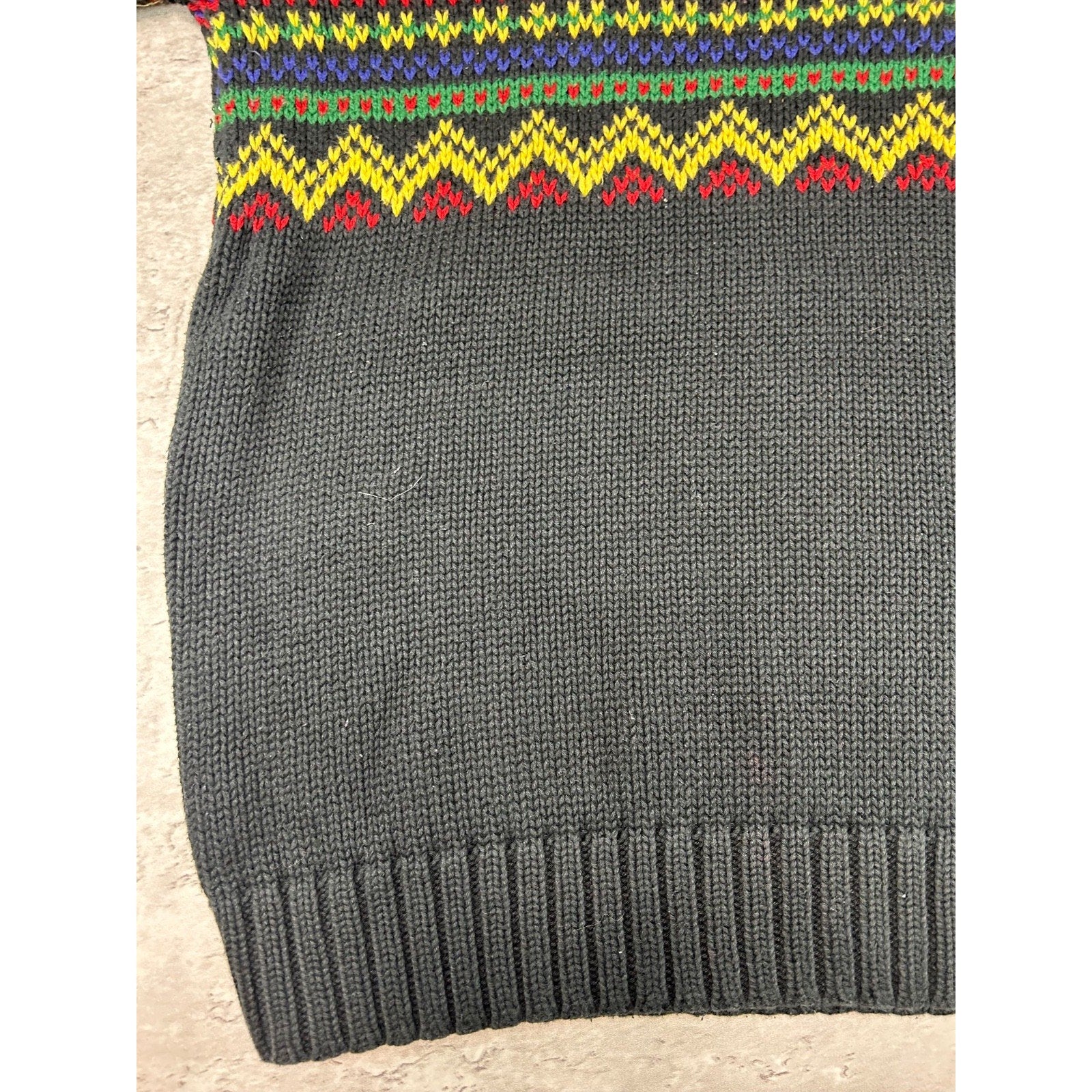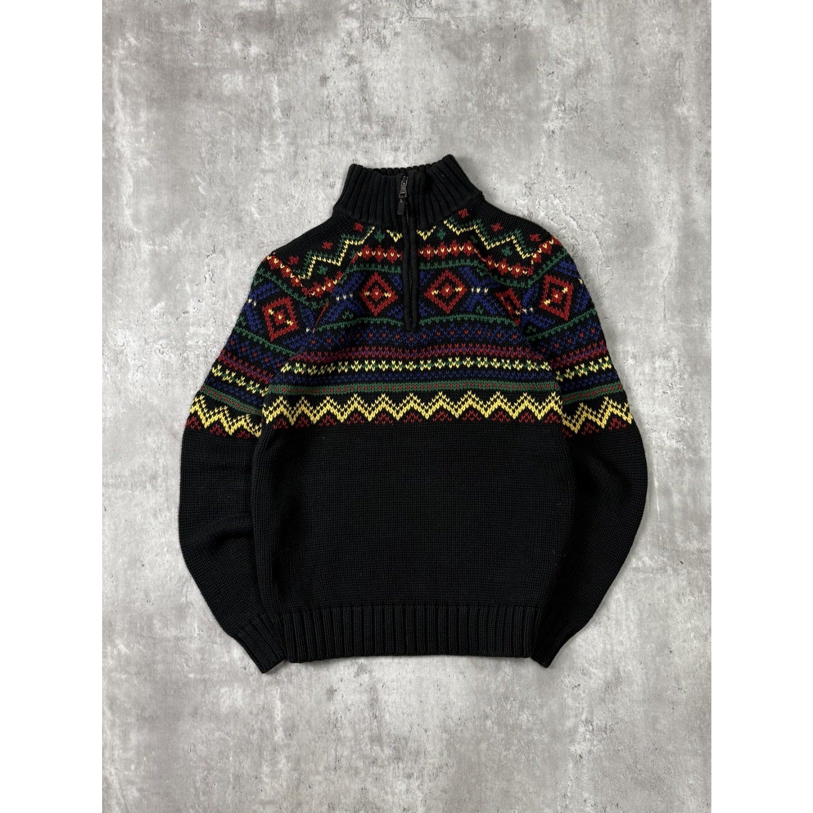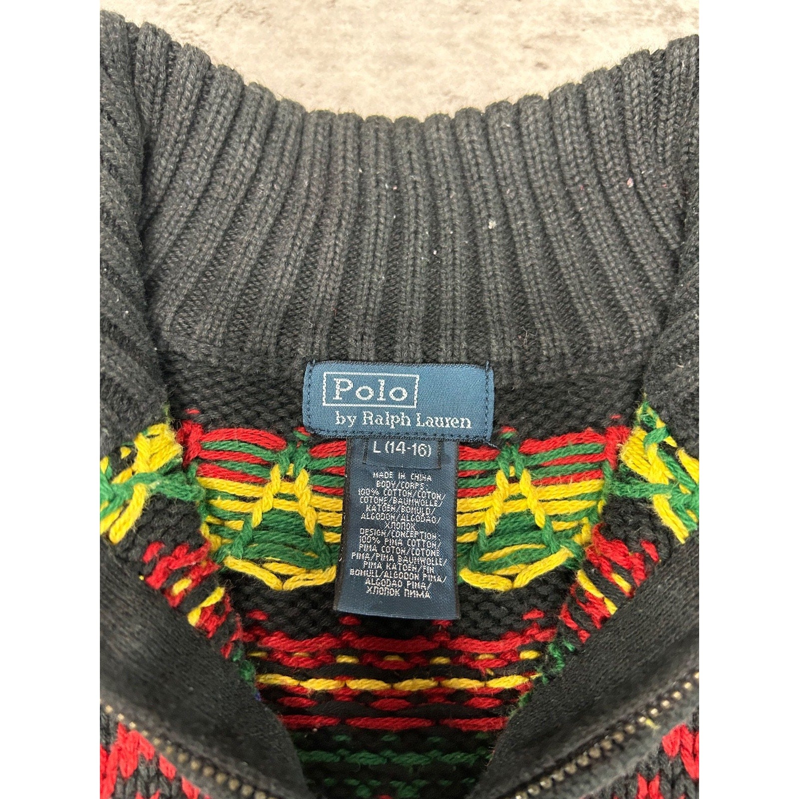 Vintage Polo Ralph Lauren 1/4 Zip Geometric Striped Knit Sweater Sz Large YOUTH