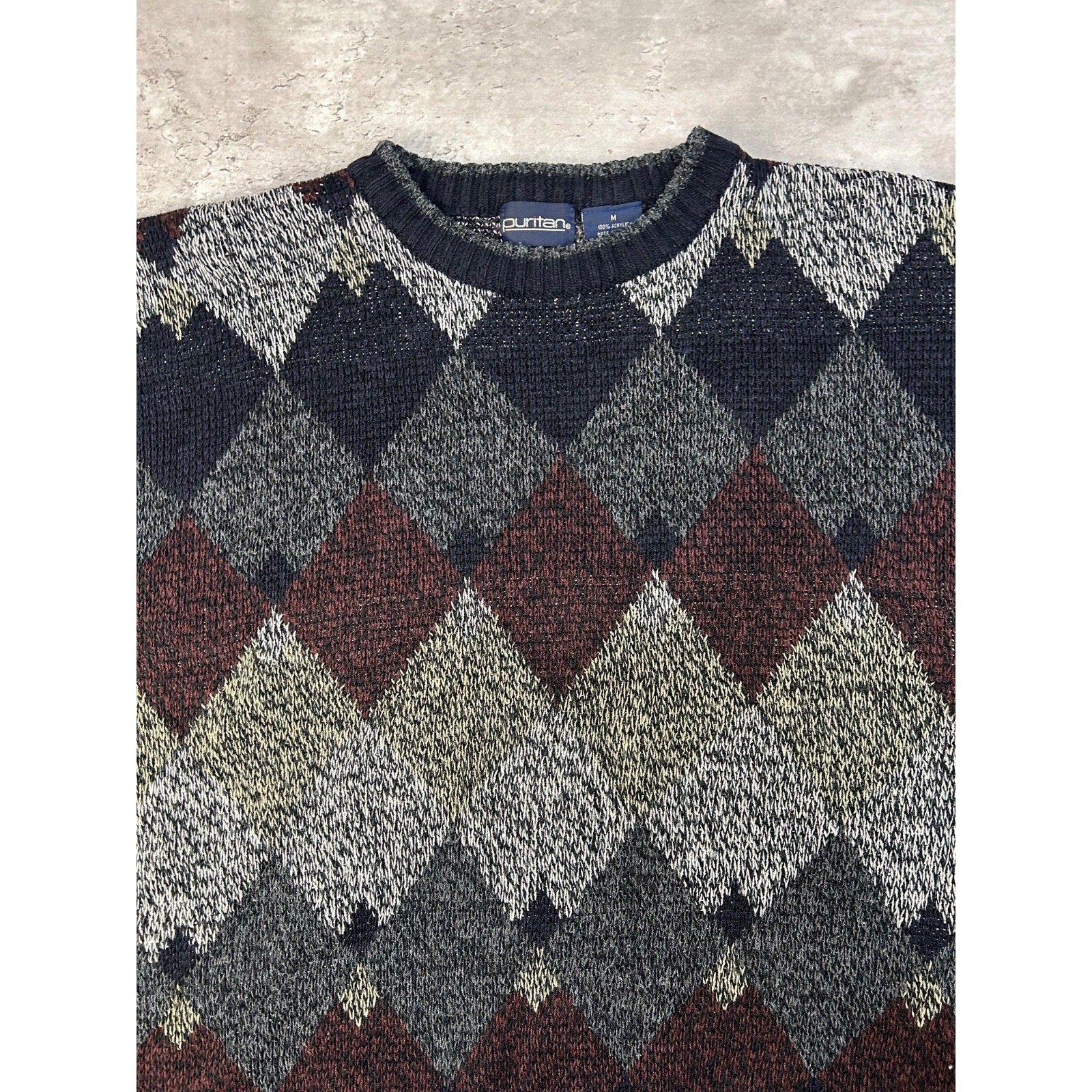 Vintage Puritan Diamond Stripe Print Pullover Knit Sweater Size Medium
