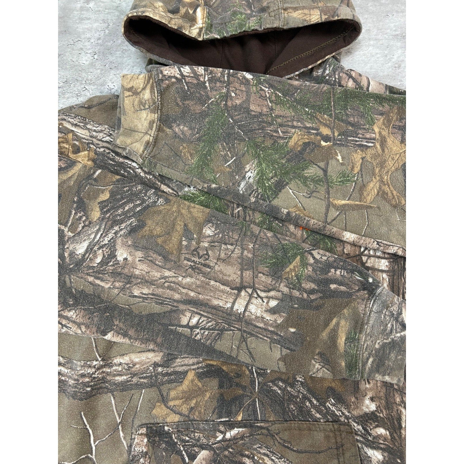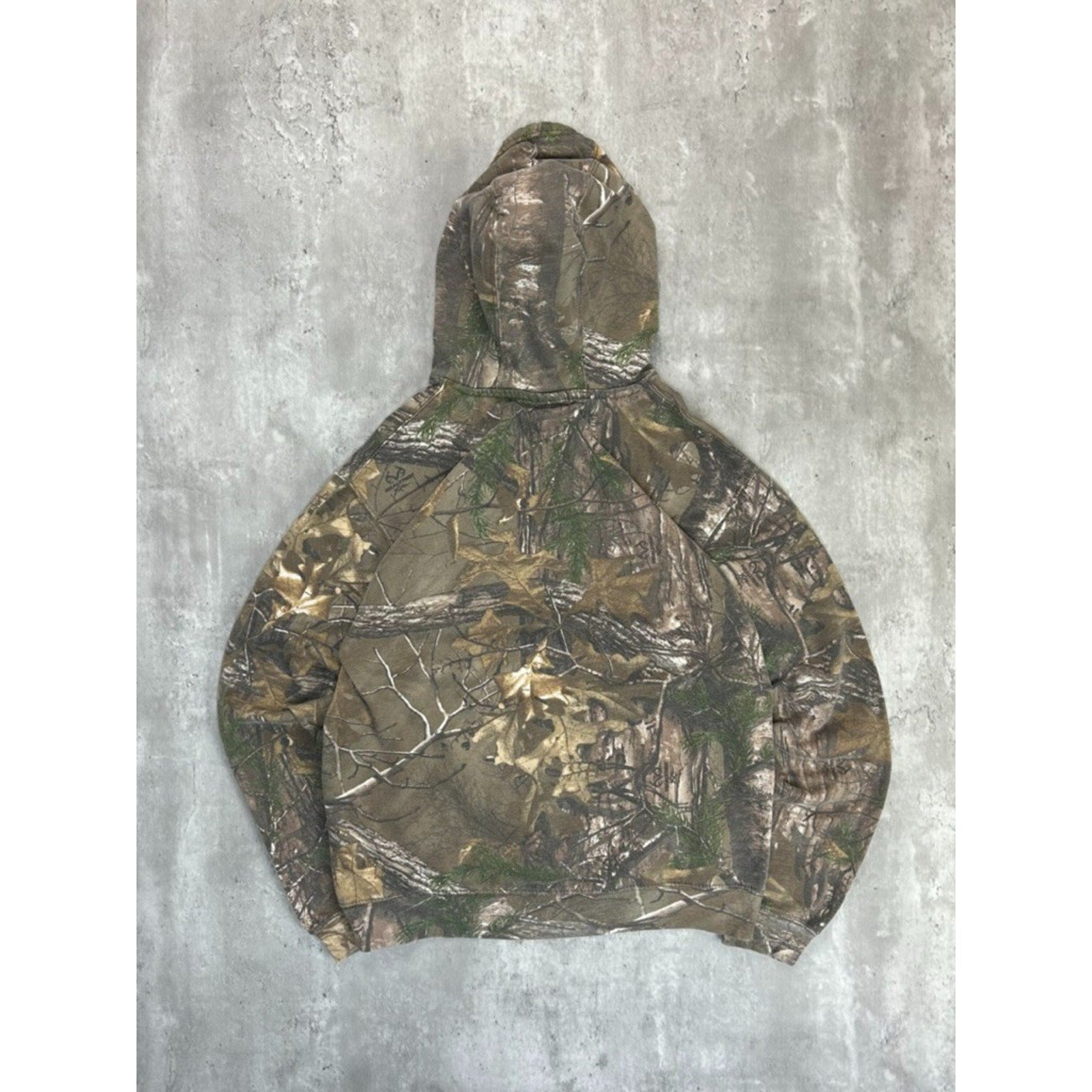 Vintage Realtree Xtra Tree Camo Hunting Pullover Hooded Sweatshirt Size Medium