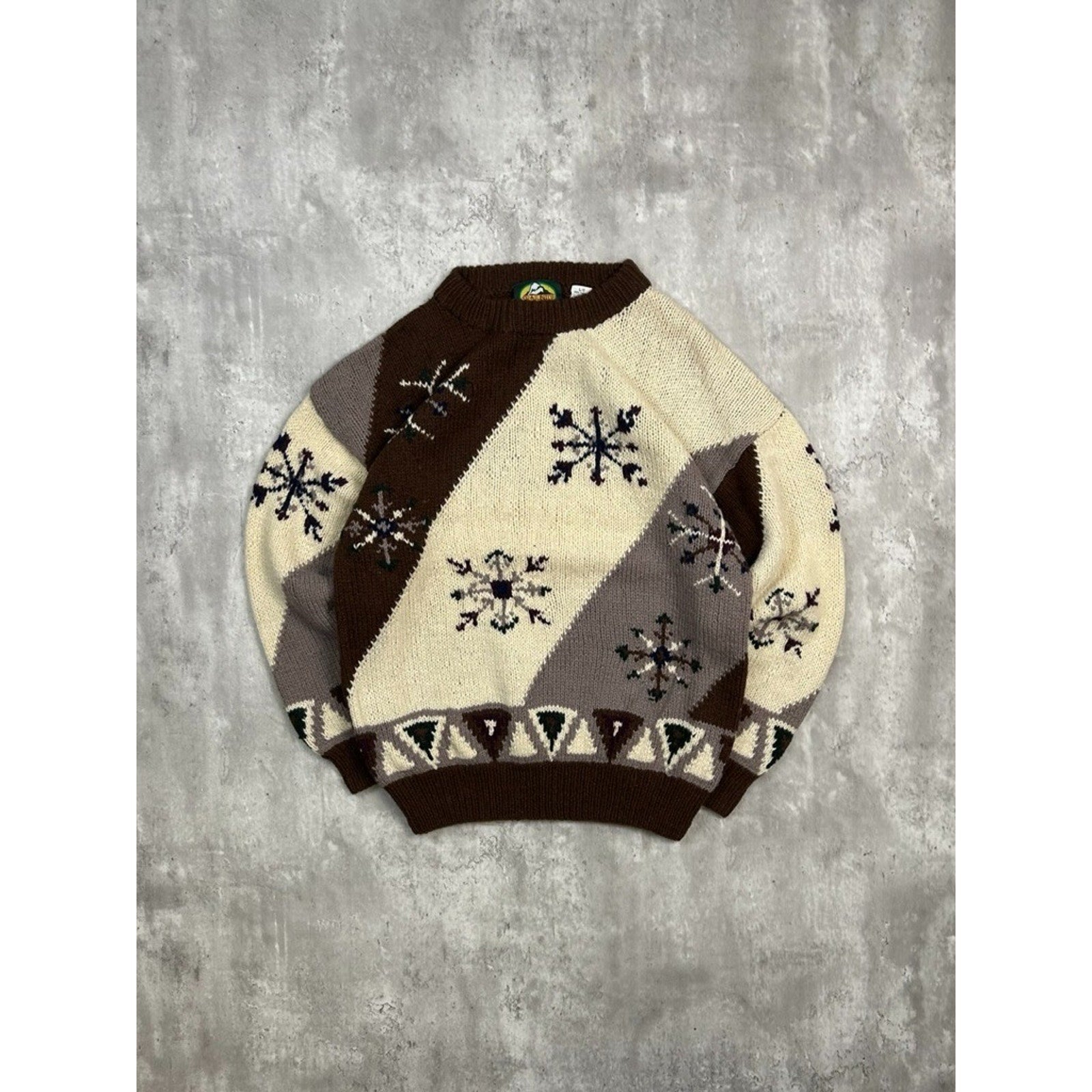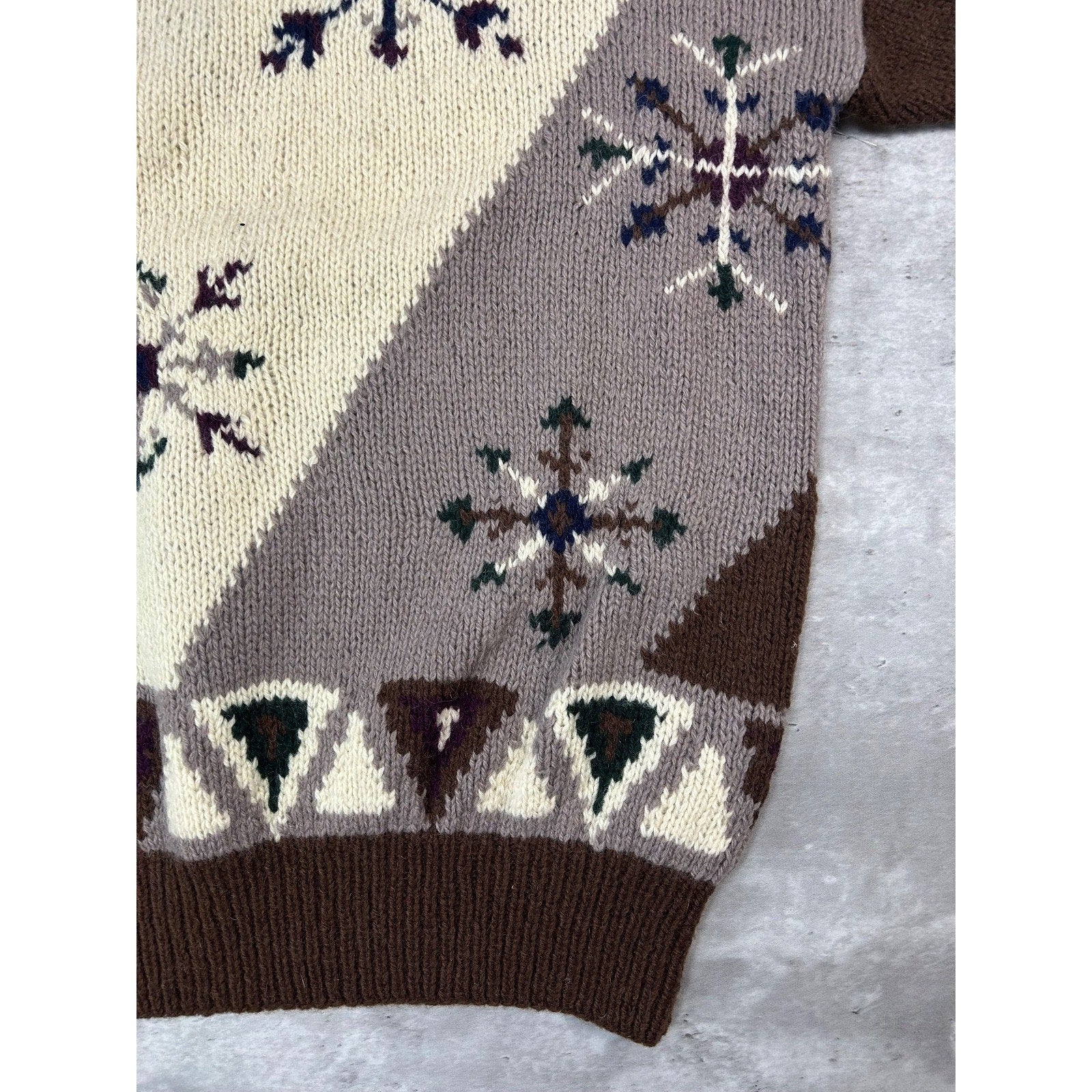 Vintage Trail N Toe Earth Tone Striped Snowflake Print Knit Sweater Size Large