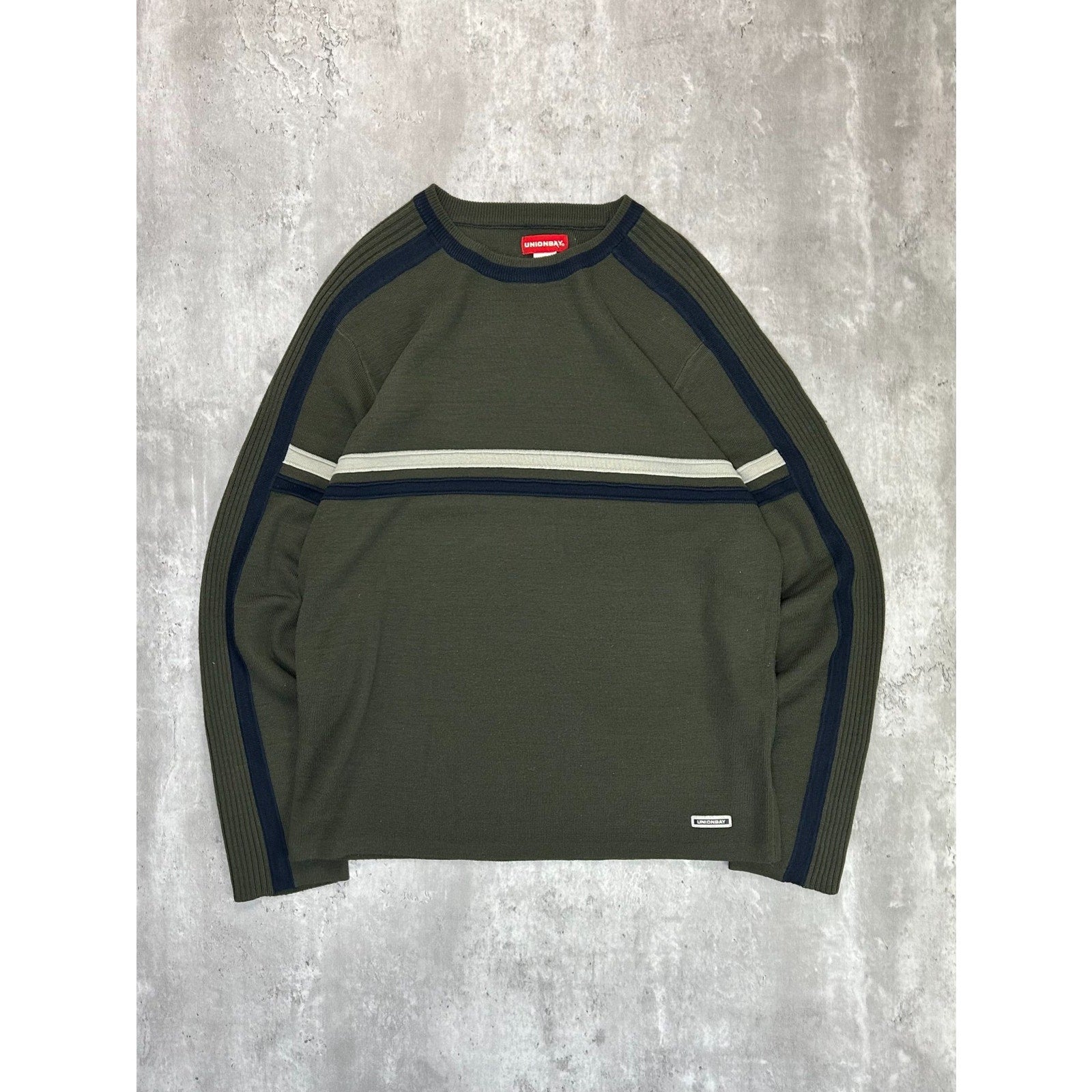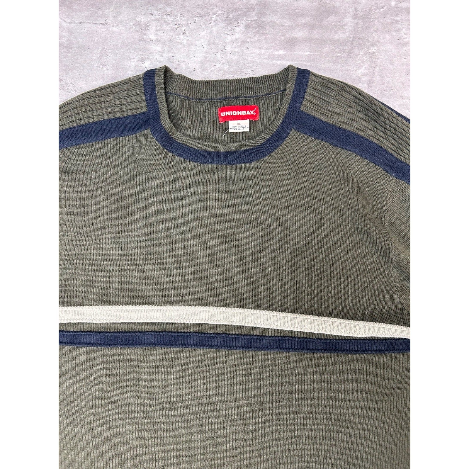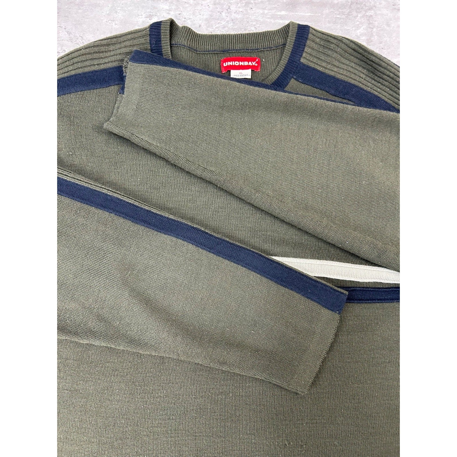 Vintage Union Bay Solid Striped Pullover Knit Sweater Size XL