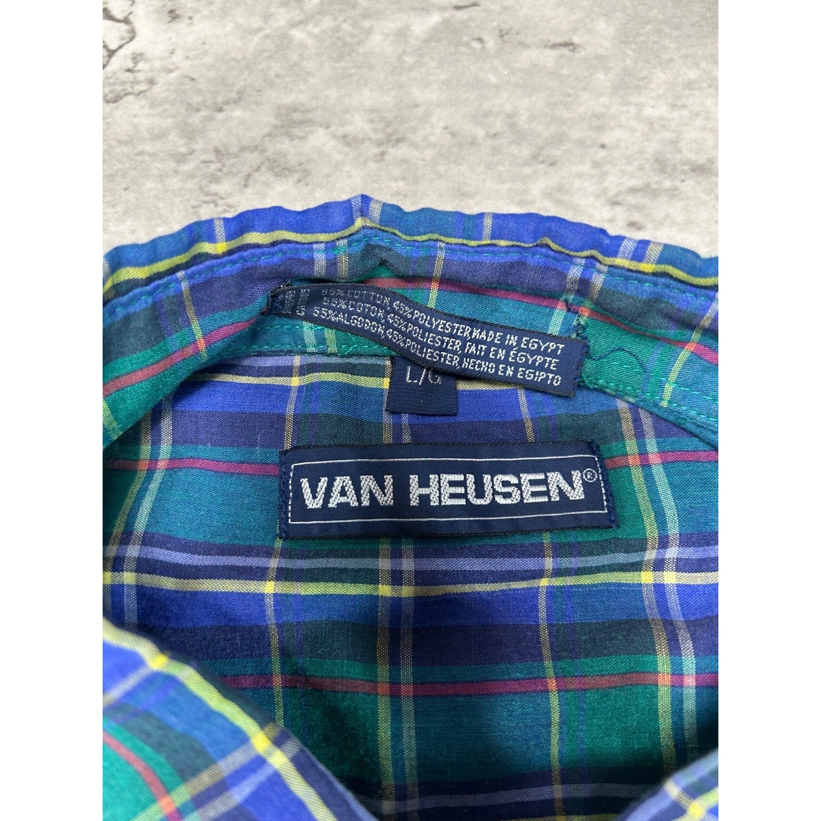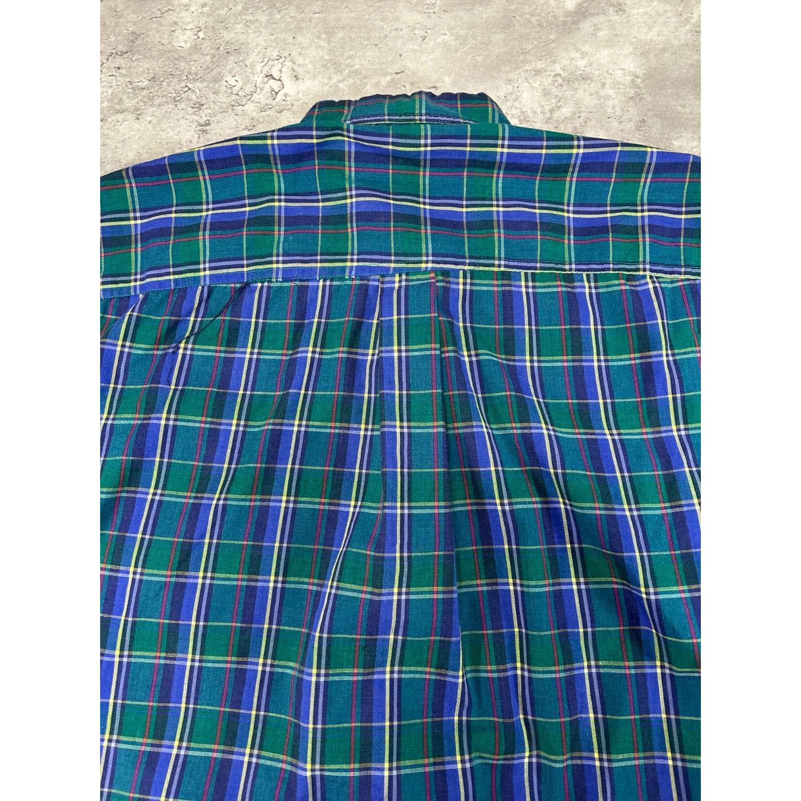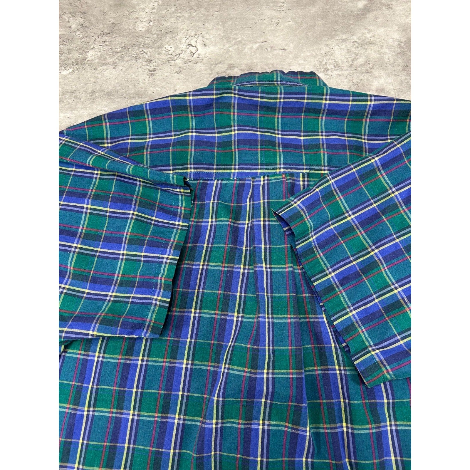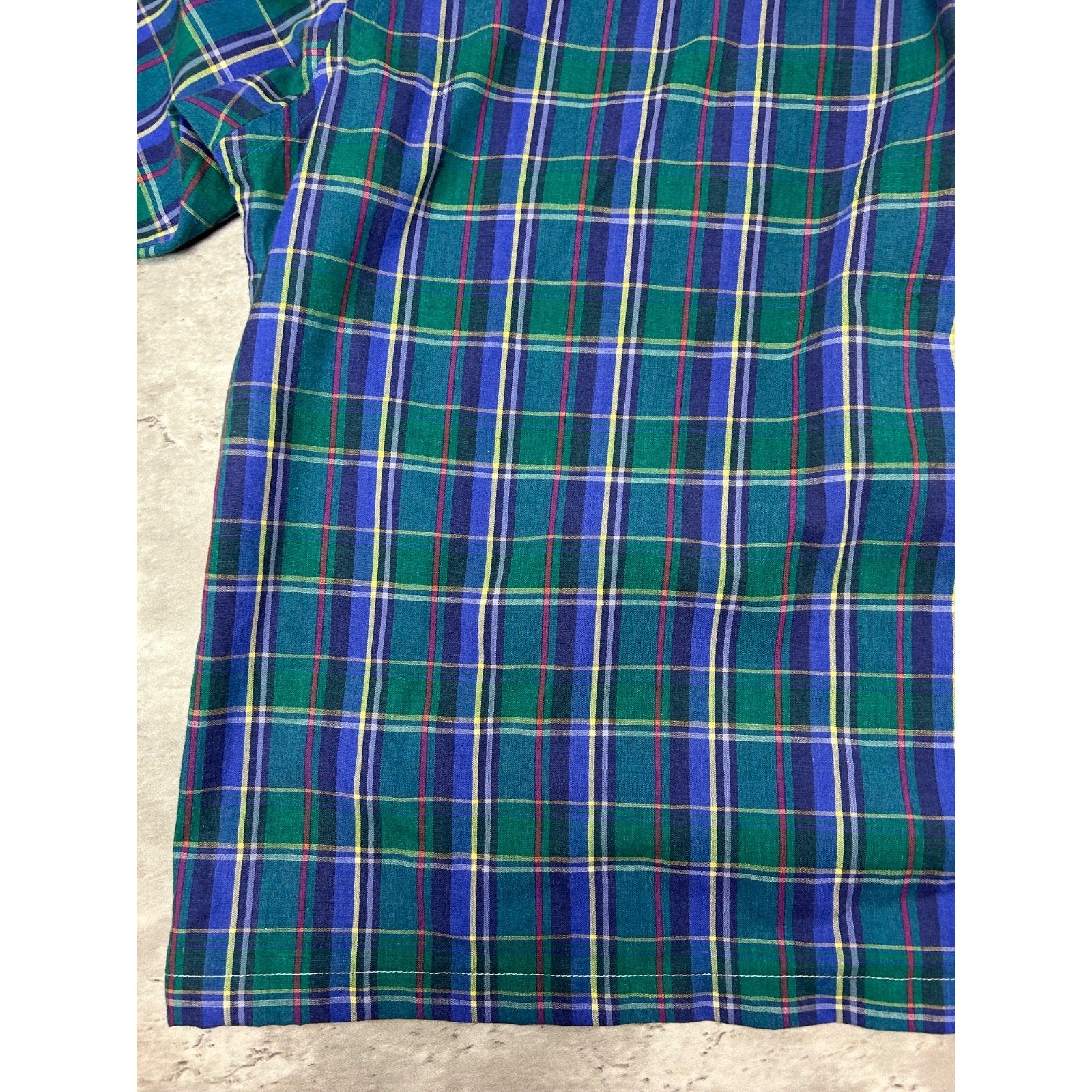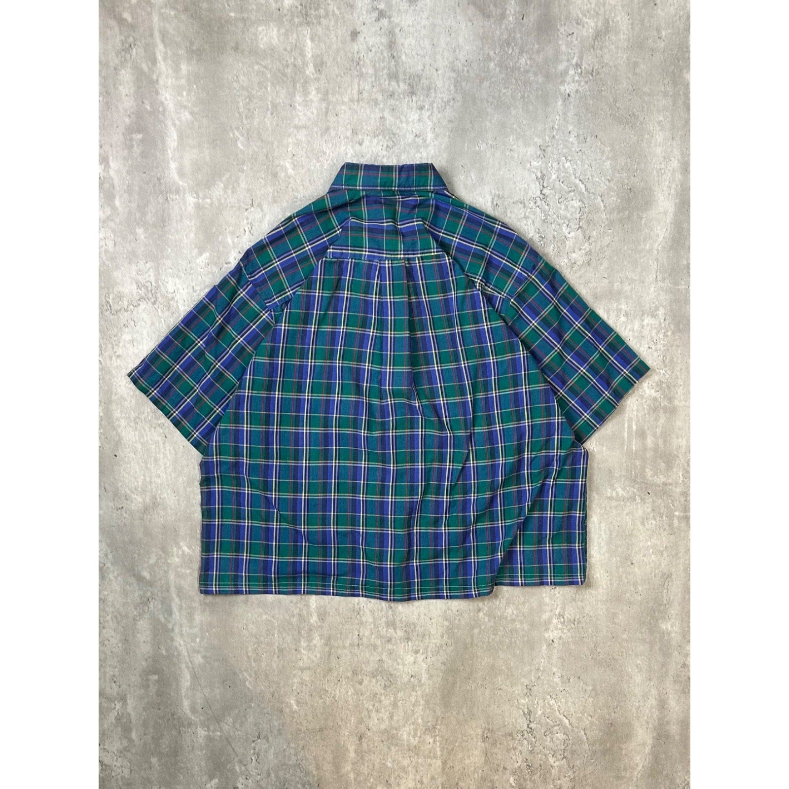Vintage Van Heusen Plaid Short Sleeve Cropped Reworked Button Up Shirt Sz Large