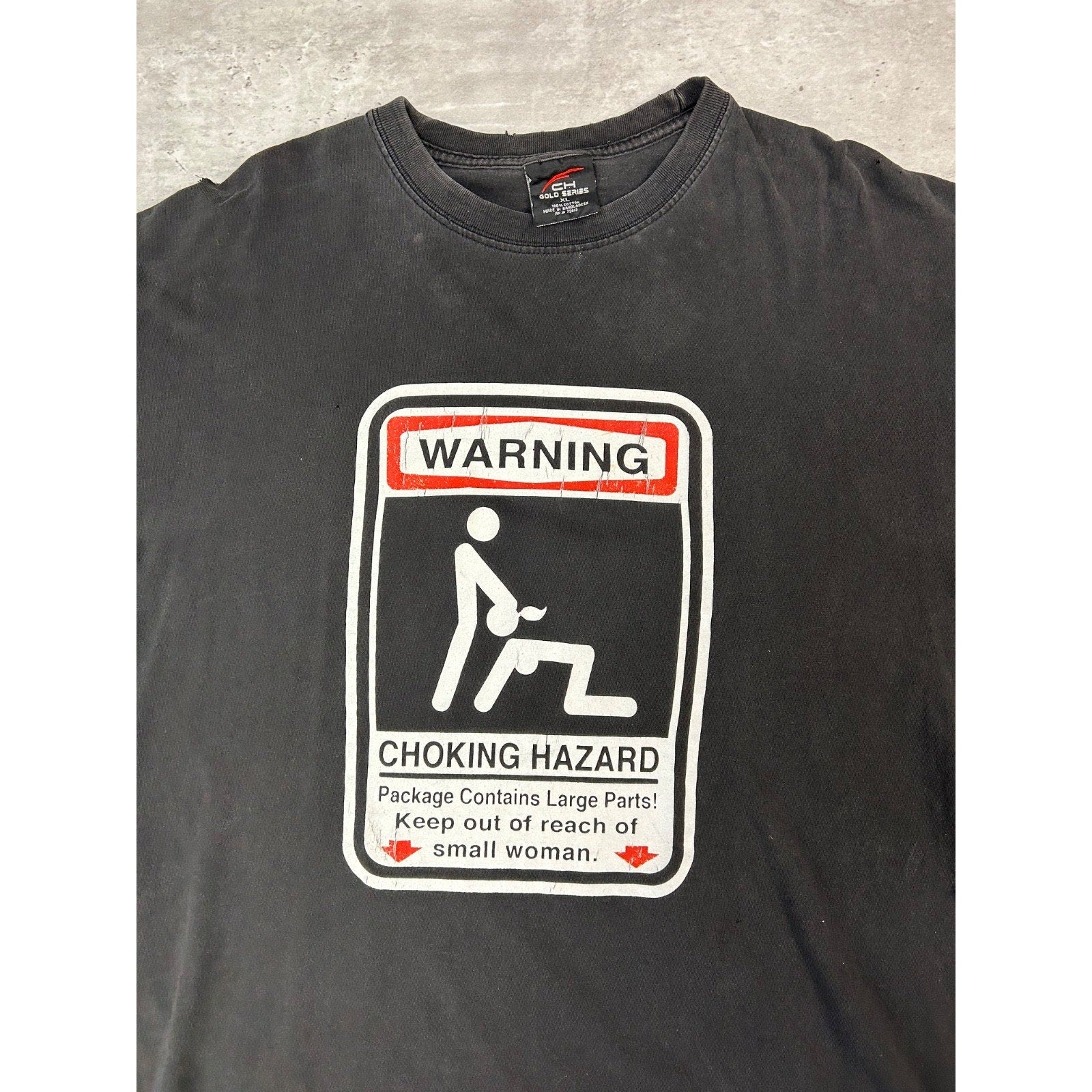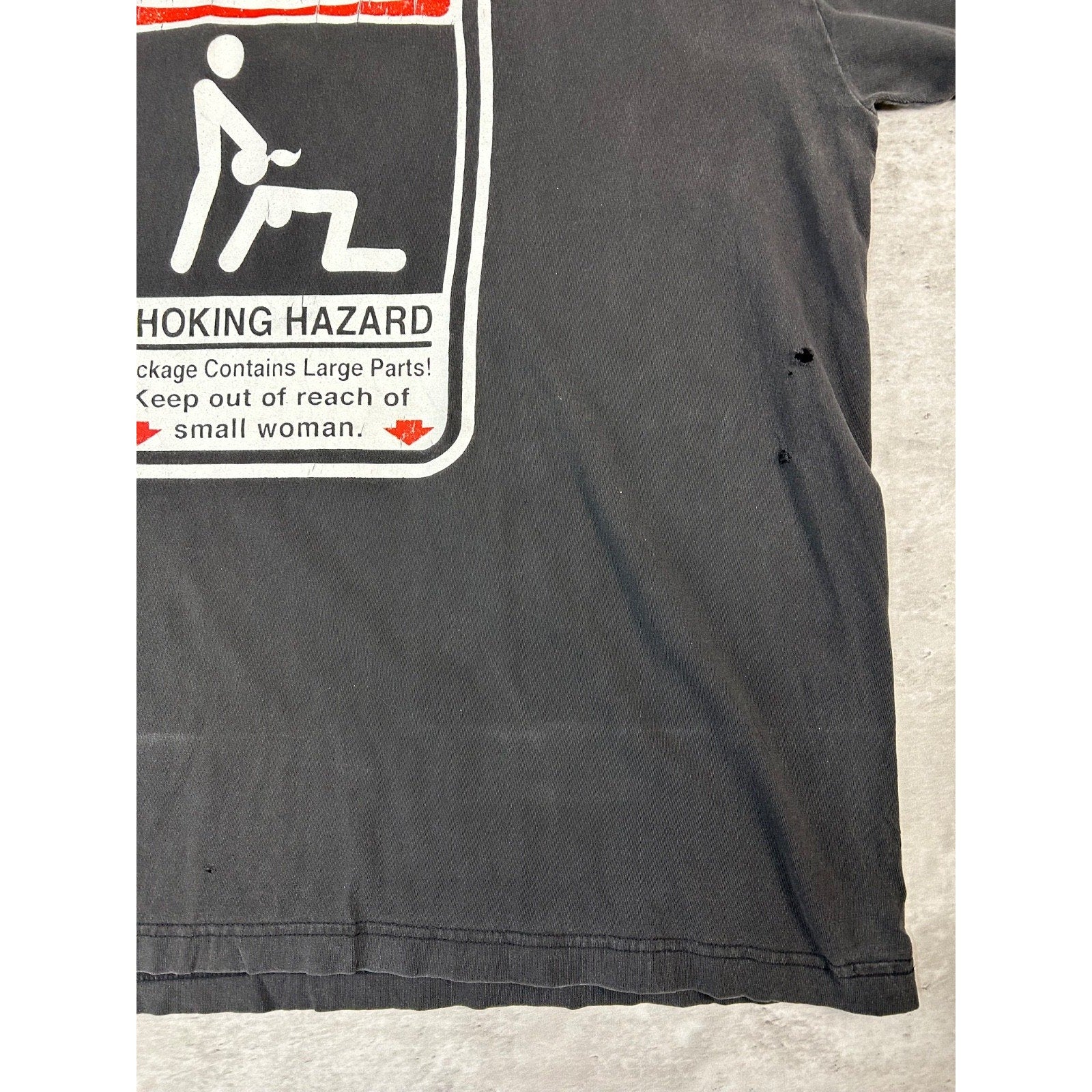 Vintage Warning Choking Hazard Dirty Comedy Graphic T-Shirt Size XL Black