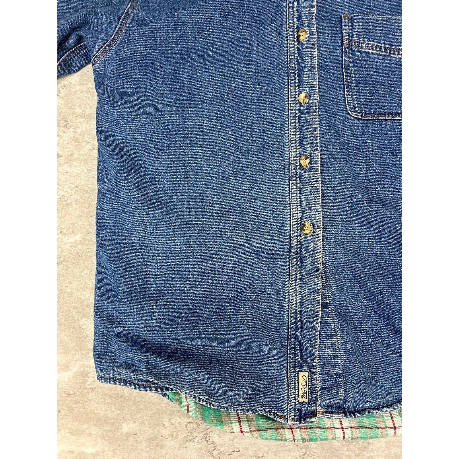 Vintage Woolrich Plaid Lined Dark Wash Denim Long Sleeve Button Up Shirt Small