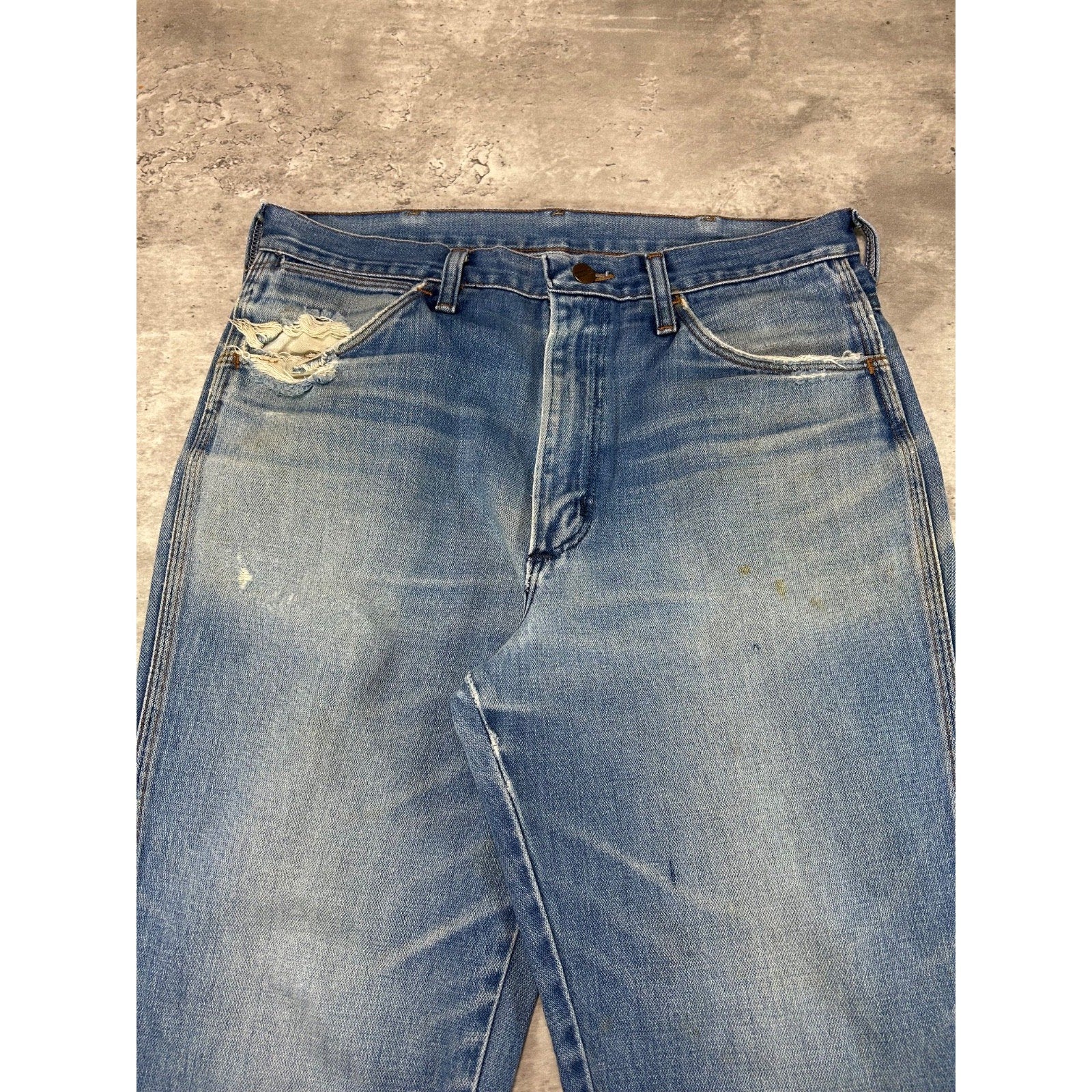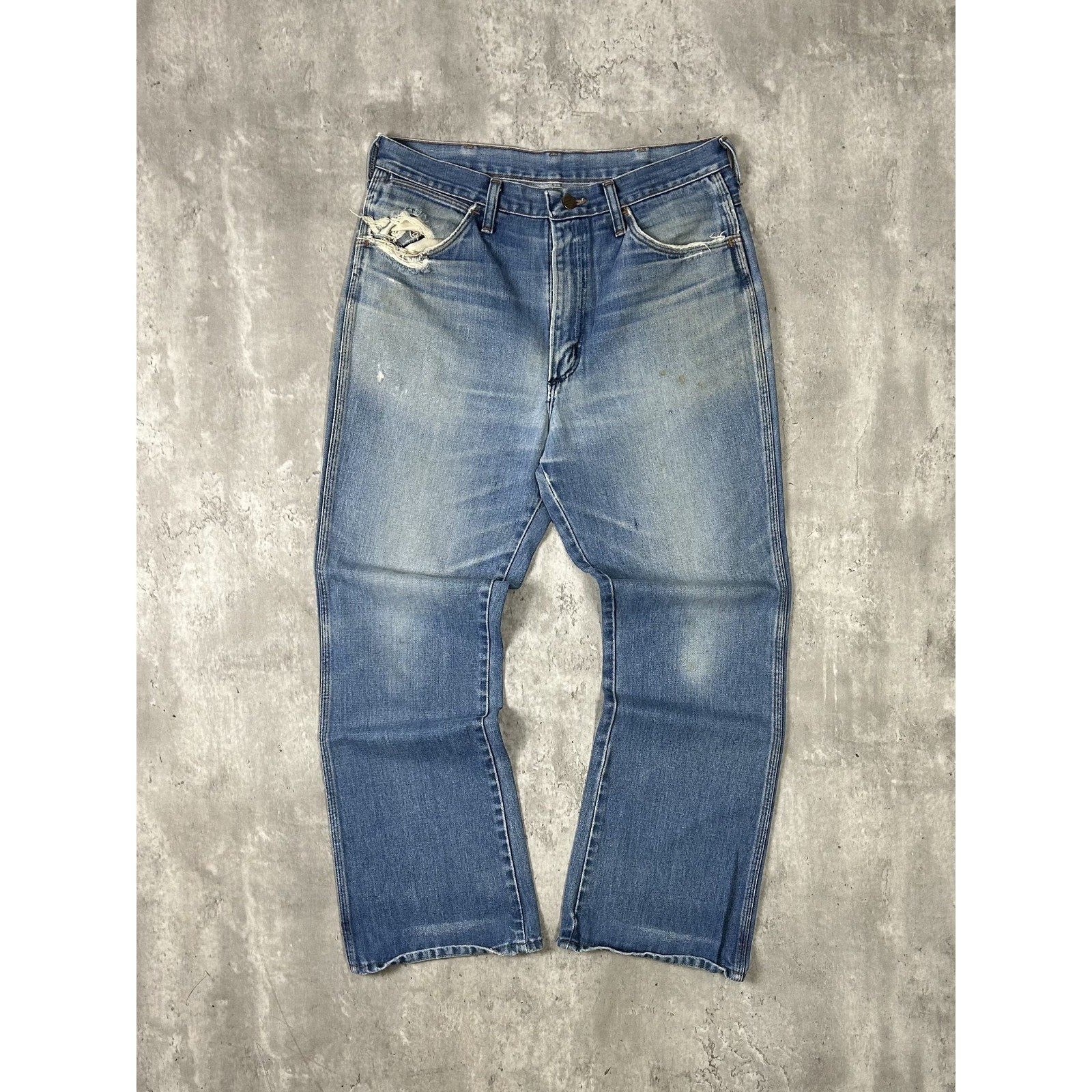 Vintage Wrangler Western Light Wash Denim Distressed Pants Size 33 Blue