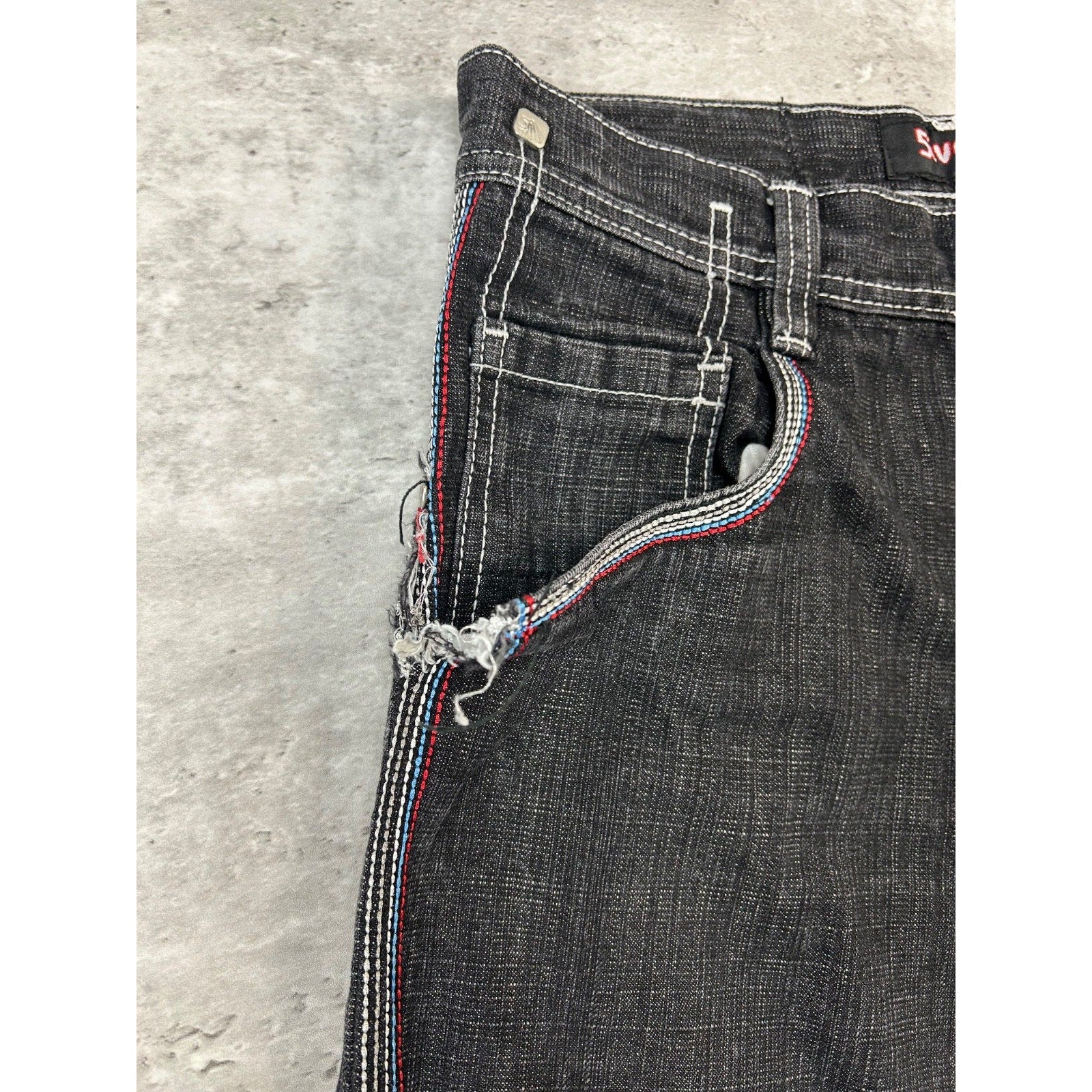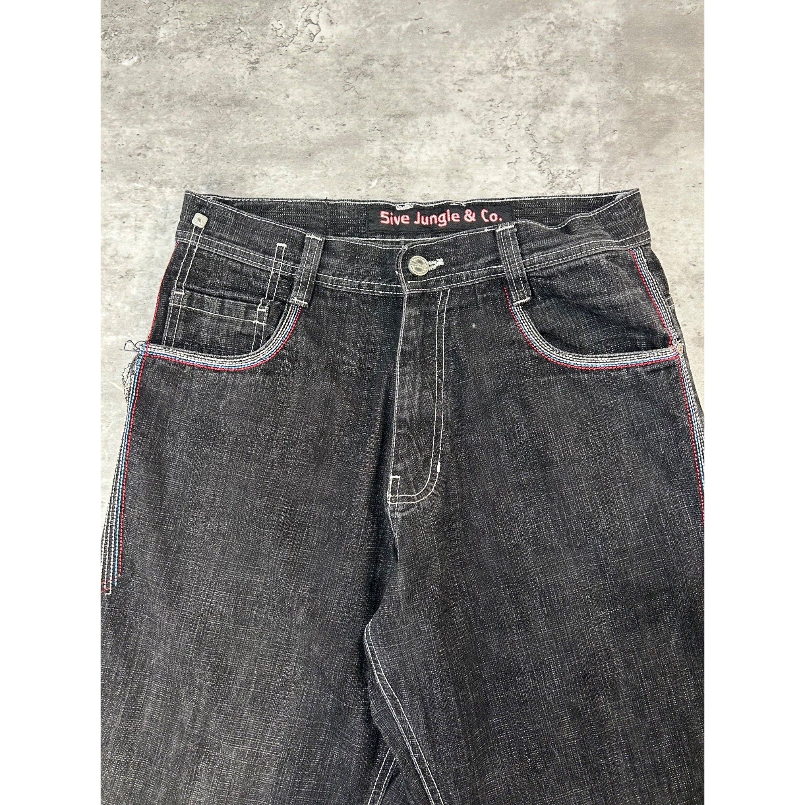 Vintage Y2K 5ive Jungle Black Wash Denim Embroidered Pocket Pants Size 33