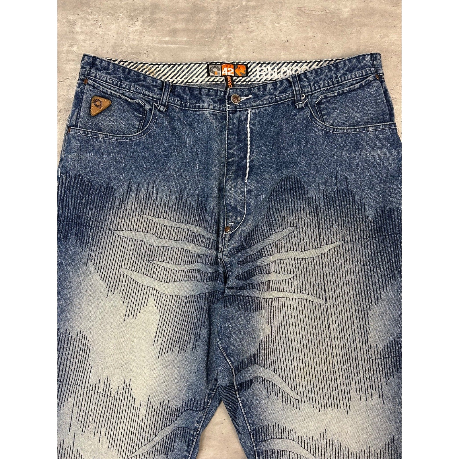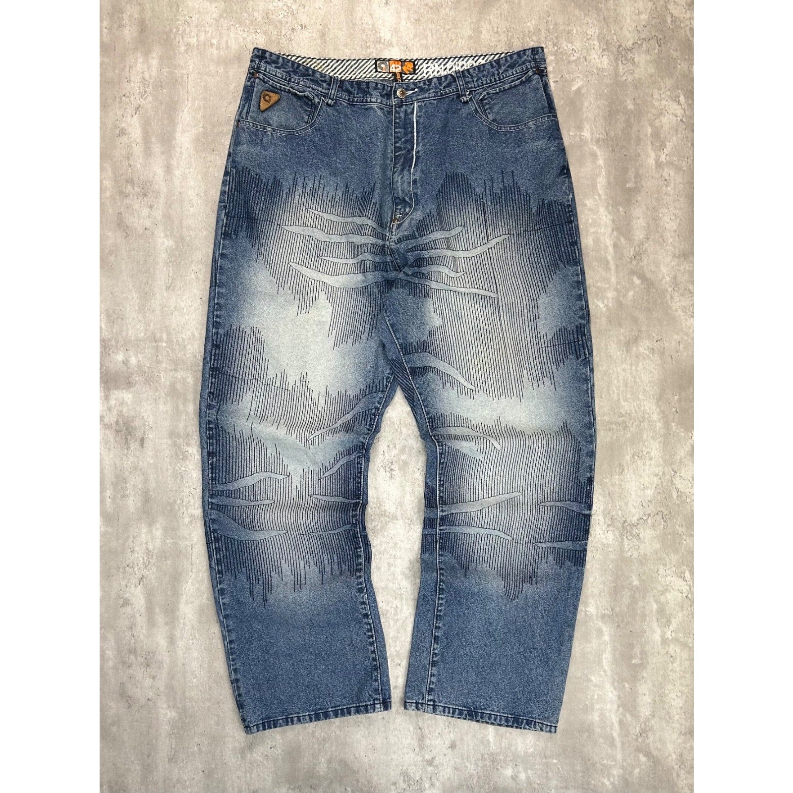 Vintage Y2K Akademiks Baggy Fit Medium Wash Textured Denim Pants Size 41