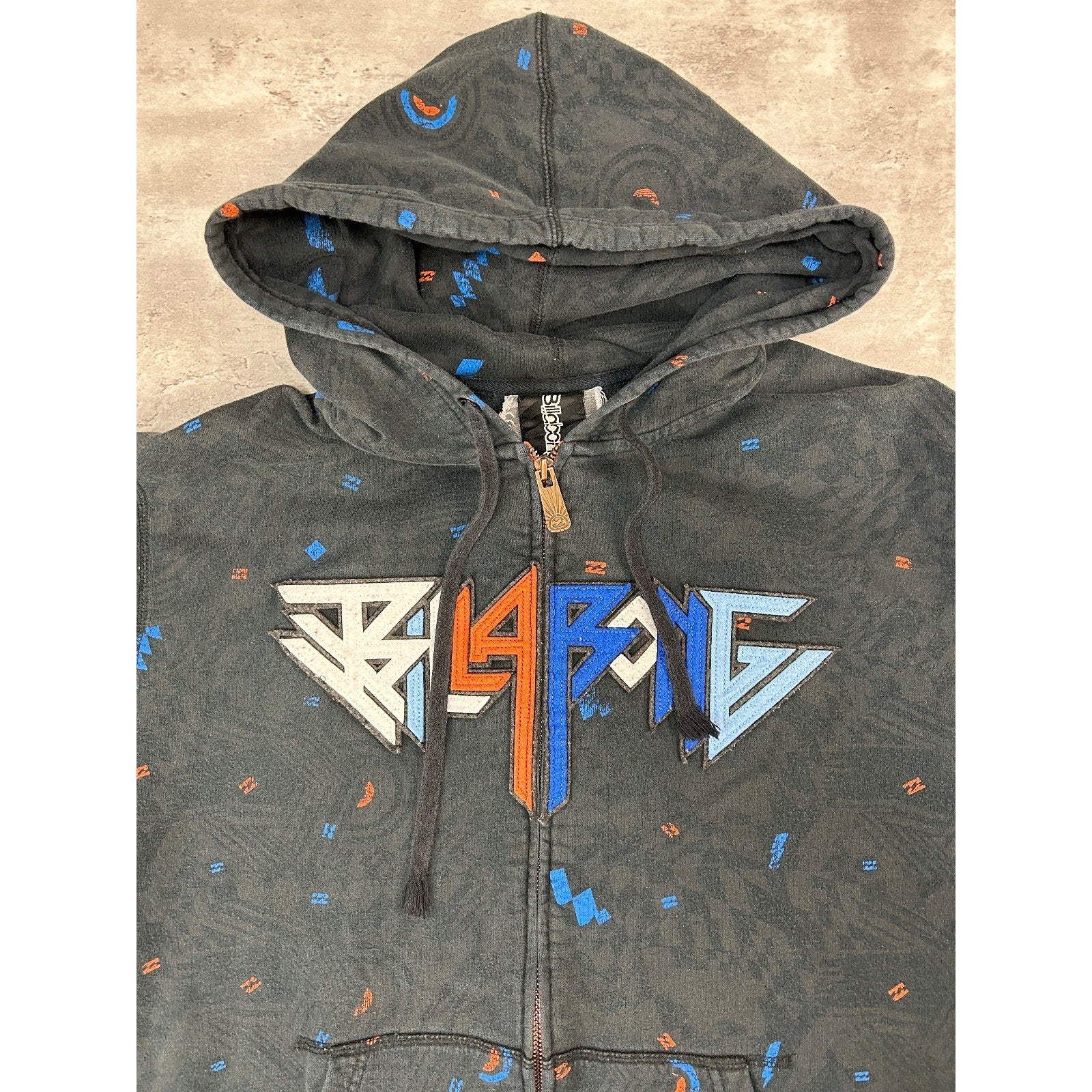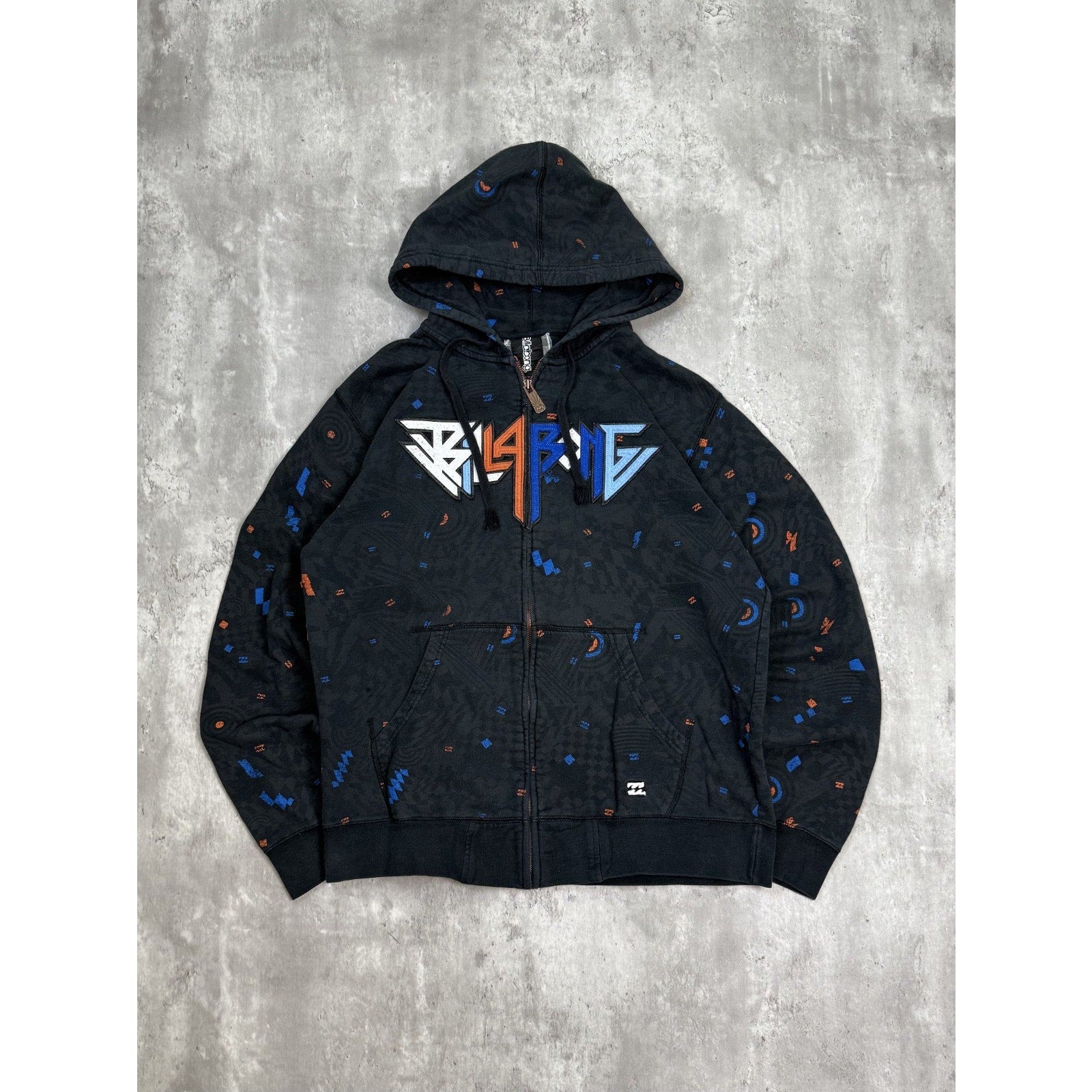 Vintage Y2K Billabong Embroidered Spellout Full Zip Hooded Sweatshirt Size XL