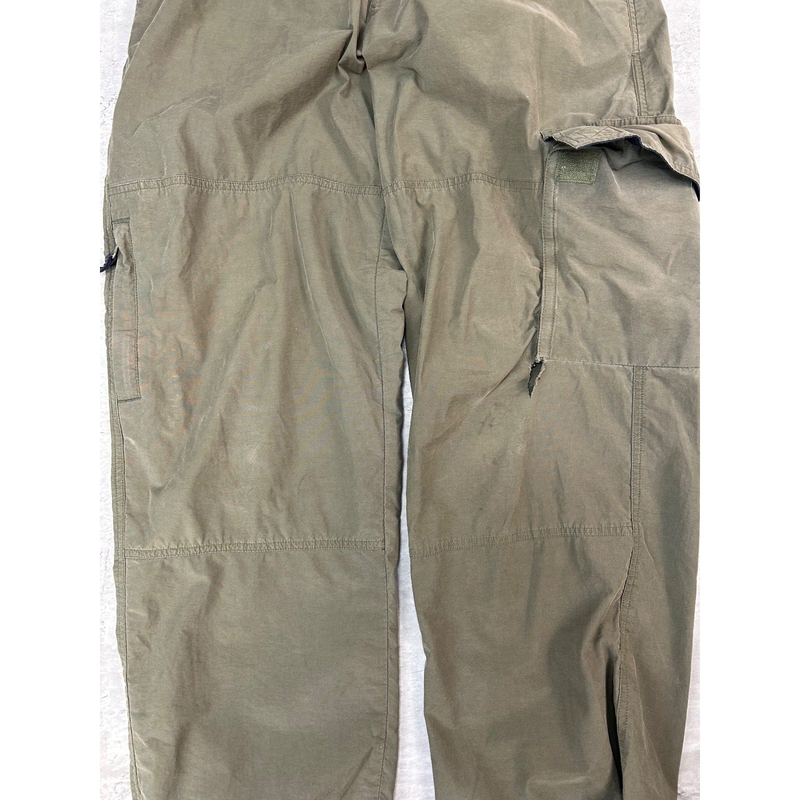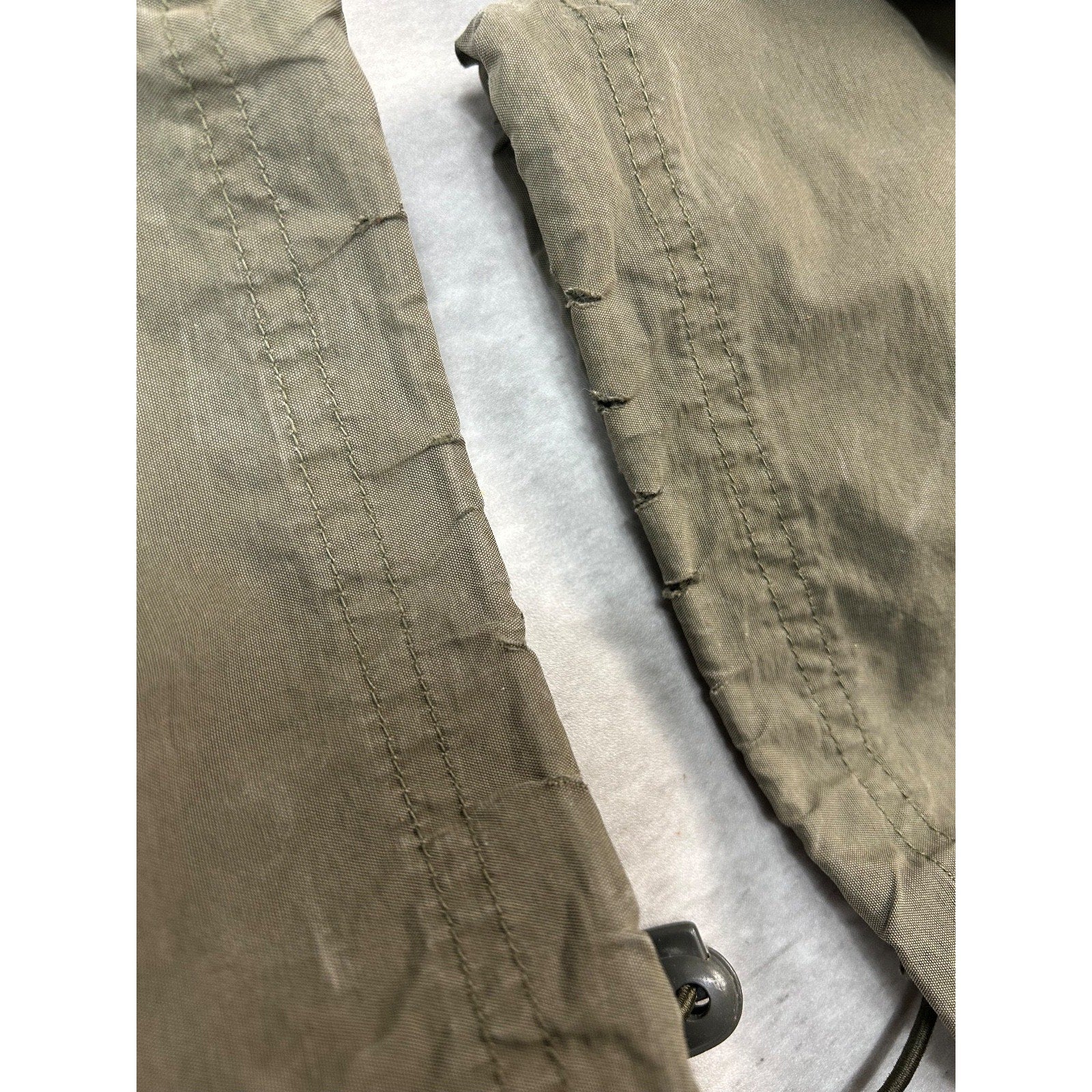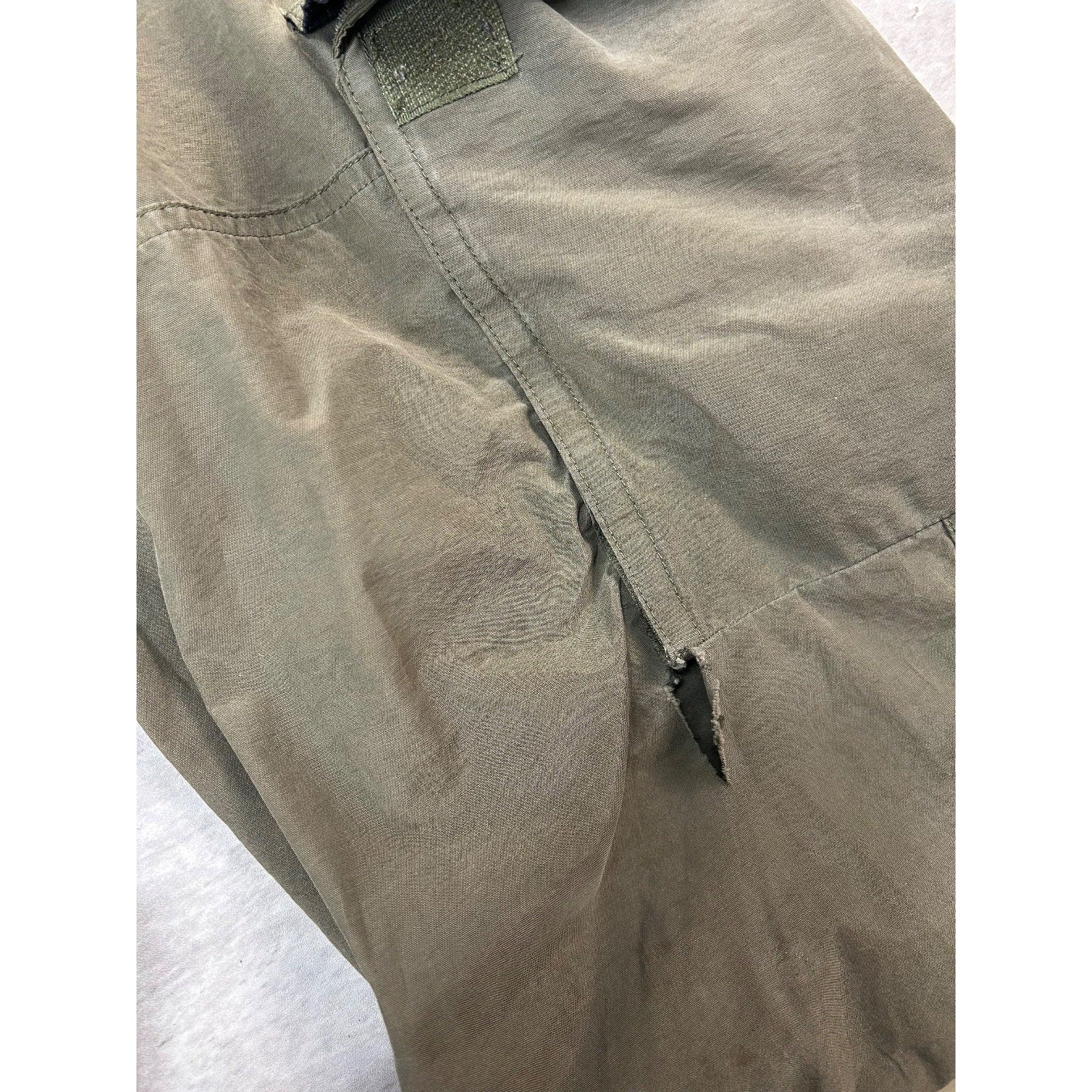 Wear, fading due to age. Pinholes and tears found around. Velcro fly coming off.