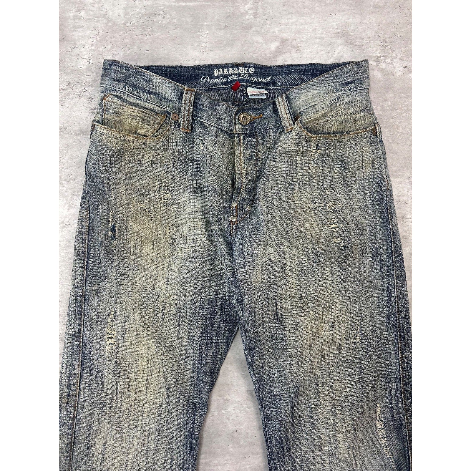 Vintage Y2K Parasuco Distressed Gray Denim Straight Fit Denim Pants Size 33