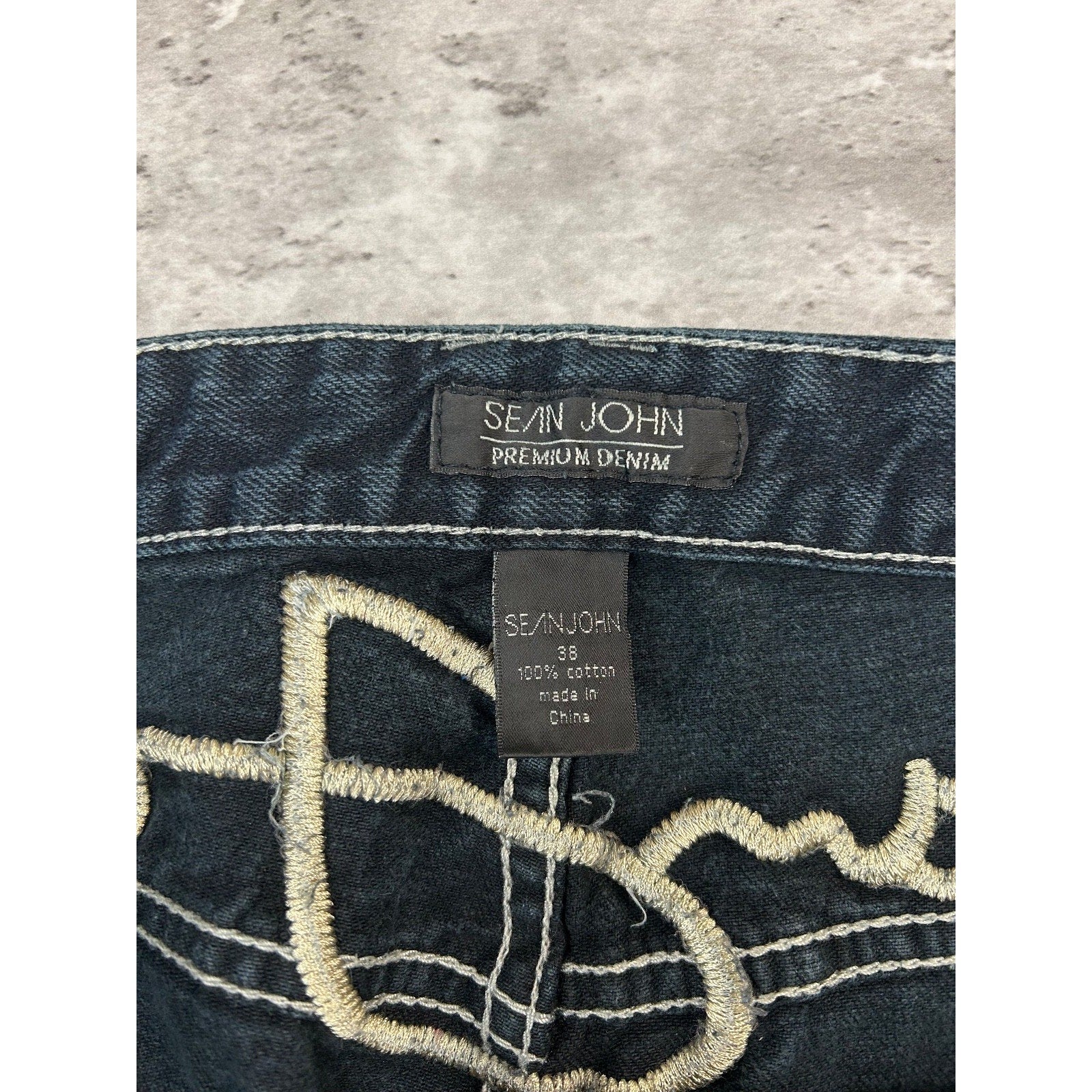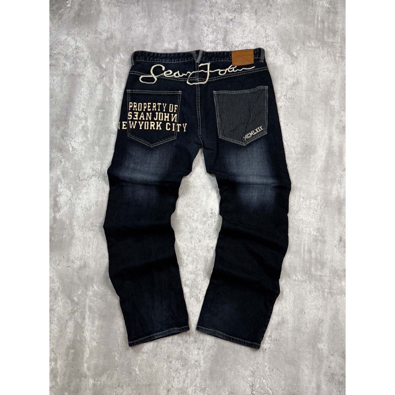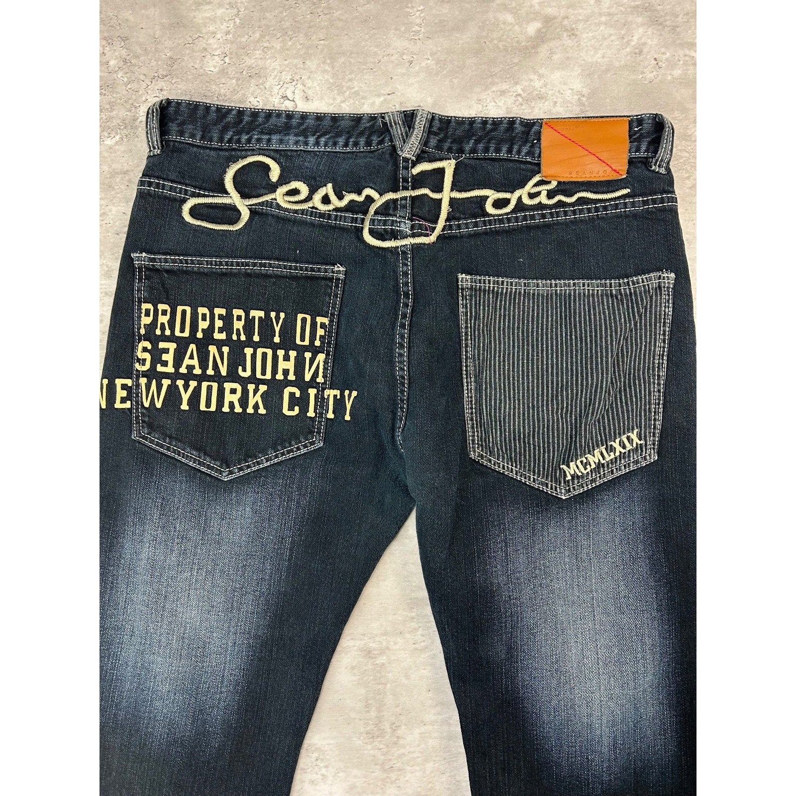 Vintage Y2K Sean Jean Dark Wash Embroidered Spellout Denim Pants Size 38