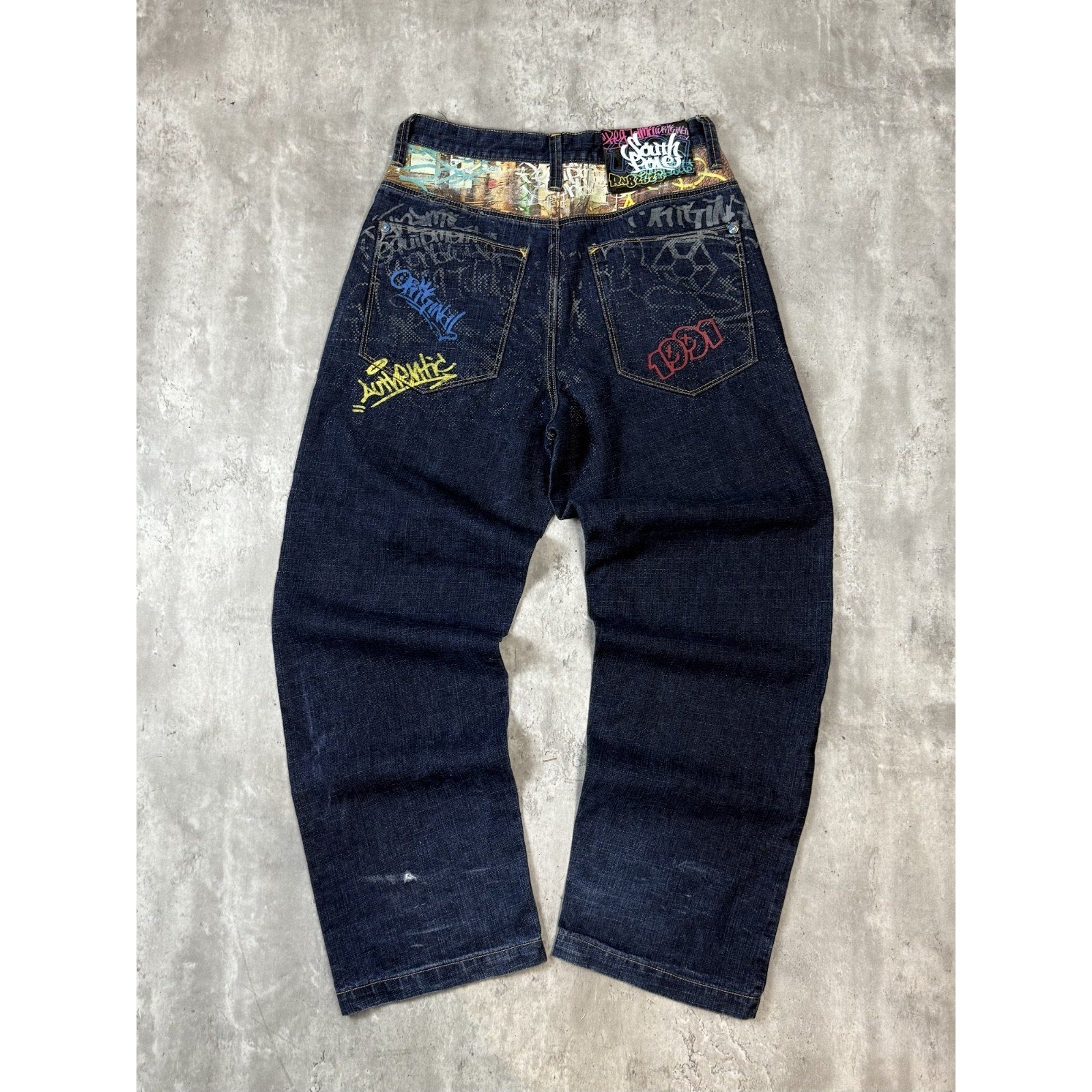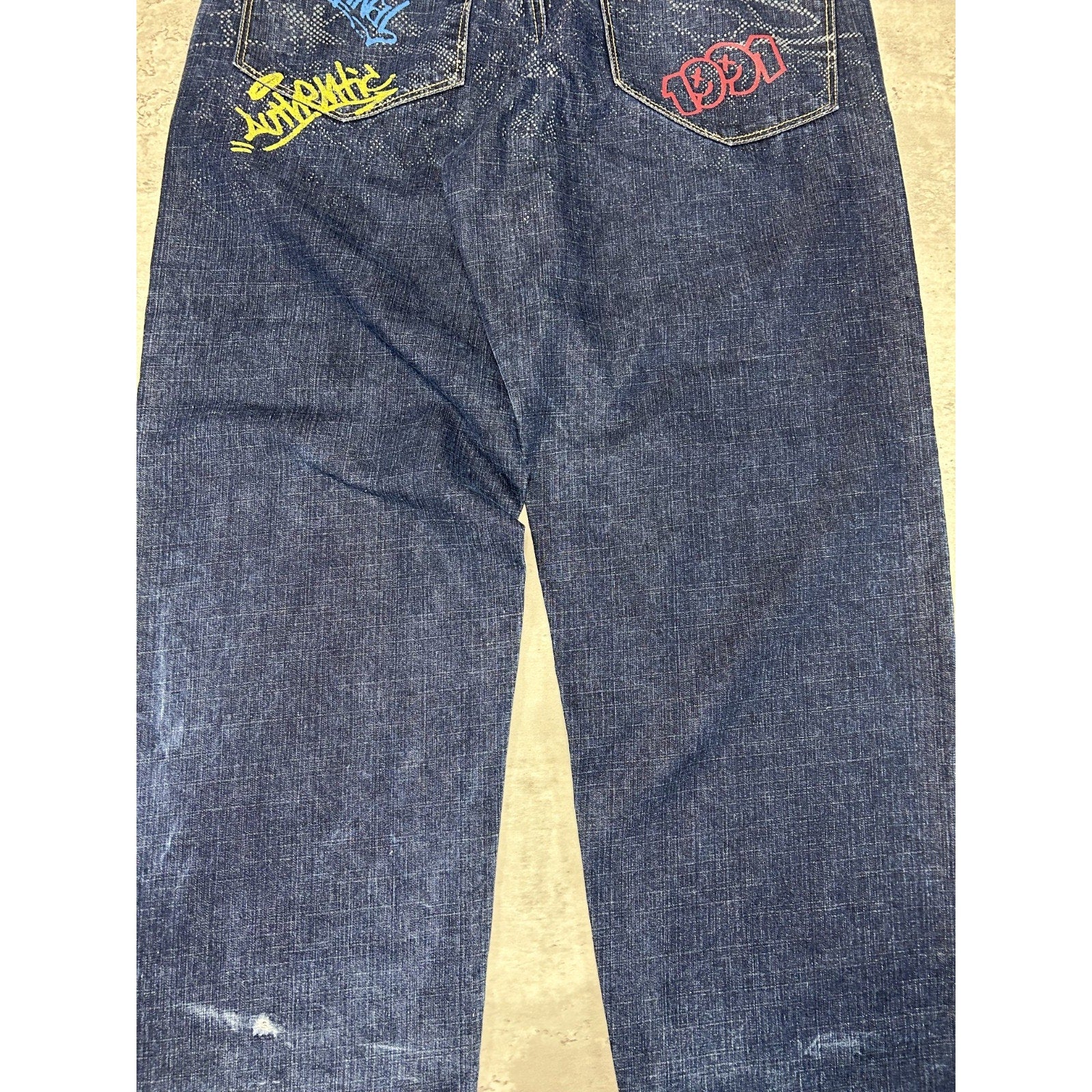 Vintage Y2K Southpole Baggy Fit Embroidered Dark Wash Denim Pants Size 33