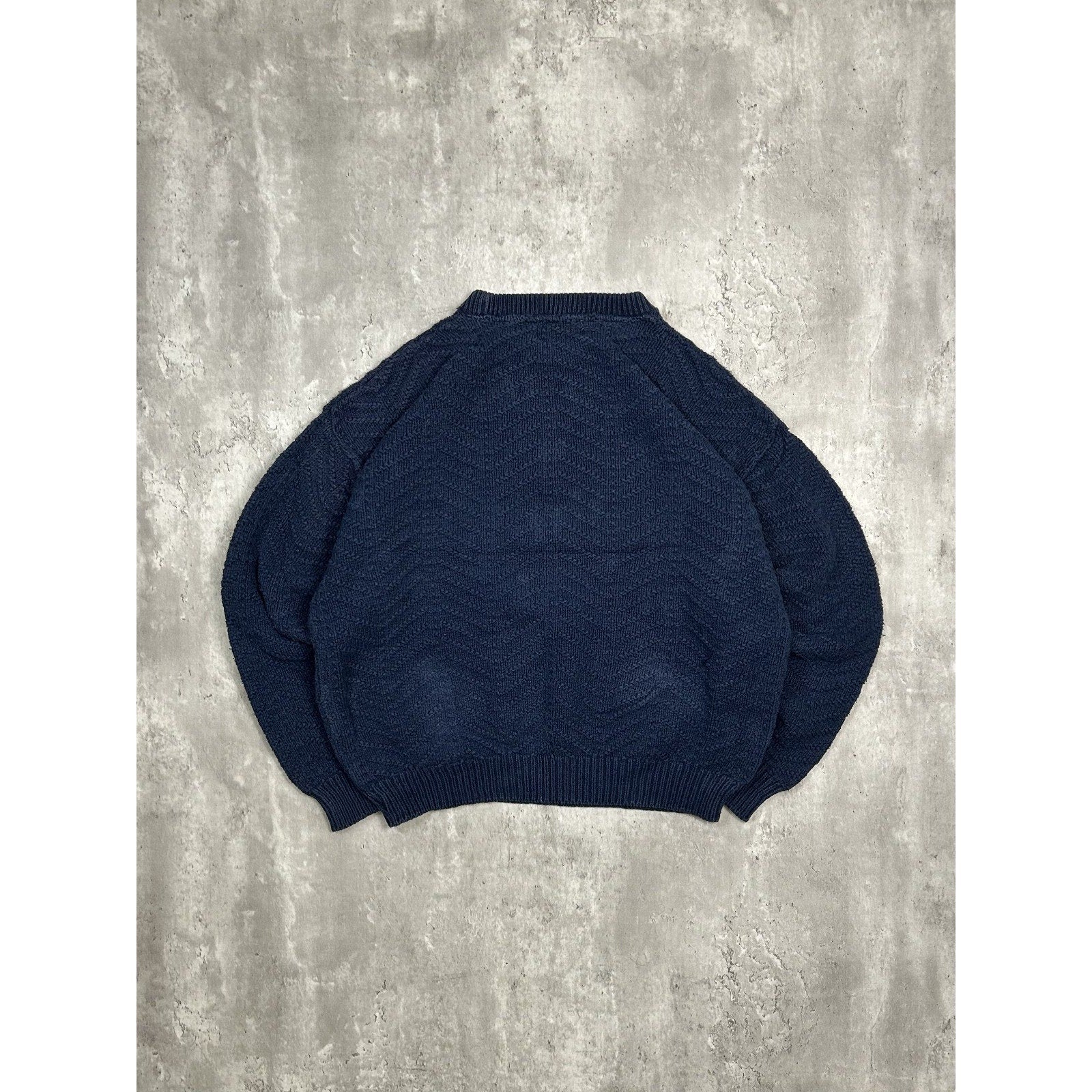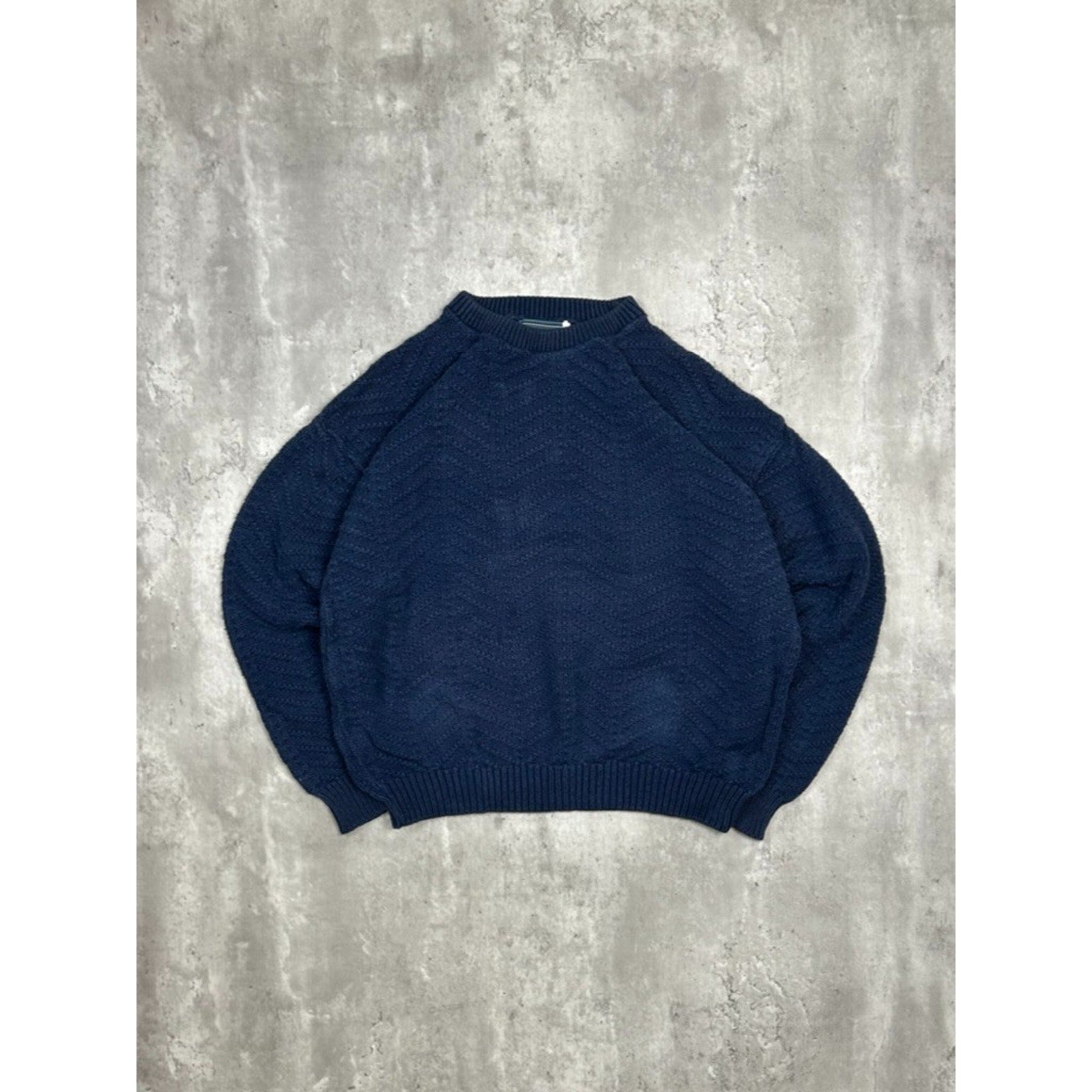 Vintage Zig Zag Striped Solid Print Pullover Knit Sweater Size Large