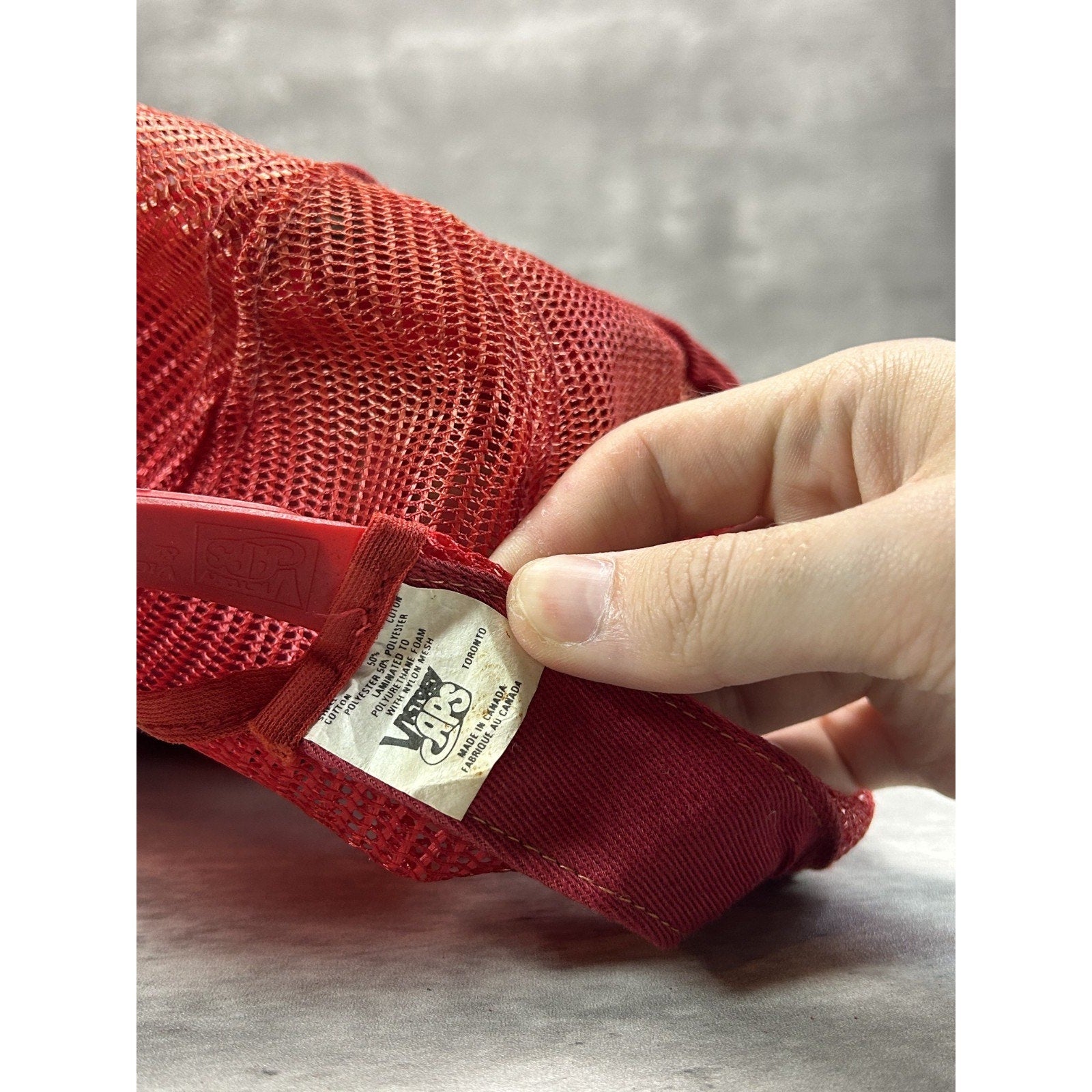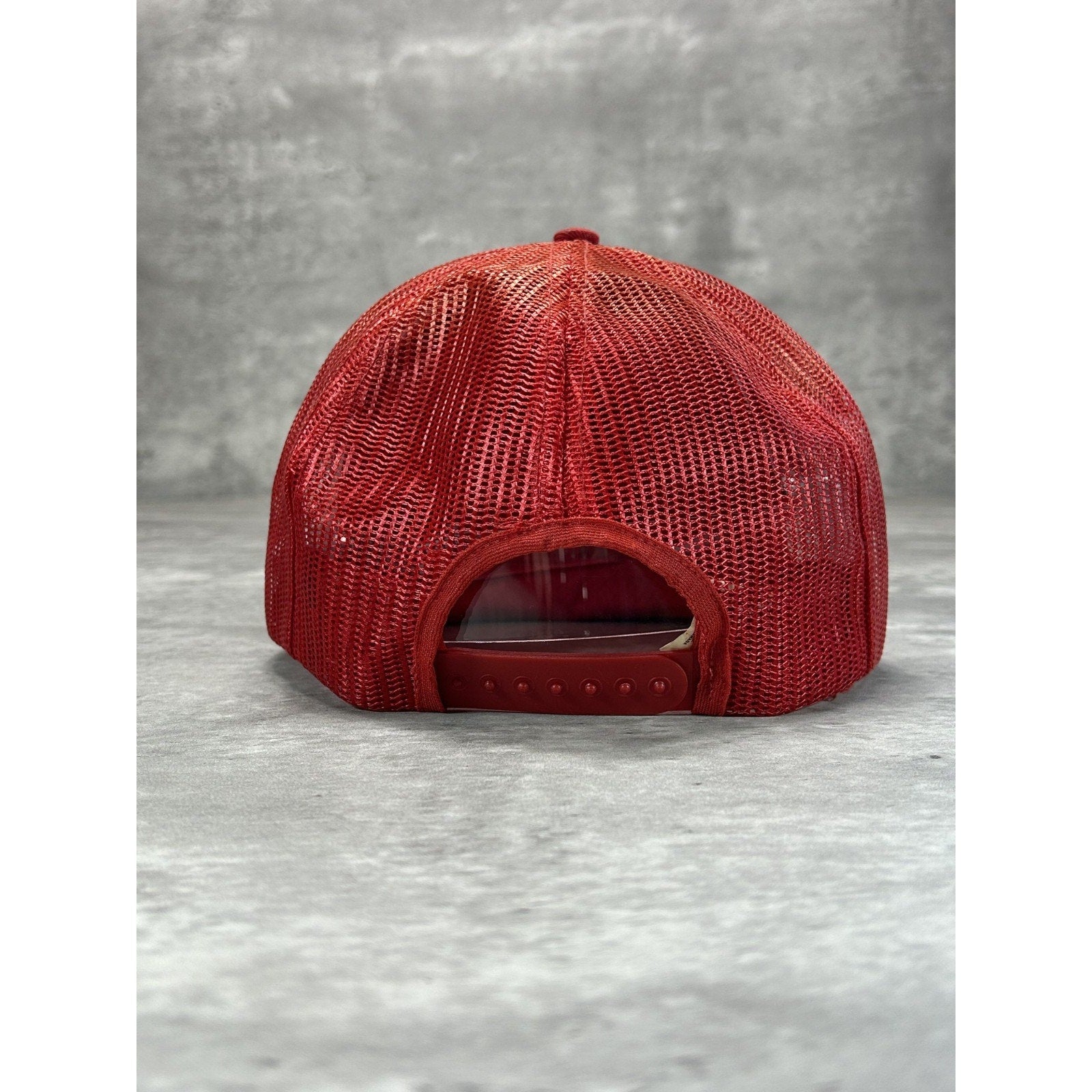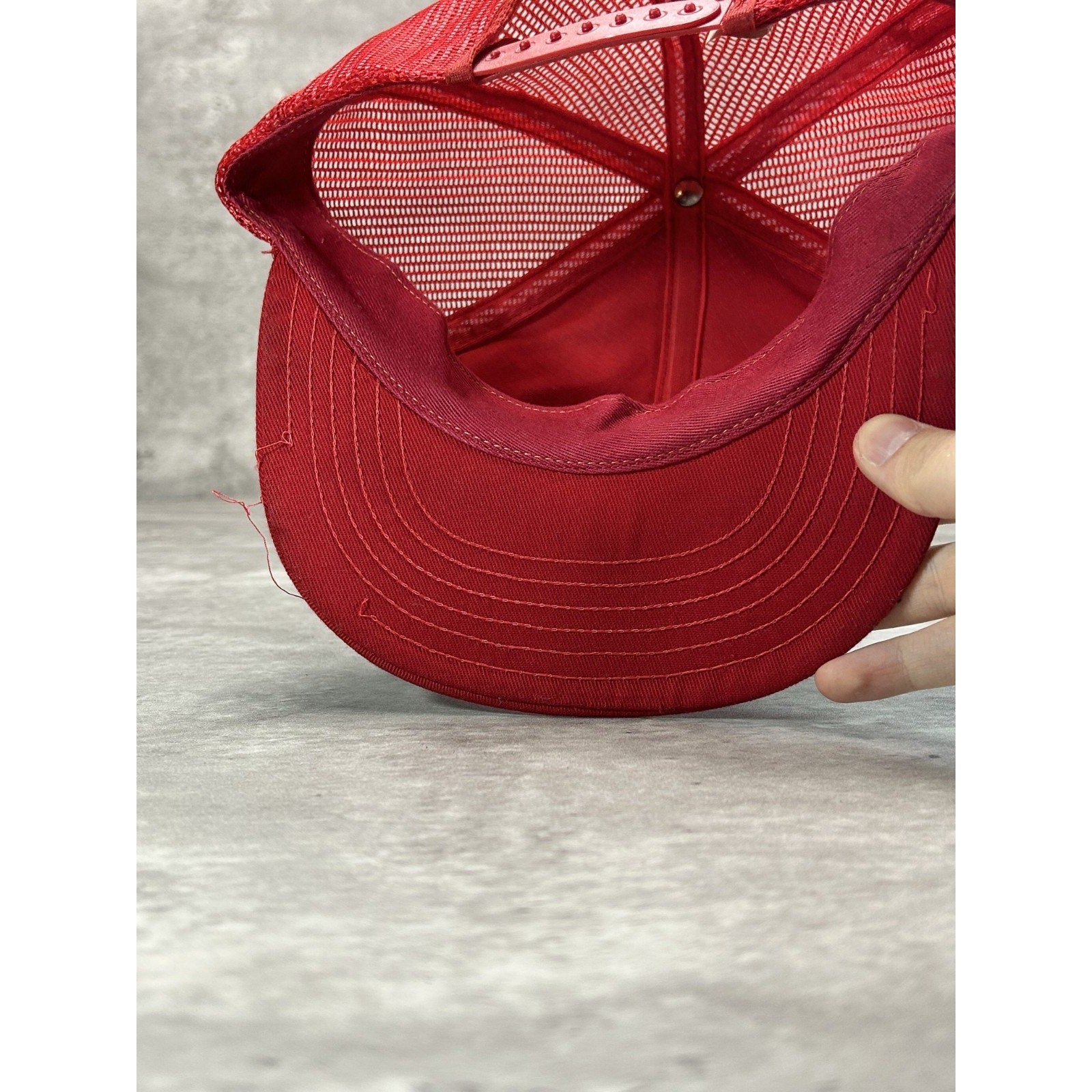 General wear due to age. Creasing on dome. Color bleeding on embroidered patch. Loose stitching on brim.