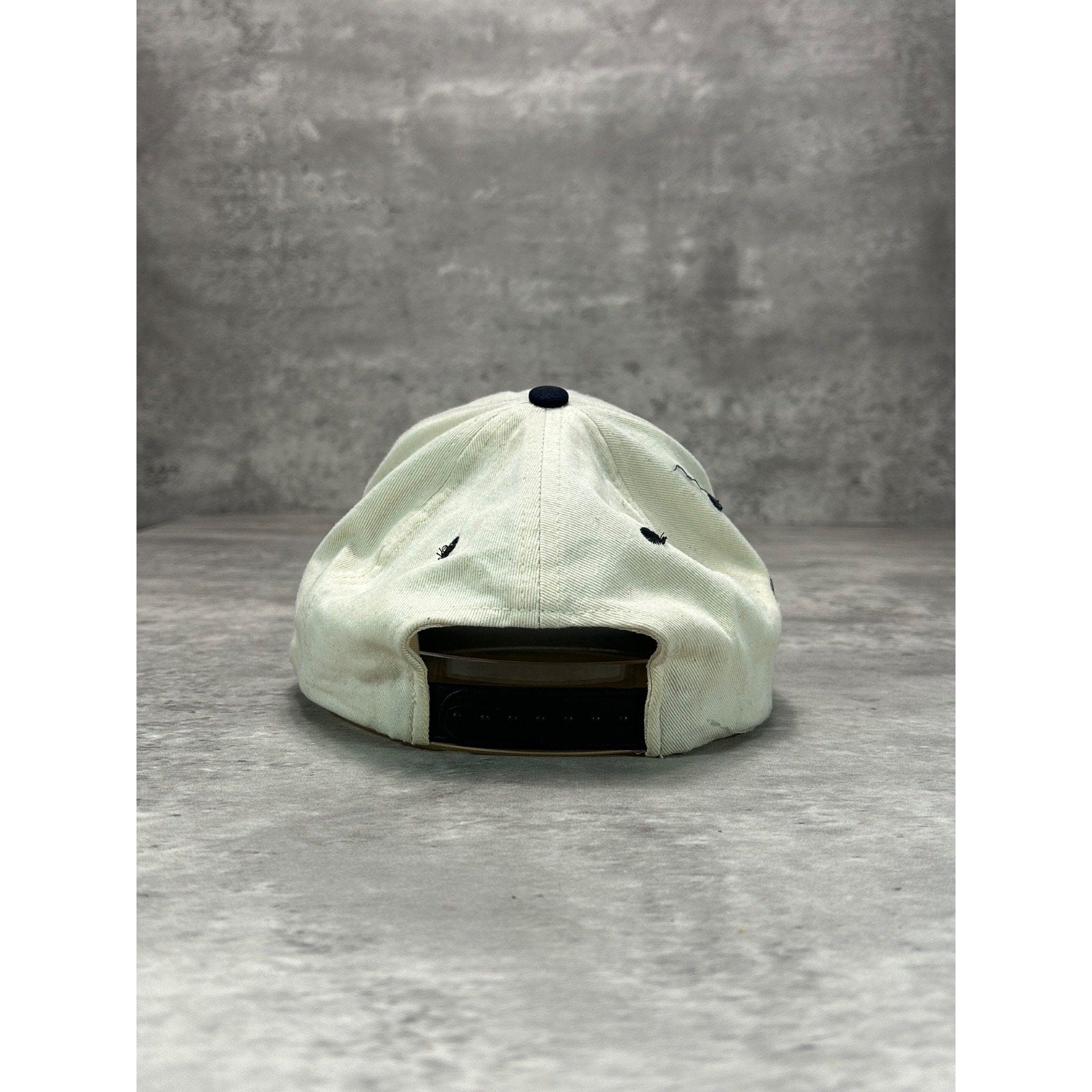 General wear due to age. Yellowing on dome. Thread pulls and loose threads found around. Minor creasing on dome. Fade mark on brim.