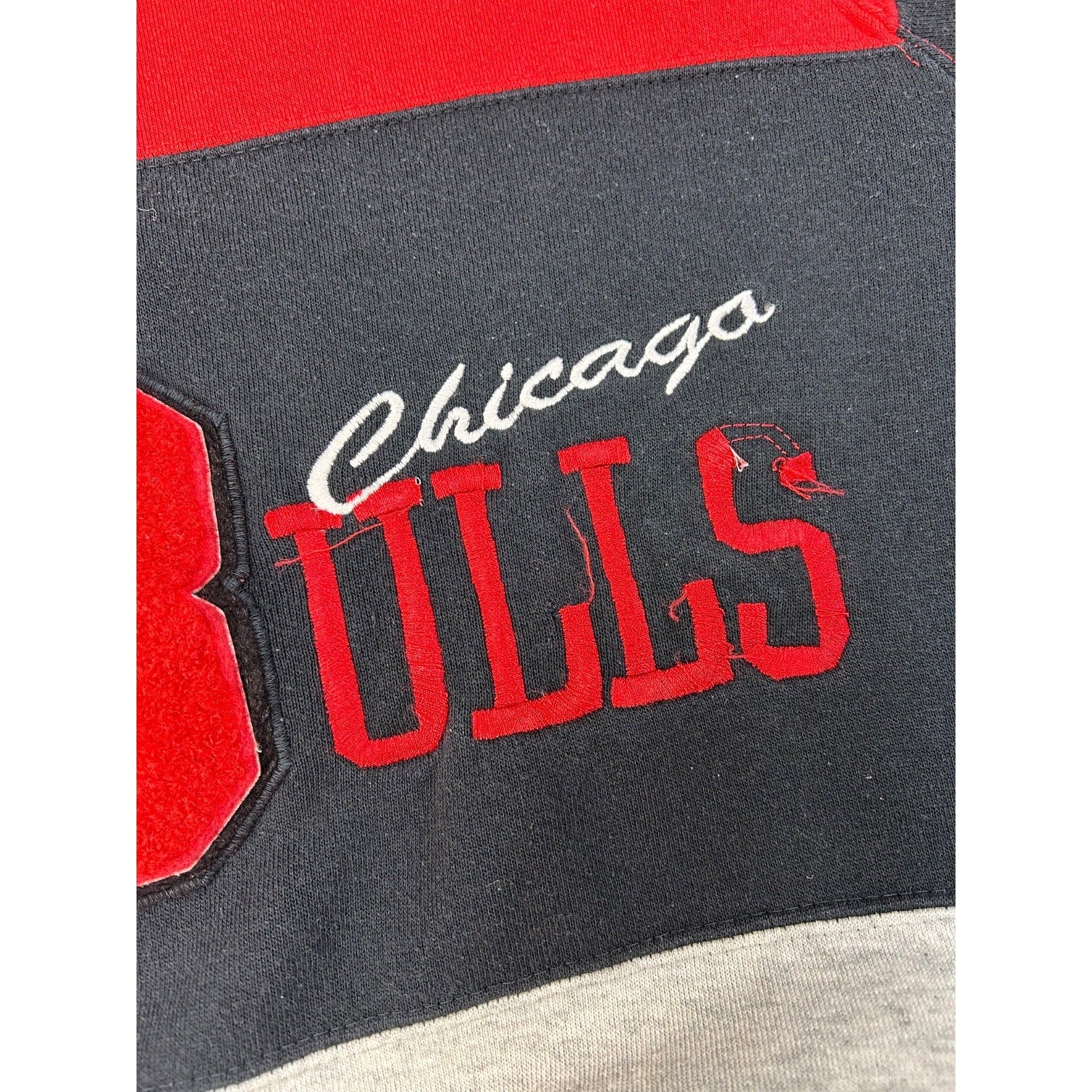 VTG 90s Chicago Bulls NBA Embroidered Spellout Short Sleeve Sweatshirt Sz Large
