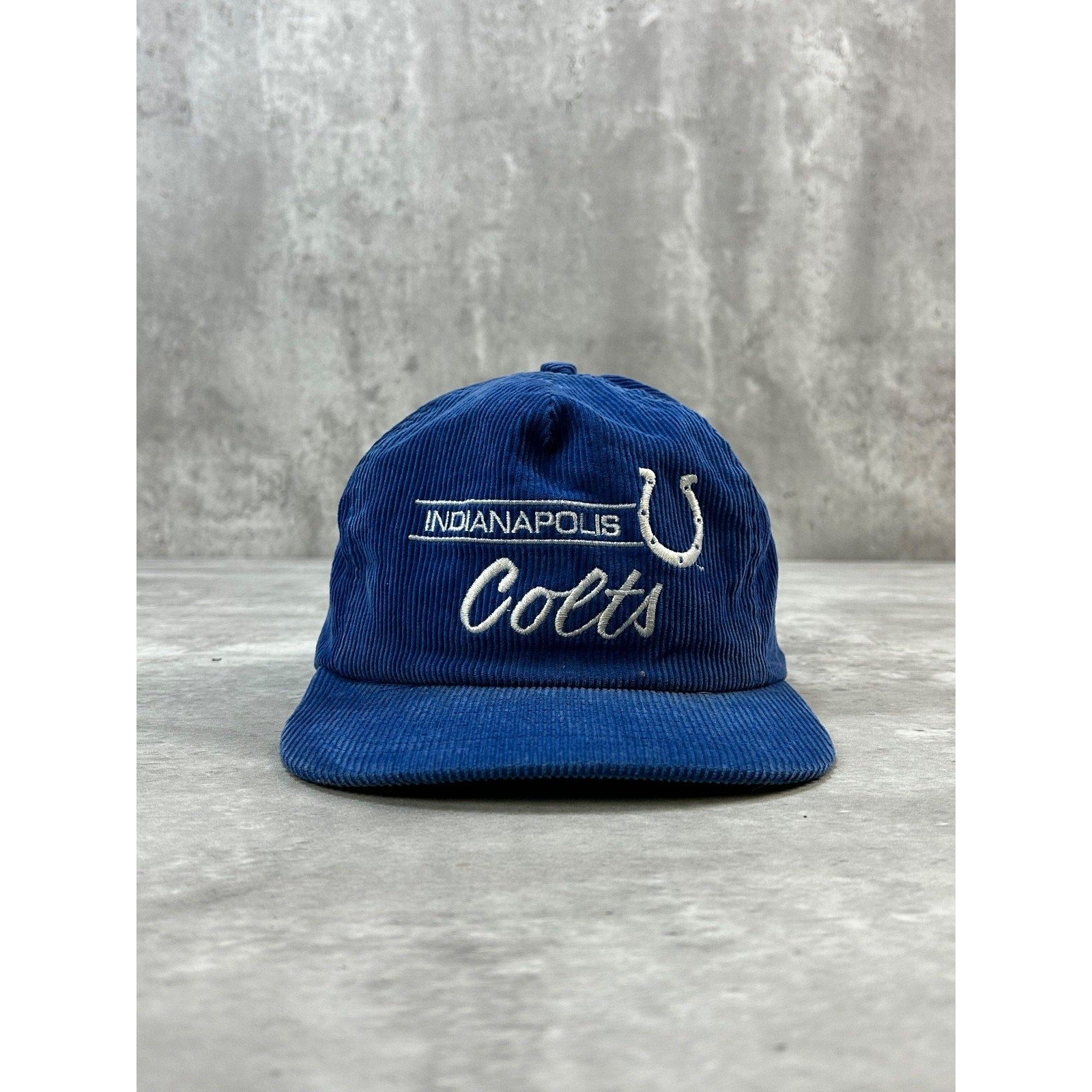 VTG 90s Indianapolis Colts NFL Embroidered Spellout Corduroy Snapback Hat OSFA